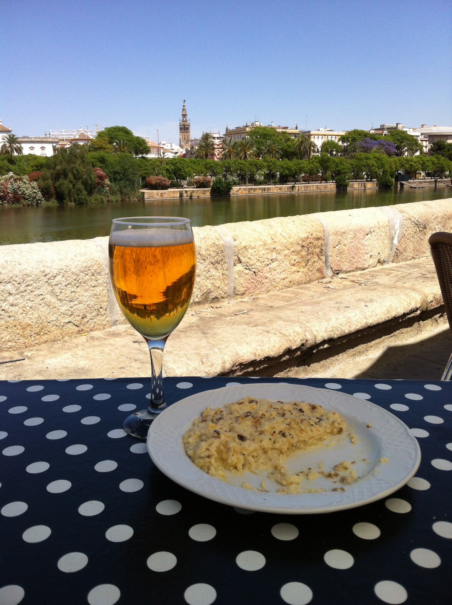 We crossed the border and lost an hour – Spain is an hour in front of Portugal. We found the hotel easily enough but the old town is a warren of one way streets. We got the car parked, checked in and went off exploring. It sure is a beautiful city. We did a river cruise for an hour and learnt about the key landmarks around the city. Tapas is the food of choice here and there are so many little tapas bars. We went to the other side of the river for lunch and met some Americans who told us where to get good tapas and they were right. We had lunch at Noninas and it was great – sitting on the rivers edge looking back across at the spire of the cathedral.
