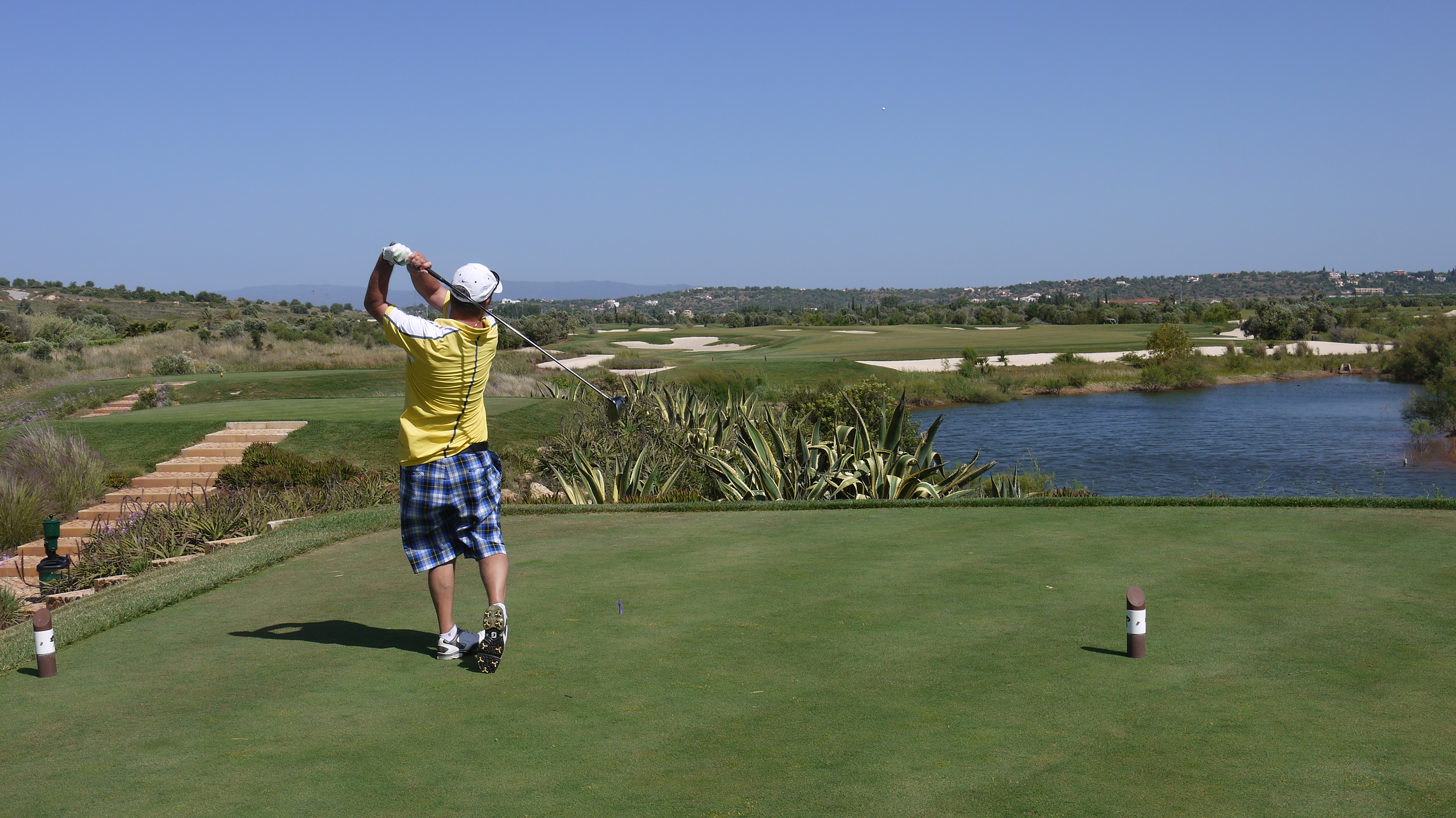 Today we played the Oceanico Faldo Course which was designed by none other than Sir Nick Faldo. It was one of those courses where you had to play strategically which is what he had in mind when he designed it. It looked more intimidating than it was. The land at Amendoeira is dramatic and he used the natural landscape well – the back nine is quite hilly with a lot of elevated tees.