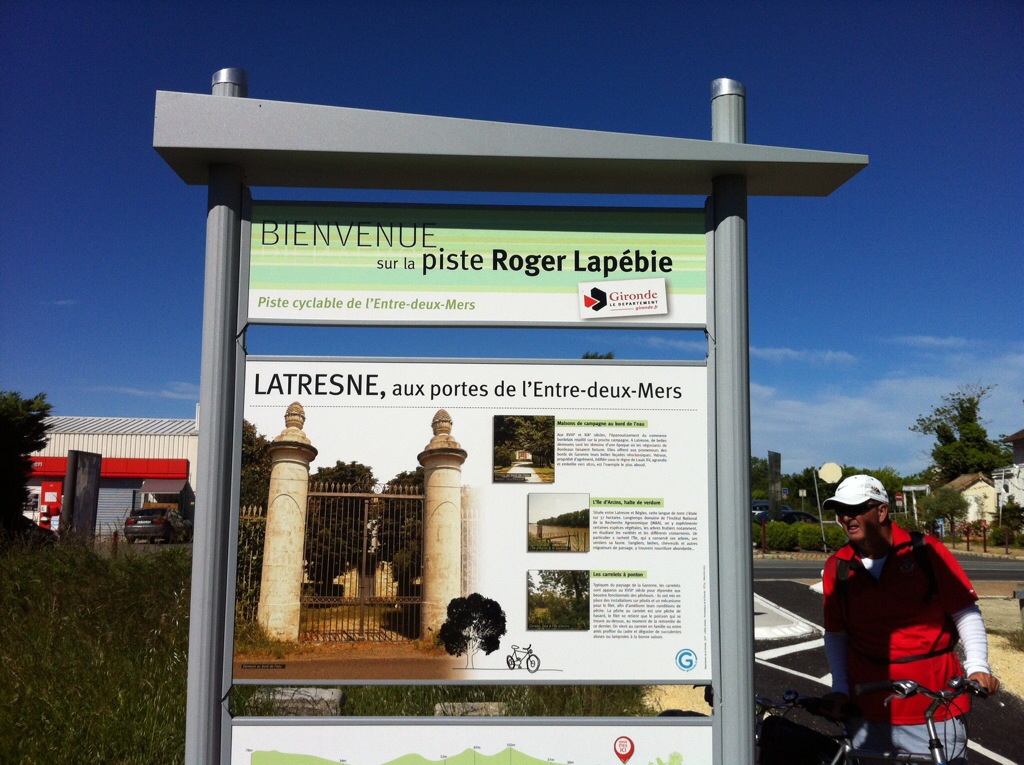 We headed out along the Garrone River and crossed over to the other side – the cycle path ran alongside the road so we felt very safe as we exited the city. After a few kilometres we were on the Roger Lapebie Cycle Way. Roger Lapebie was a French racing cyclists who won the Tour de France in 1937 – he was from the Aquitaine area of which Bordeaux is the capital. His victory was controversial as he was the first rider to complete the race using a modern derailleur. This gave him the advantage of shifting gears without having to stop, dismount and flip the wheel as was customary of racing bicycles used at the time. Following Lapébie’s victory derailleurs became standard racing equipment in the Tour peloton.