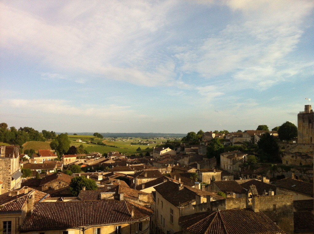 Once we got onto the country roads the landscape changed to how I imagined it would be – lots of vines surrounded by stone Chateaus. The closer we got to Saint Emilion the more Chateaus there were. The streets up to Saint Emilion got steeper and narrower so we had to dismount. We found our hotel – Hotel Palais Cardinal – and checked in. Saint Emilion is a mass of very old buildings and many wine shops!