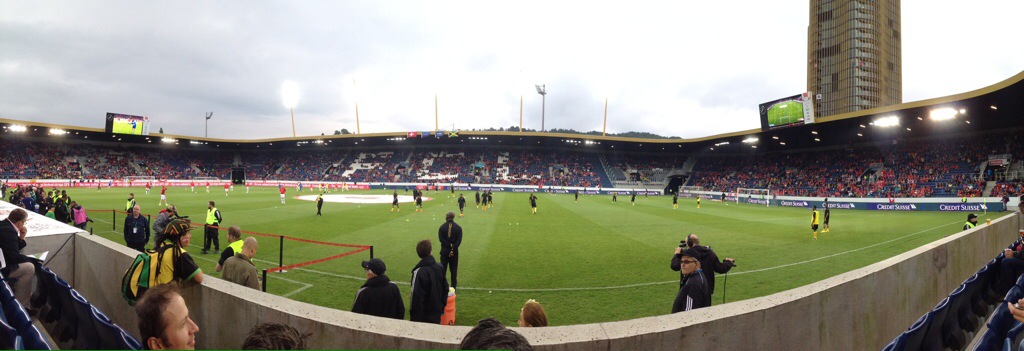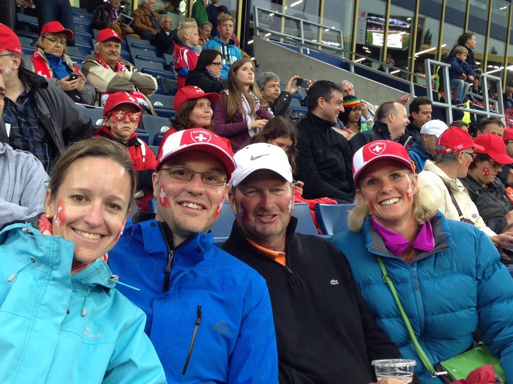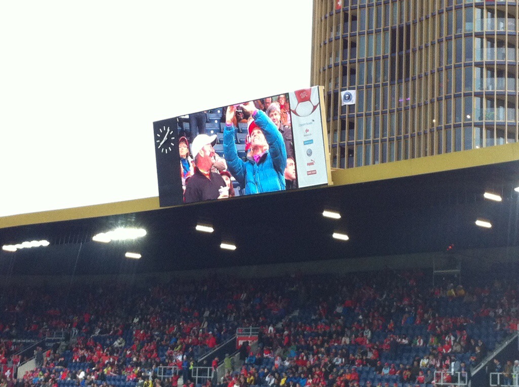 Karin & Elvis had planned a surprise for us on Friday night. We had an early dinner and had to leave for the train station by 6.45pm. We got off the train and saw all these people in Swiss hats, scarves etc… so thought we must be going to some sort of sport’s event. When we got closer to the stadium they told us we were going to see the Swiss Football team play Jamaica in a friendly match as part of the Swiss teams build up for the World Cup being held in South America from mid June.