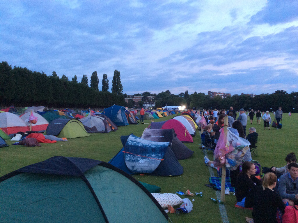 We saw all the tents lined up – the gates to the park had opened at 8am on Sunday but apparently the first lot of people had turned up at 10am on Saturday. They had to wait and sleep on the street until Sunday at 8am. These early birds were guaranteed Centre Court tickets. We were number 1627 and 1628 in the queue – we were in the first line behind the tents.