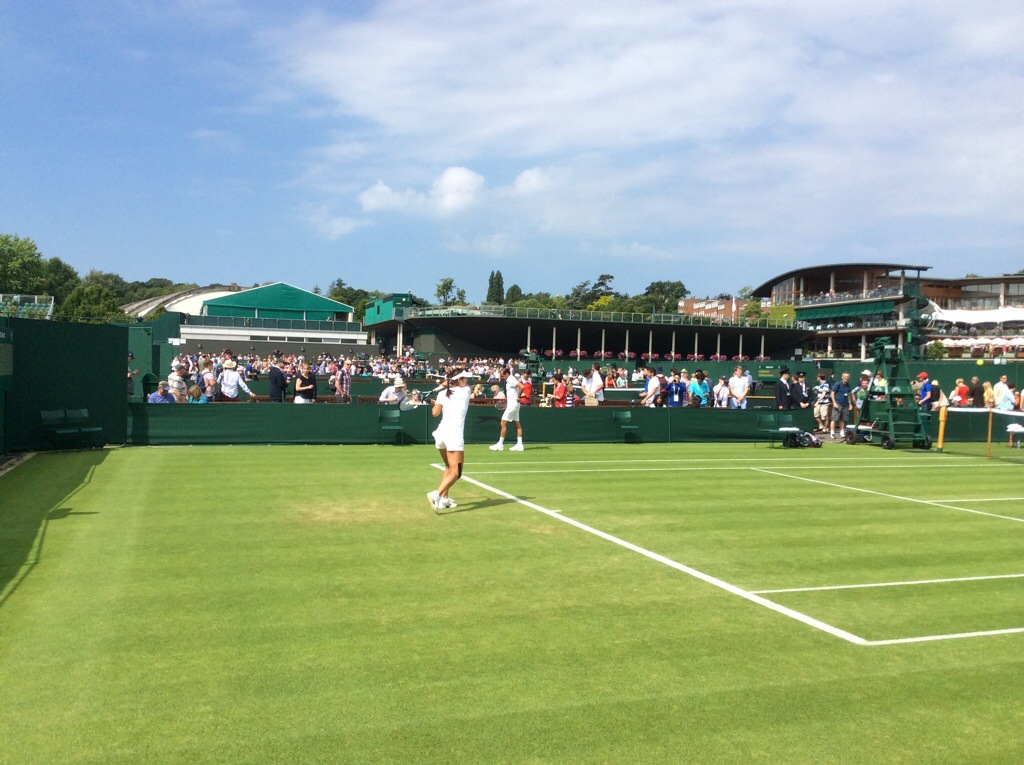 We had a look around the other courts where some of the players were warming up – we spotted Li Na having a hit up. It is an amazing ground and you are so close to the action on the ground courts. Play was starting at 11.30am on our court so we headed there to check out our seats. We were in row G, 7 rows back from the front – the seats were good. It was very hot though and there is no shade – yes I am talking about London weather – it has been amazing since we arrived.