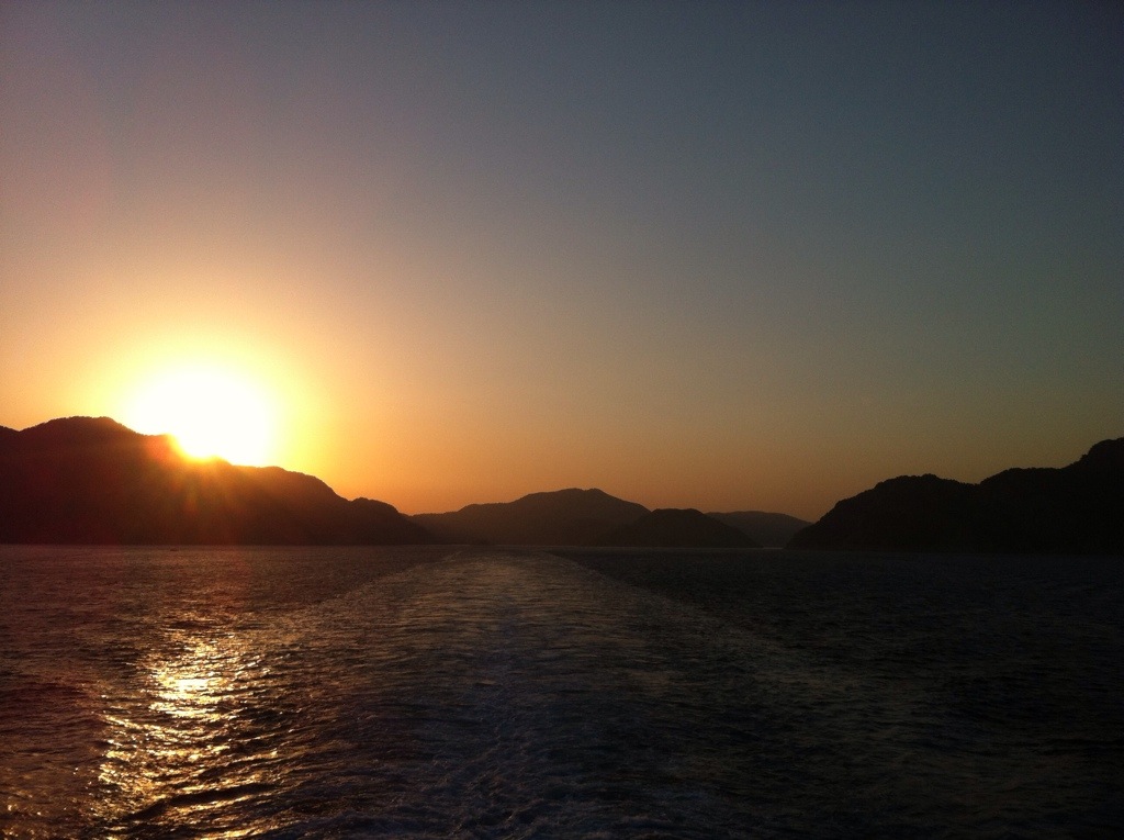 After dinner tonight we went on deck as we sailed away from Marmaris – it is a lovely part of Turkey where the hills run into the sea and with the sun setting behind them made for an even better spectacle.