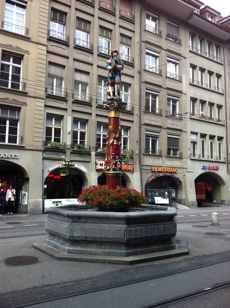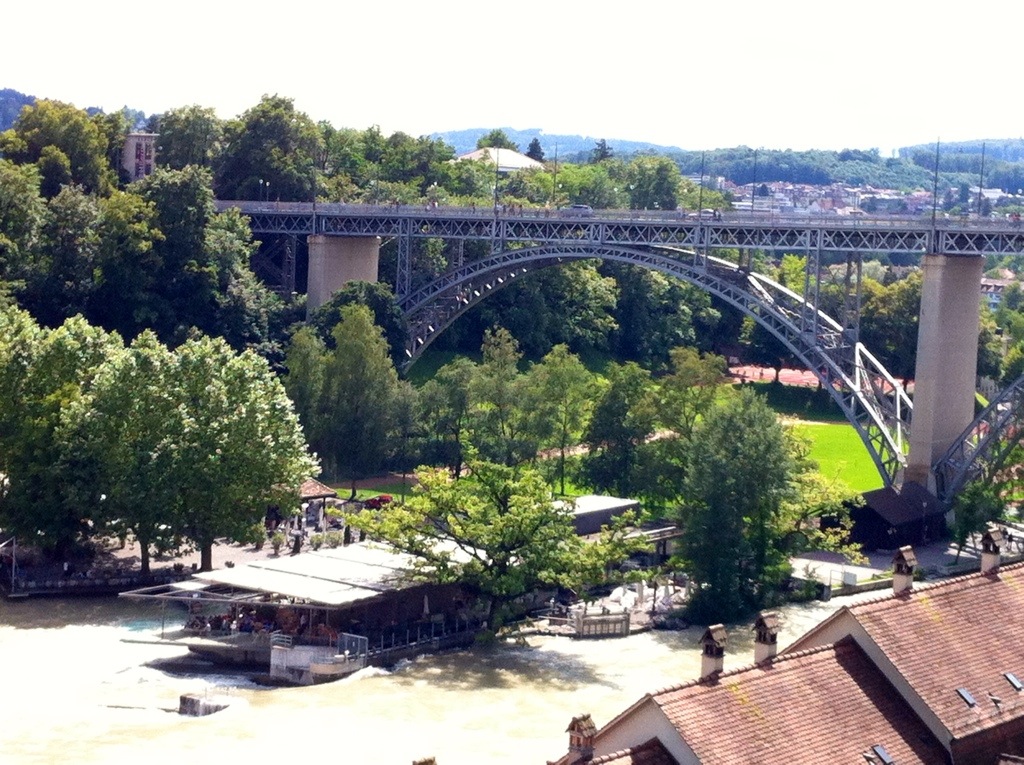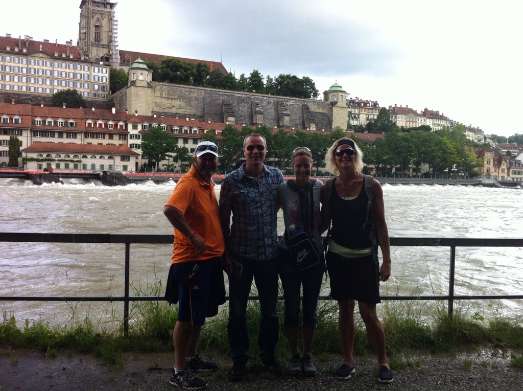 There are three main rivers in Switzerland – the Rhine, the Rhone and the Aare. All the rivers originate in the Swiss Alps. The Aare runs through Bern and because there had been a lot of rain in the days before we were there it was at full capacity and we could see where there had been a bit of flooding. There were a couple of houses right down by the river pumping out water. If you look at a map of the city you can see that the Aare runs round the old city like a moat with the city standing high on the hill. The Aare river flows into the Rhine which then goes into the North Sea. The Rhone ends up in the Mediterranean.