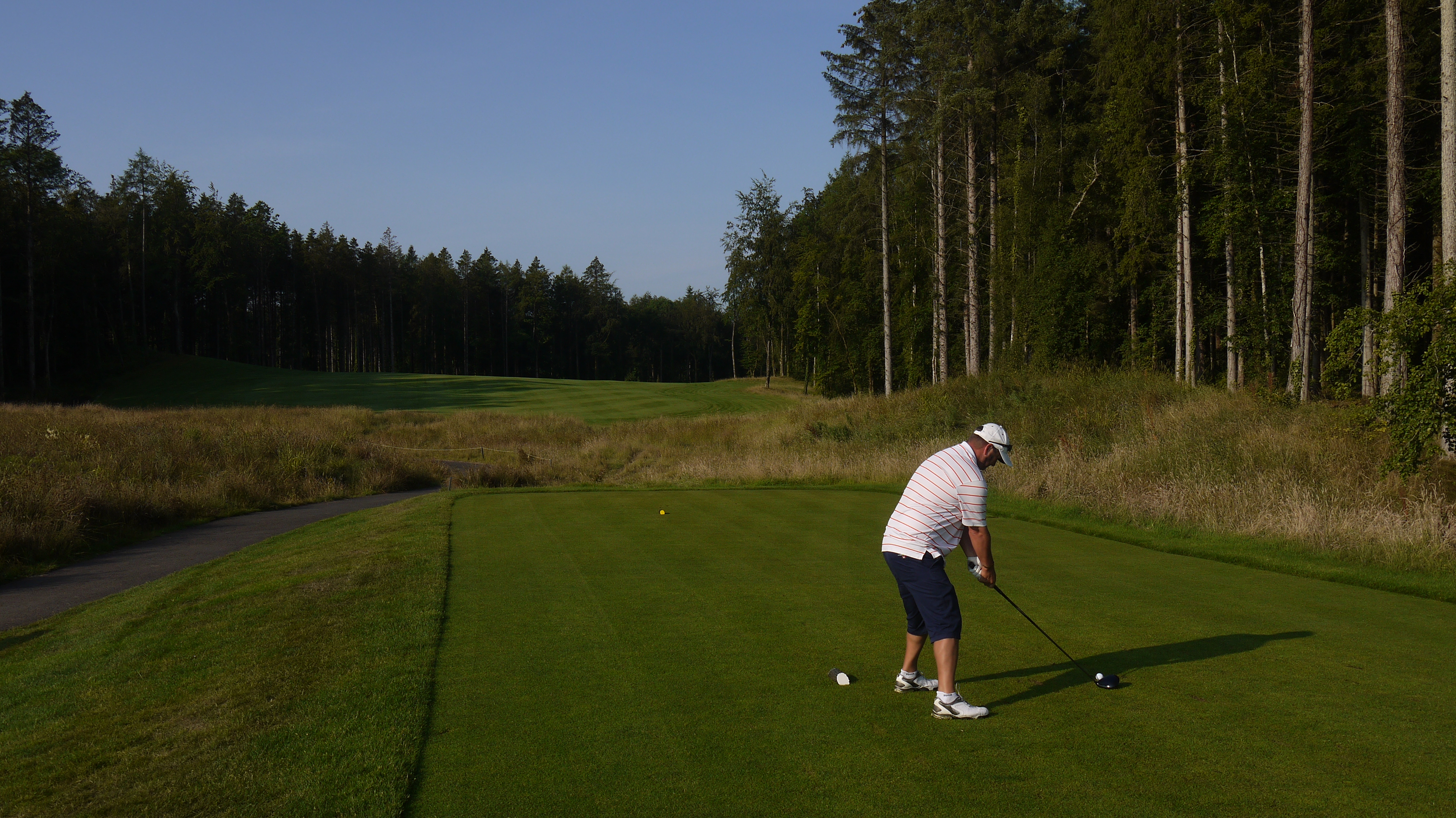 We teed off at 8am on Friday and had the whole course to ourselves until about 9.20am when the next group teed off. It was another perfect day and so magical being out there. After a little stint at the driving range after the first round I was back on track and it was easier knowing where to go. Steve was on fire – he had 4 birdies and 3 pars shooting a round of 81 – pretty good on a course where water comes into play on 14 of the 18 holes. We were also even on the ball count front – I lost two but we found two so the ball stocks remained in tack.