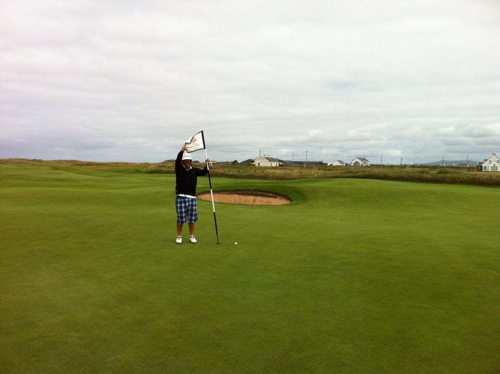 We left Galway this morning and headed to Doonbeg Golf Club which is out on the coast in County Clare. The weather was overcast and as we got closer to the coast it started to blow and we had a bit of rain. It was spitting as we got our golf clubs ready but I had a word with the weather gods and told them if they knew what was good for them they would stop that behaviour immediately!