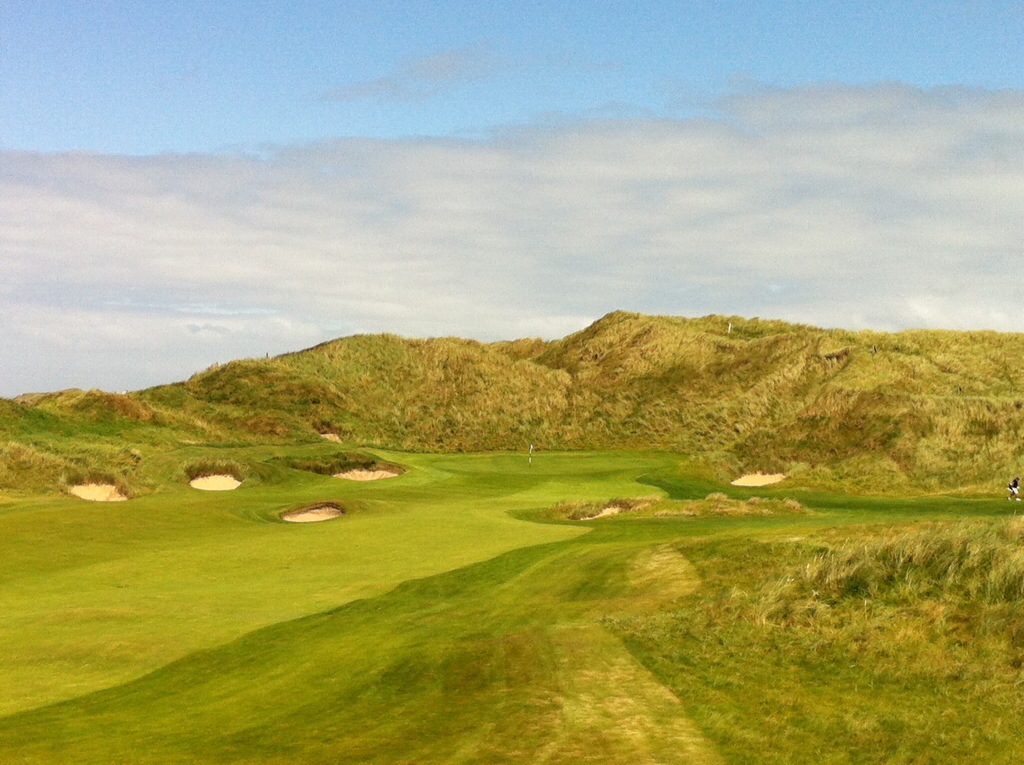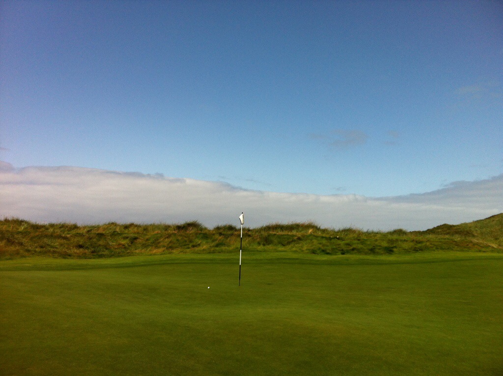 Standing up on the first tee is pretty WOW. Out to your left you have the Atlantic Ocean and the first hole is a long par 5 that is framed by hills on both sides – it looks like a sports stadium. It was still pretty windy as we teed off but when you got down into the stadium you were quite sheltered. The next few holes were quite daunting as you couldn’t really see where you were supposed to be hitting. Needless to say the ball stocks were being depleted rather quickly and not by me I might add : )