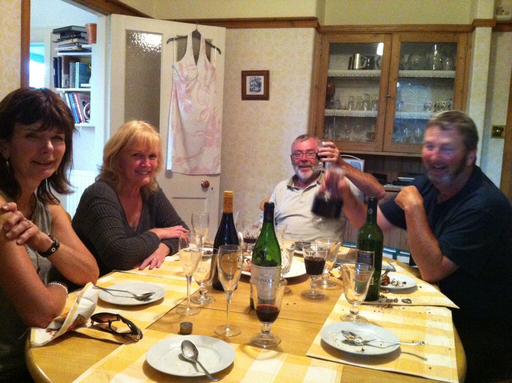 The weather when we landed into Edinburgh was grey and cool but again as we drove north the sun came out to play – blessed! It was a nice evening and Steve was back in his element cooking NZ lamb on the BBQ. We decided to open some red wine that Sheila and Gus had in their cellar – some of it dated back to the 80’s and 90’s and unfortunately it hadn’t stood the test of time. Steve was cheif bottle opener and six bottles later we had broken cork all over the table from the corked red wine he was opening. Luckily we had some younger reds on hand to help us along with our quiet Monday night in Edzell. It was so quiet in fact, Steve ended up asleep on the floor in the dining room!