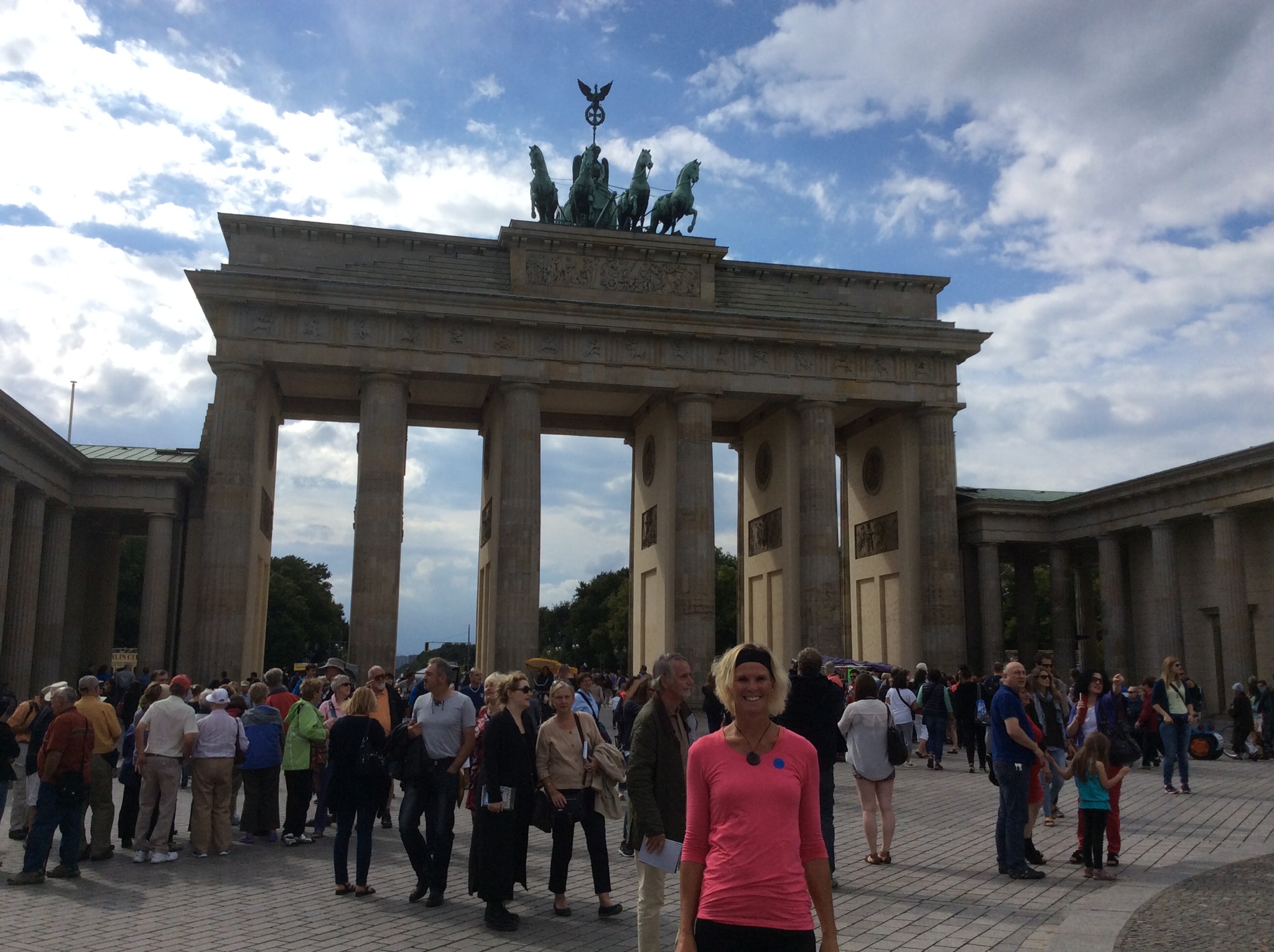 We stopped at the Brandenburg Gate which was originally intended to be a symbol of peace, but eventually the winged victory goddess, Nike, and four horse chariot were added to the top of the gate symbolising the strength of the Prussians.