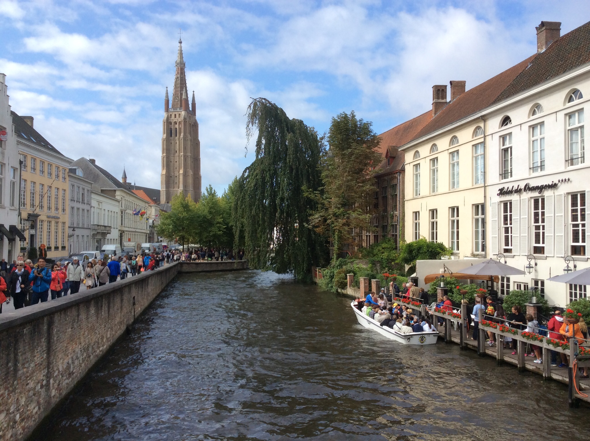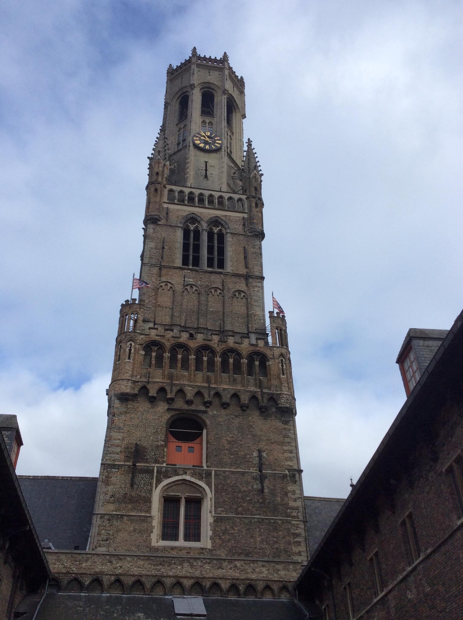 Being a Sunday the town seemed deserted when we got in there about 9.30am. I decided I wanted to climb the 360 stairs to the top of the Belfry as did quite a few others so I queued for about half an hour. Due to the narrow stairwell the tower’s capacity is 70 people so once capacity is reached they let you in as another person comes out. You get to see the mechanics of the chimes and bells as you climb up. You then get a 360 degree view over Bruges.