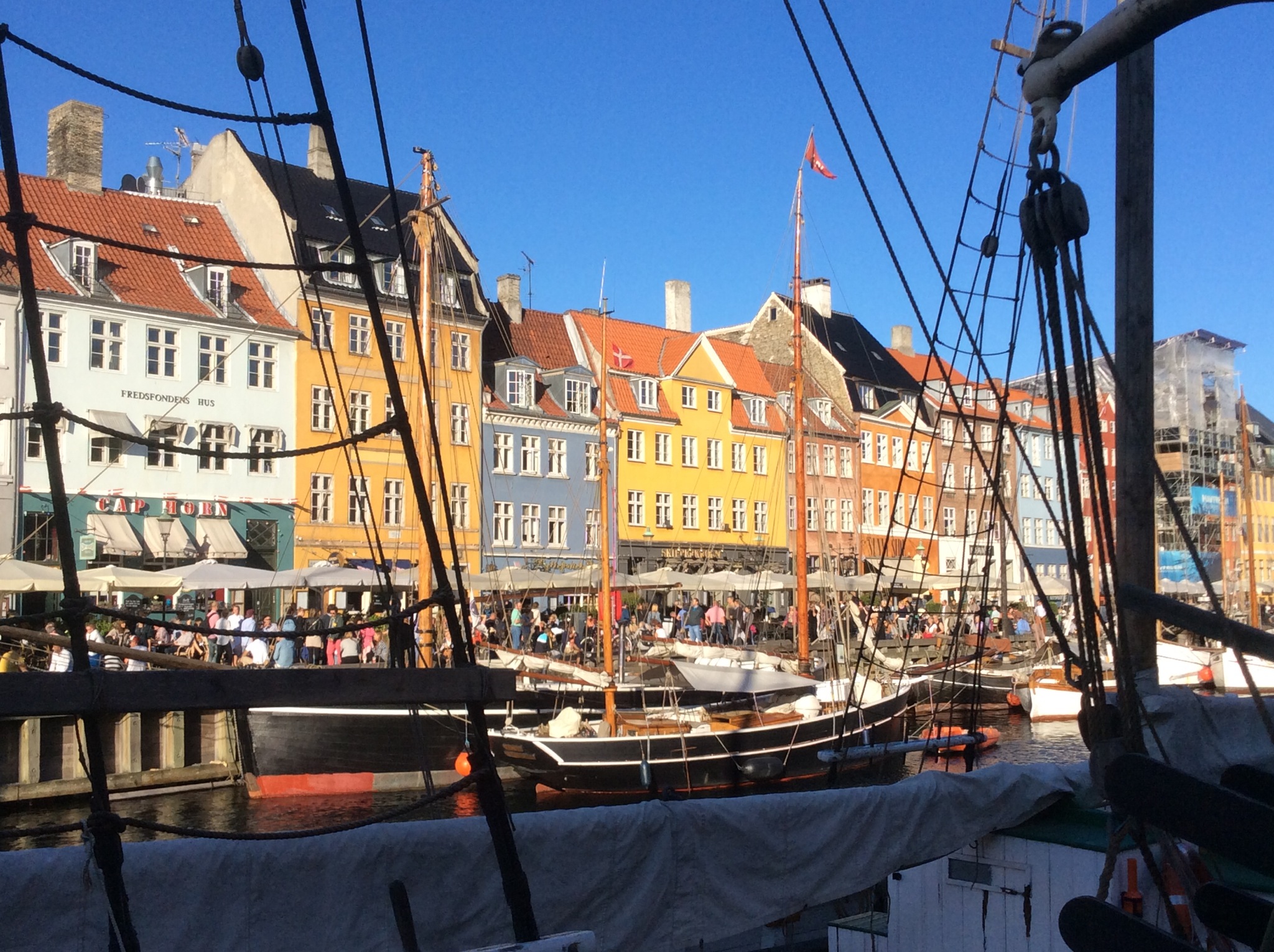 After the Carlsberg tour we caught the bus back to the city to check out the Nyhavn Canal which is also known as the longest bar in the world. It has all these bars set up alongside the canal. It had turned into a beautiful afternoon and there were people everywhere sitting on the edge of the canal. All the wooden sailing ships in the canal and the colourful 17th and 18th century townhouses alongside make it such a picturesque spot. The bars advertise takeaway beer – it is cheaper to buy a beer and go and sit on the edge of the canal and drink it.