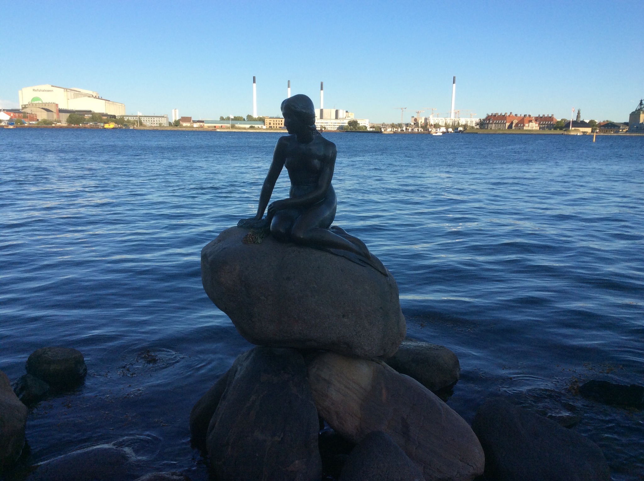 Not far from where our boat was docked is the Little Mermaid statue. It is a bronze statue by Edvard Eriksen, depicting a mermaid. The sculpture is displayed on a rock by the waterside at the Langelinie promenade. It is 1.25 metres tall and weighs 175 kilograms. Based on the fairy tale of the same name by Hans Christian Andersen, the small and unimposing statue is a Copenhagen icon and has been a major tourist attraction since 1913. In recent decades it has become a popular target for defacement by vandals and political activists.