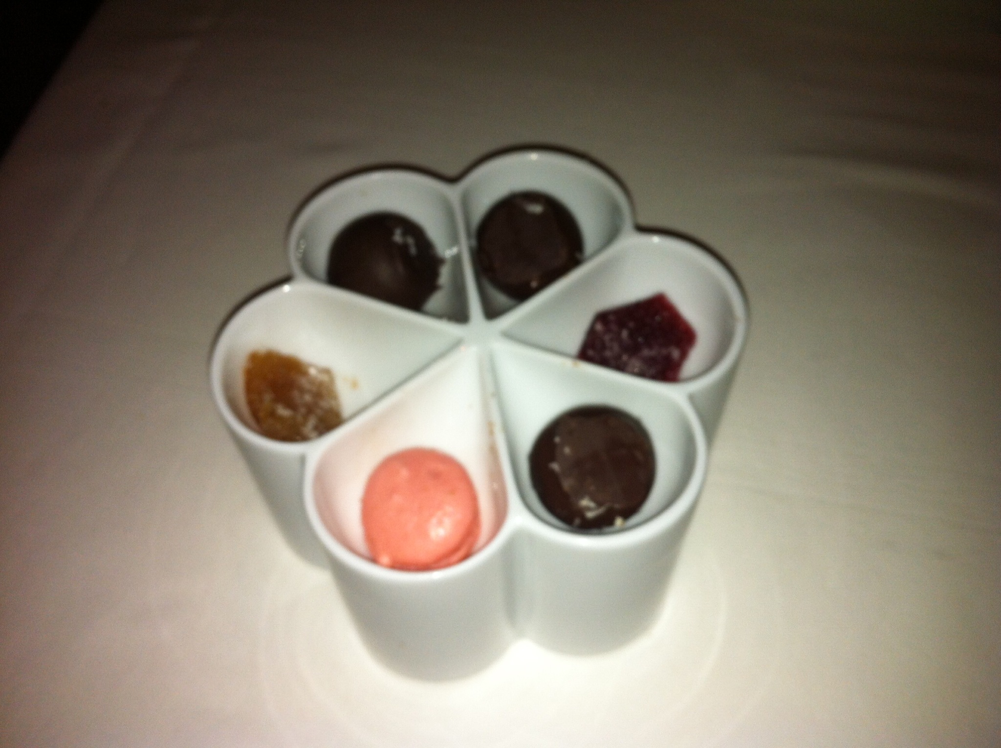 Last but not least was Murano which is a classic fine dining restaurant with impeccable service, food and food presentation. Goats cheese soufflé to start with followed by rack of lamb and finished off nicely with a valrhona chocolate dessert. Well actually it was the petit fours that finished us off – they were delightfully presented in a lovely dish. This was all washed down with a bottle of Veuve Clicquot Rose. Life is grand : )