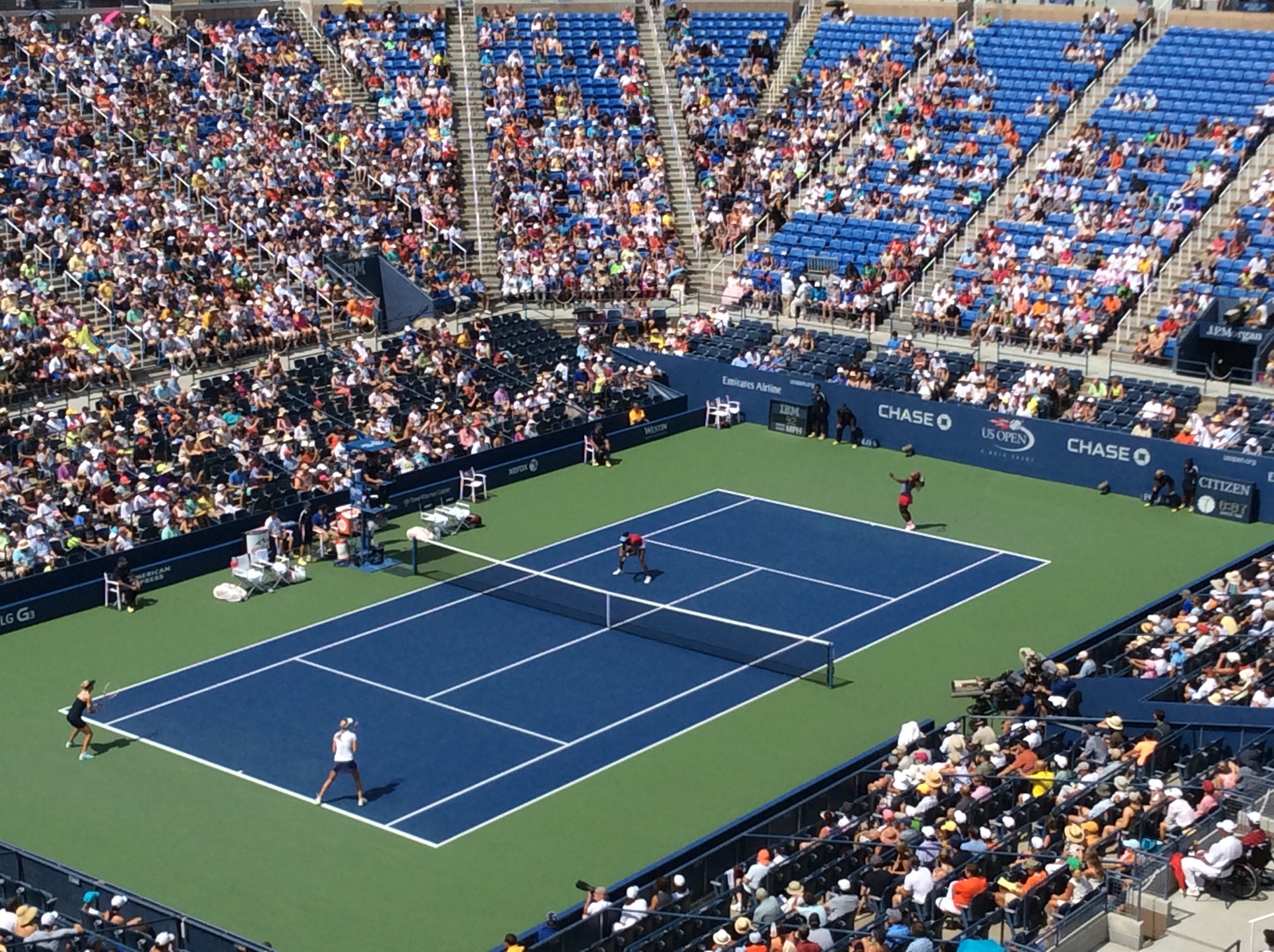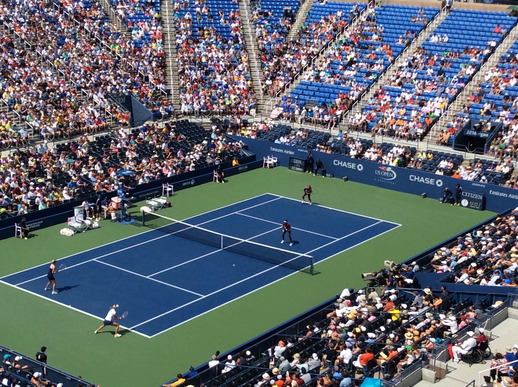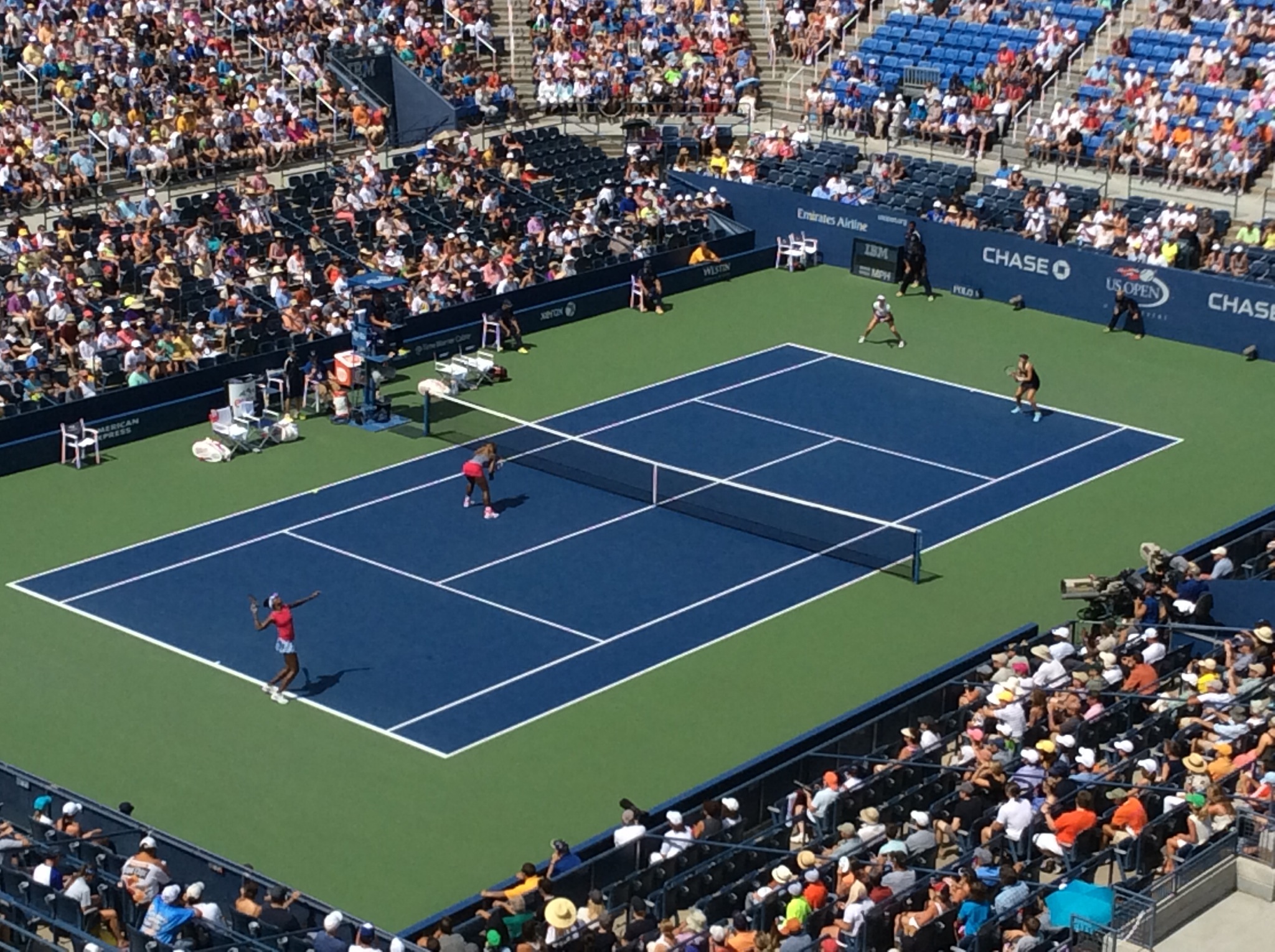We had tickets to Arthur Ashe but could also go into the general seats on other courts. I hadn’t seen Serena play in the flesh and her and Venus were playing doubles on Louis Armstrong so that was the first stop of the day. They were playing Ekaterina Makarova who we had seen play singles the day before and Elena Venina, both from Russia. Elena had knocked our own Marina Erakovic out in the second round. The Russians were the fourth seeds and won the match in two sets.