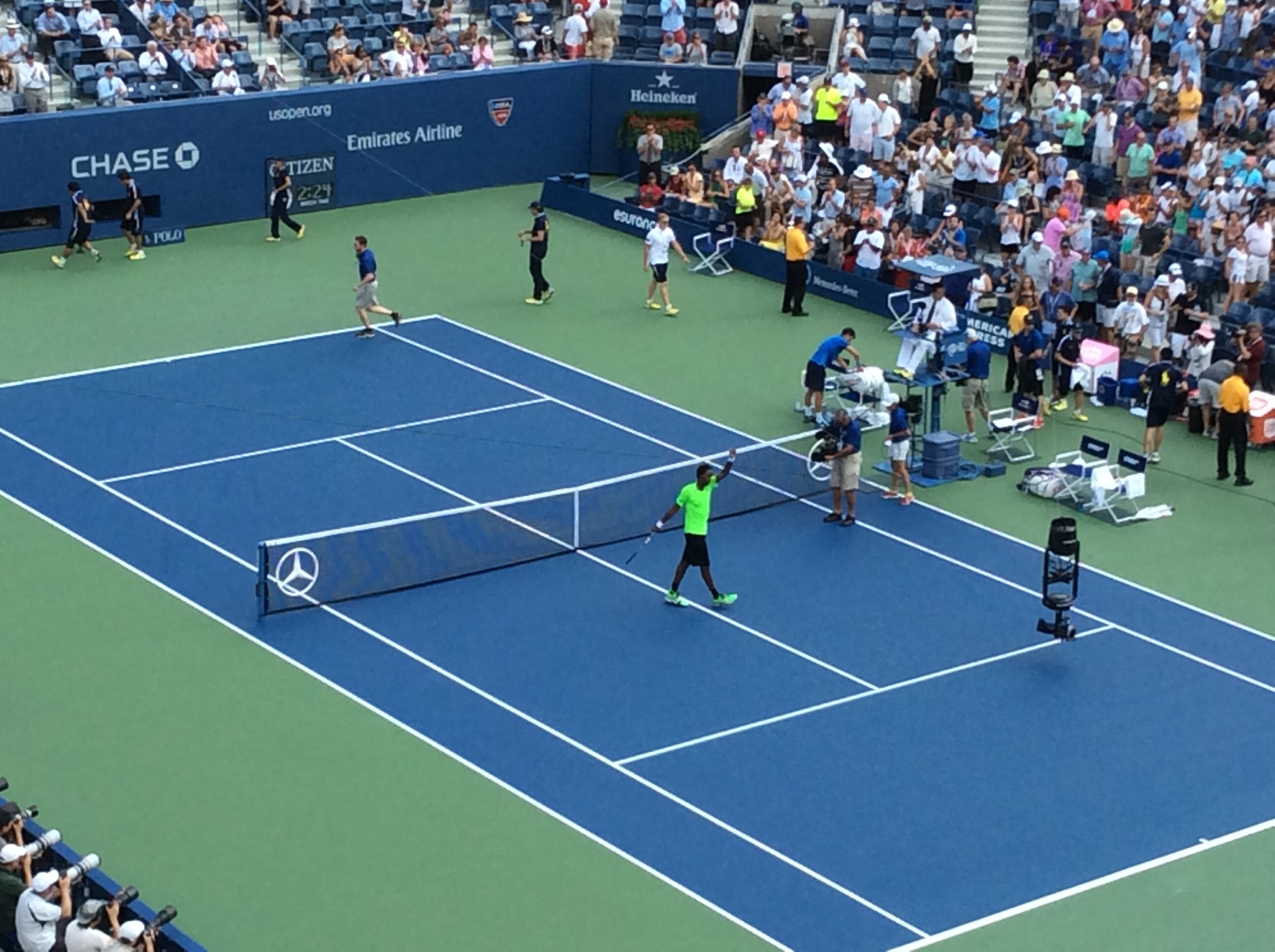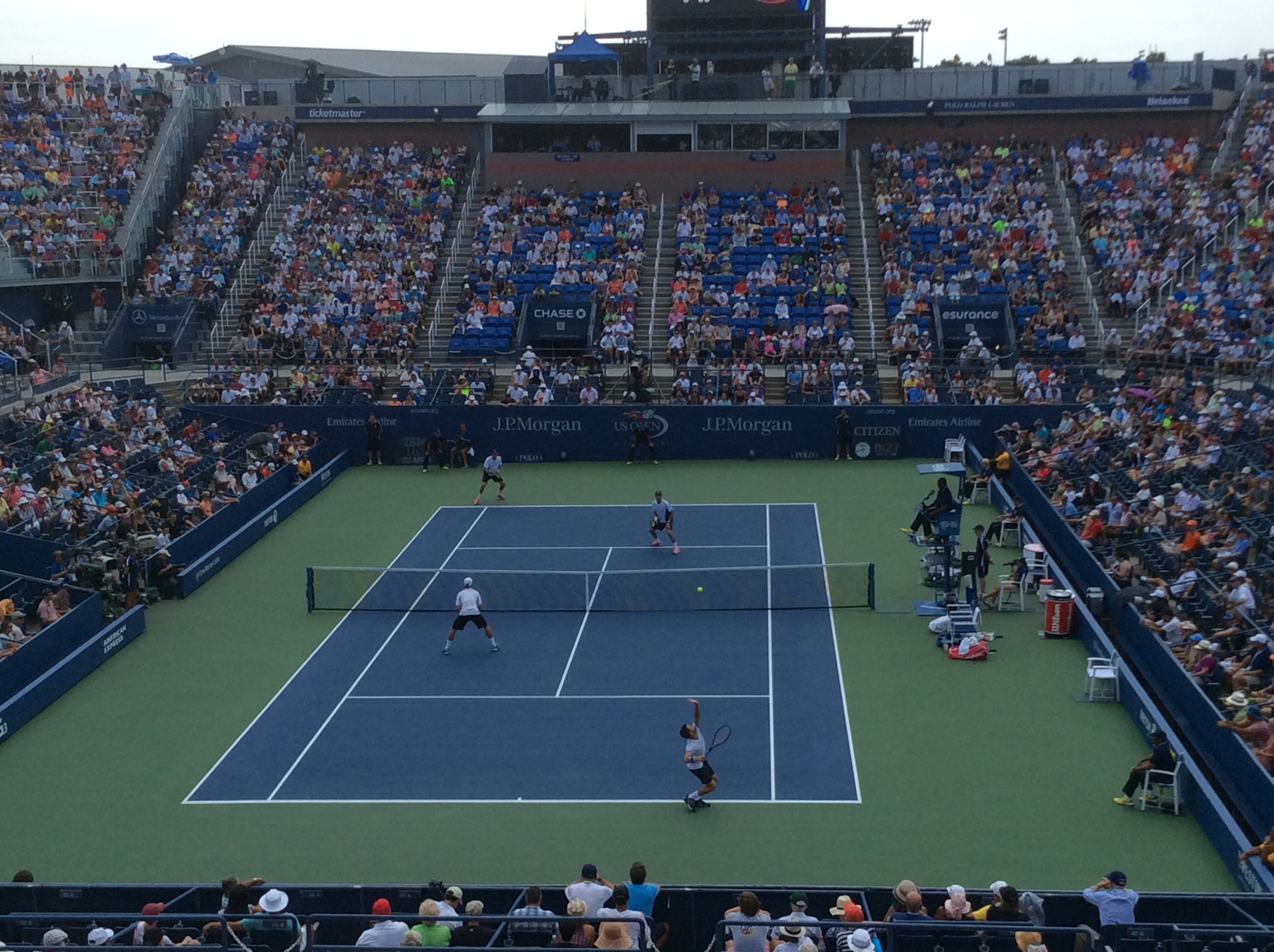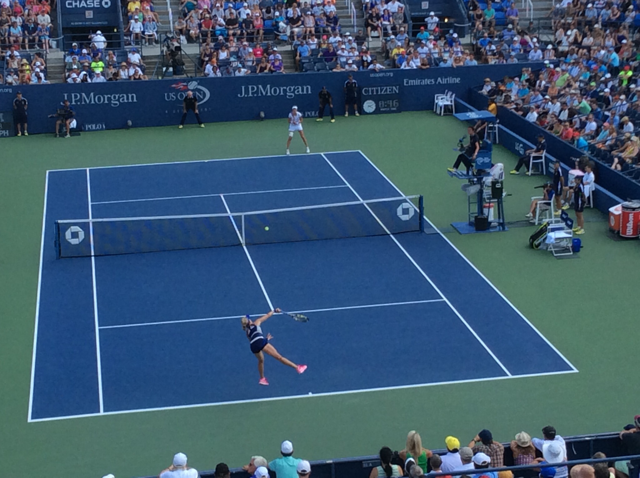 We had tickets to Arthur Ashe but could also go into the general seats on other courts. I hadn’t seen Serena play in the flesh and her and Venus were playing doubles on Louis Armstrong so that was the first stop of the day. They were playing Ekaterina Makarova who we had seen play singles the day before and Elena Venina, both from Russia. Elena had knocked our own Marina Erakovic out in the second round. The Russians were the fourth seeds and won the match in two sets.