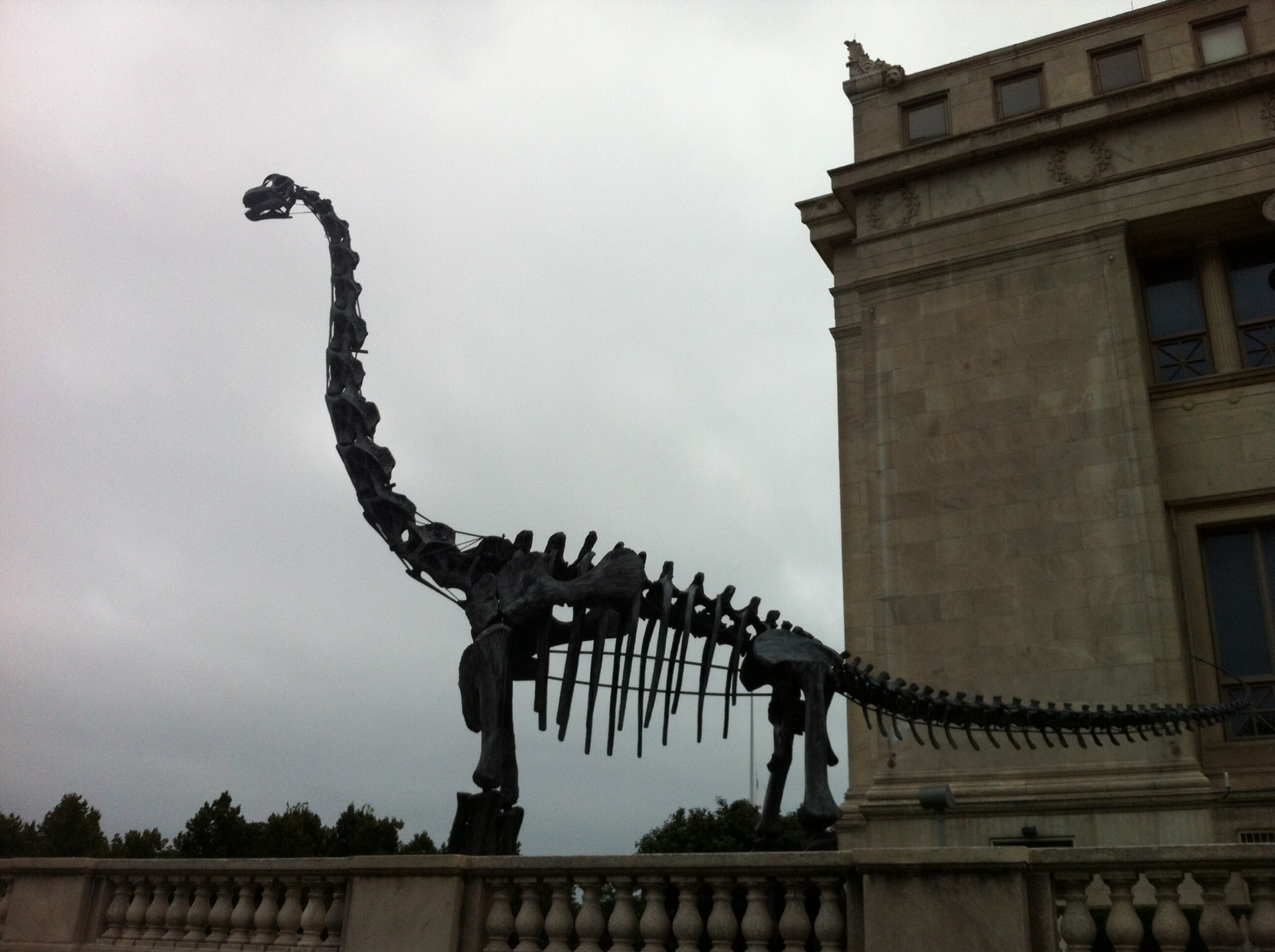 On May 17, 2000, the Field Museum unveiled Sue, the most complete and best-preserved Tyrannosaurus rex fossil yet discovered. Sue is 42 feet (13 m) long, stands 13 feet (4 m) high at the hips and is 67 million years old. The fossil was named after the person who discovered it, Sue Hendrickson, and is commonly referred to as female, though the fossil’s actual sex is unknown. An examination of the bones revealed that Sue died at age 28, a record for the fossilized remains of a T. rex. Brian told us that Sue Hendrickson with a little help from her dog found the remains and was paid about USD8 million for them – fact or fiction?