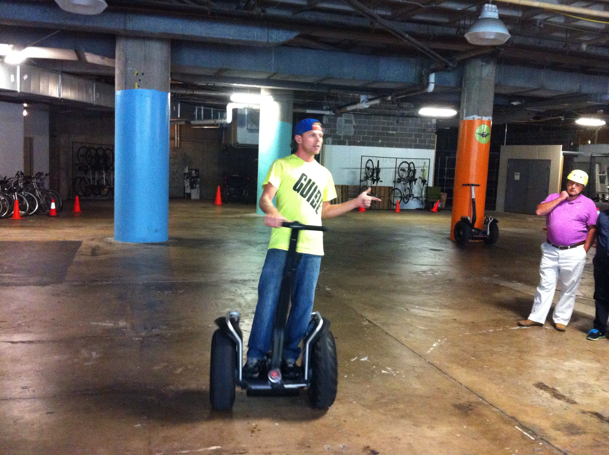 We were greeted at Chicago Segway Tours by a guy asking us if we were here for a bike or camel tour – I couldn’t quite understand him and then he told me that the Segway company had moved. I was just about to ask for directions to the new location when Brian appeared telling us not to listen to his colleague – he was just having us on. We were in the right place. The rest of the tour goers turned up in dribs and drabs and Brian got us sorted. He then gave us a demo and explained all the rules for our own safety etc… Then it was time to take to the Segway – they are actually relatively easy to operate and once you get comfortable they are so much fun. We whizzed around the warehouse practising our turns and going around obstacles.