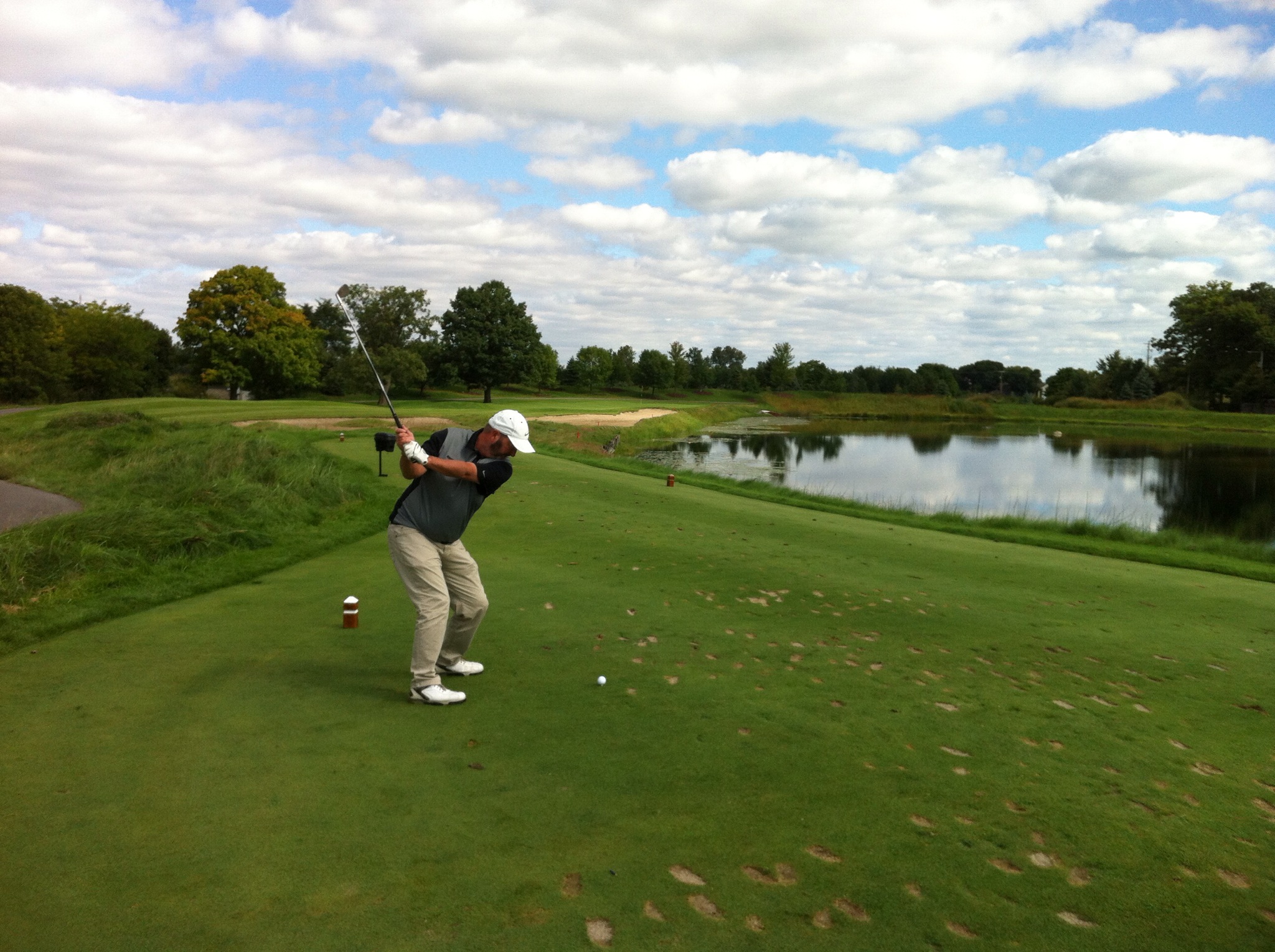 We departed the Morris Inn at Notre Dame this morning and headed south to a golf course just outside Lafayette in Indiana. Again we thought we had left plenty of time to get there but discovered that the main highway our GPS, Doris was taking us on was actually closed in a couple of places. We ended up having to take these massive detours so arrived at the golf course five minutes before our tee time – we are making a bad habit of this.