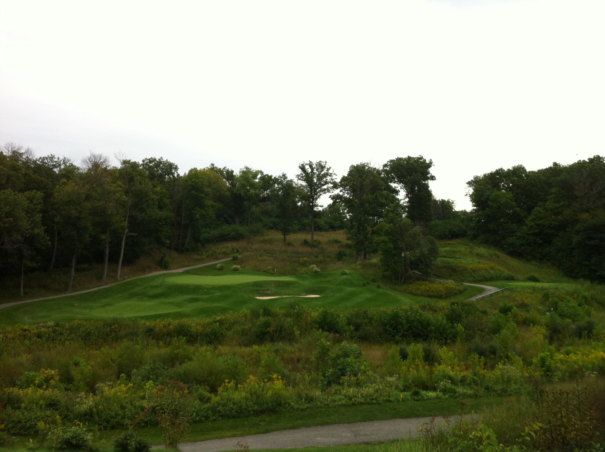 Monday started off nice and sunny – we had a 12.20pm tee time so we had a late breakfast and headed to the driving range to warm up before our tee time. We got to the tee on time and the starter said there were two others joining us. 12.20pm came and went so the Starter radioed up to the Pro Shop looking for our playing buddies for the day. Apparently they had checked in so someone was sent to the range to find them. A few minutes later these two lads rolled up in their cart apologising in their twang for being late. These boys were from Louisville in Kentucky – they had driven two hours to have a game of golf before taking in the football game that night in Indianapolis.