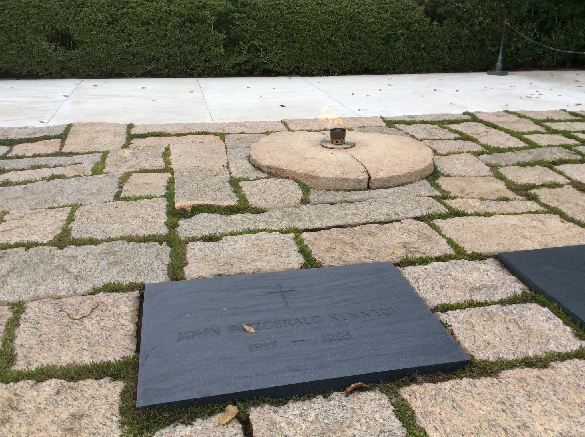 Among the most frequently visited sites in the cemetery is the grave of President John F. Kennedy, who is buried with his wife, Jacqueline, and two of their children. His remains were interred there on March 14, 1967, a reinterment from his original Arlington burial site, some 20 feet (6.1 m) away, where he was buried in November 1963. The grave is marked with an “eternal flame”. The remains of his brothers, Senator Robert F. Kennedy and Senator Edward M. “Ted” Kennedy, are buried nearby. The latter two graves are marked with simple crosses and footstones. On December 1, 1971, Robert Kennedy’s body was re-interred 100 feet (30 m) from its original June 1968 burial site.