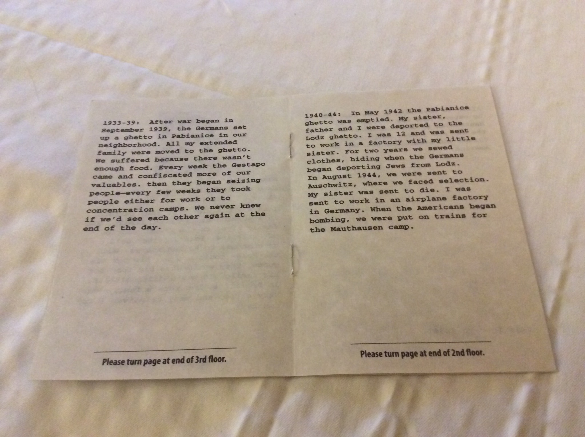 When you go in you take an identity card of someone that was affected by the holocaust – as you progress through the museum you read a bit more of their story. It helps to make it a bit more real. The museum covers three floors and is in chronological order. It was really interesting but boy oh boy a very sobering memorial.