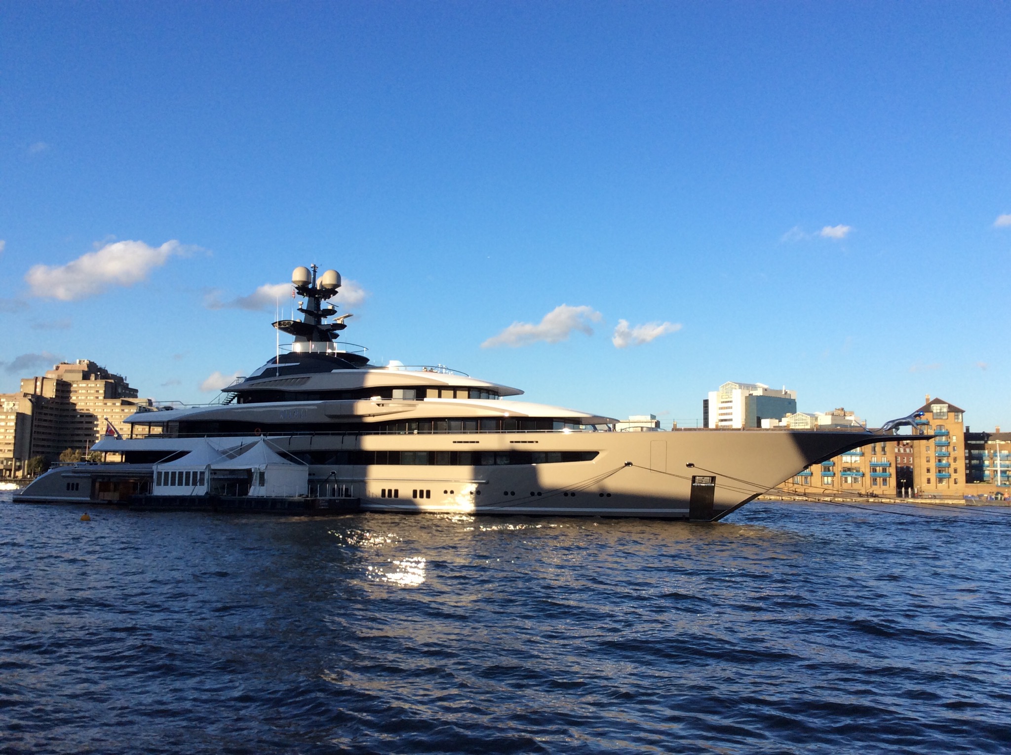 As we walked along Butlers Wharf we saw this amazing super yacht moored in the Thames – it was very impressive and we were wondering who it belonged to. Glen googled it that night and sent me the article that had been in The Standard.
