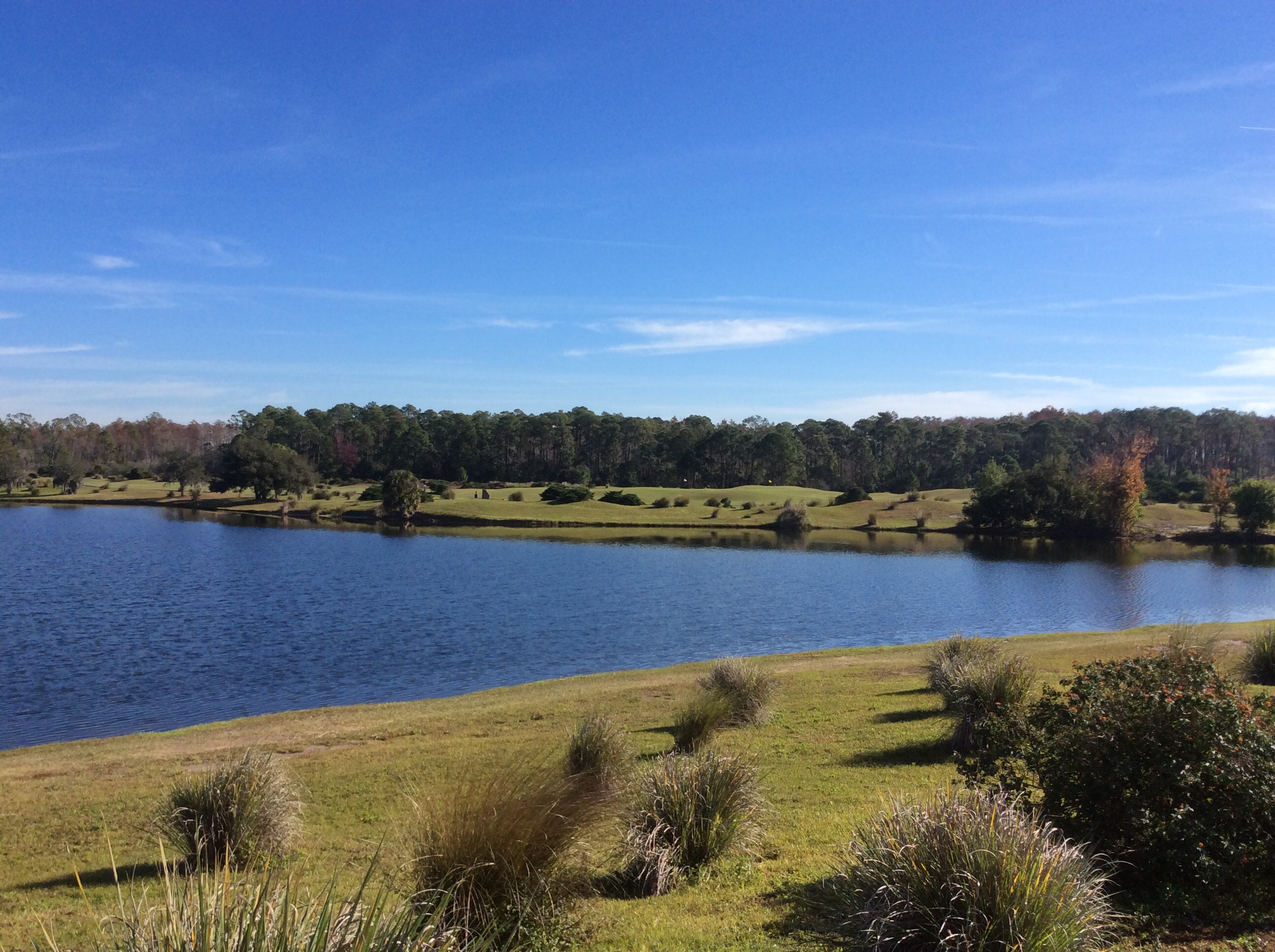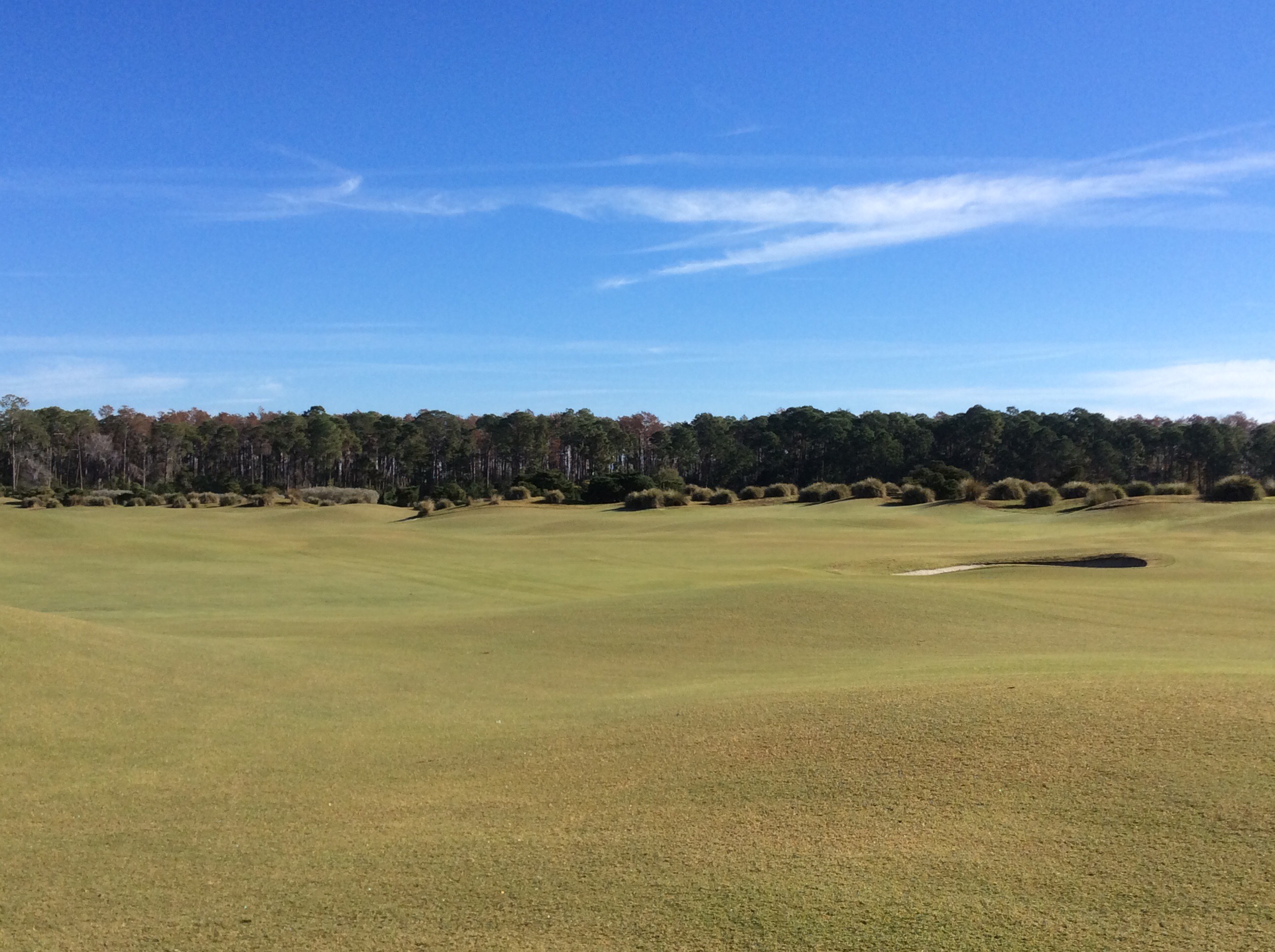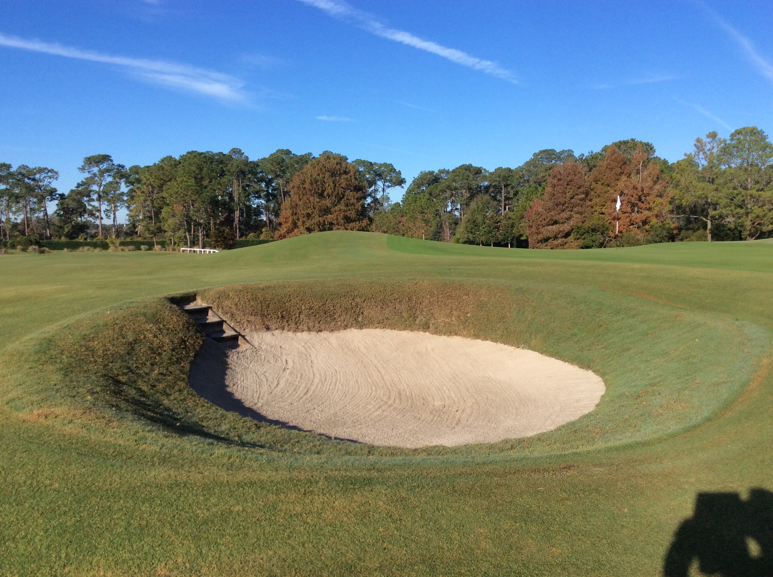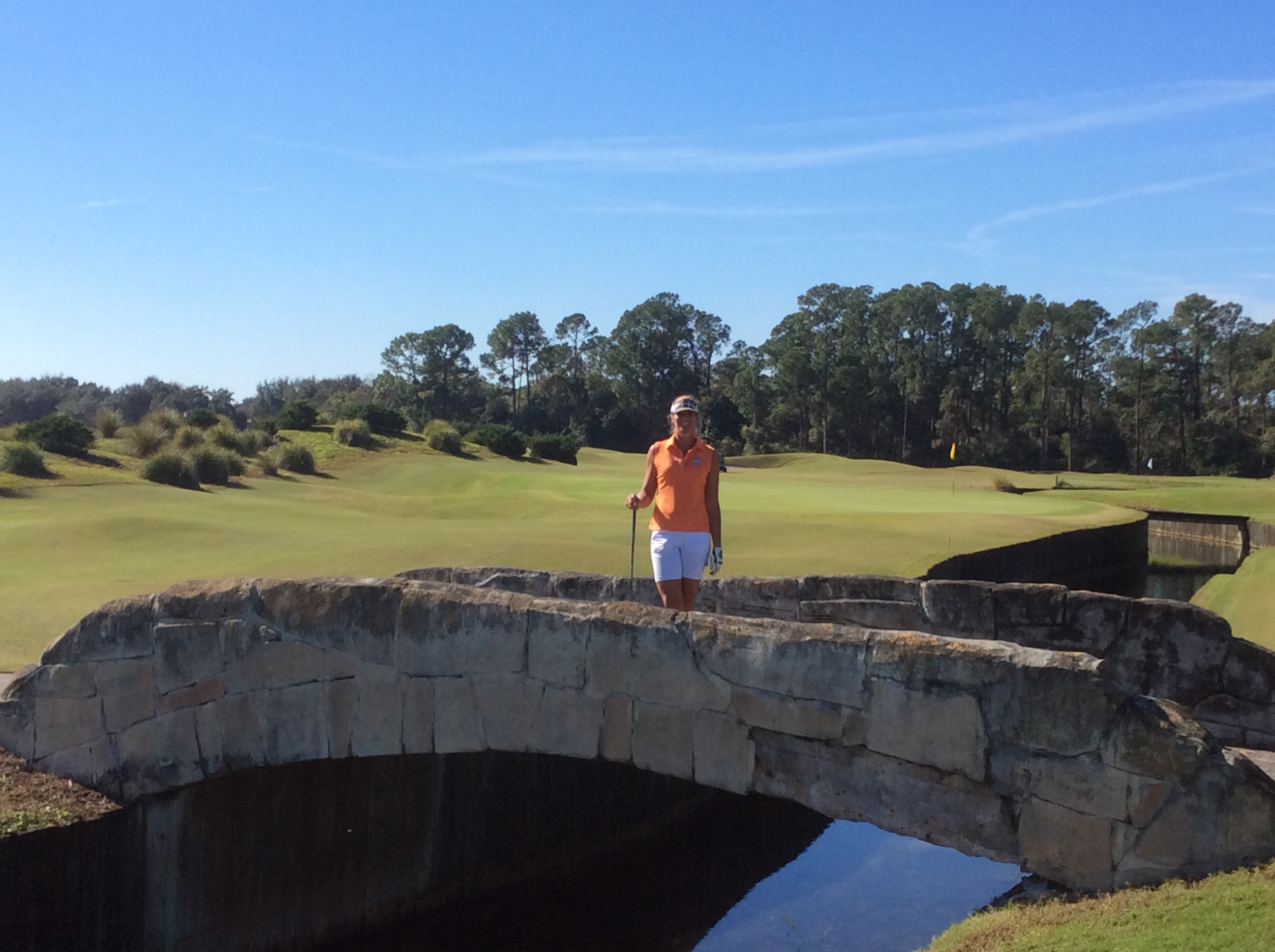 Today we played The New Course at the Grand Cypress Golf Resort. The New Course is Jack Nicklaus’ tribute and homage to the famed Old Course at St. Andrews, Scotland. This Scottish links masterpiece is complete with double greens, stone bridges and walls, gorse mounds, burns and pot bunkers as deep as 12 feet—all in the spirit of the true Scottish original. Very few trees are located within the interior of the course, creating generous landing areas. The course was completed in 1988.