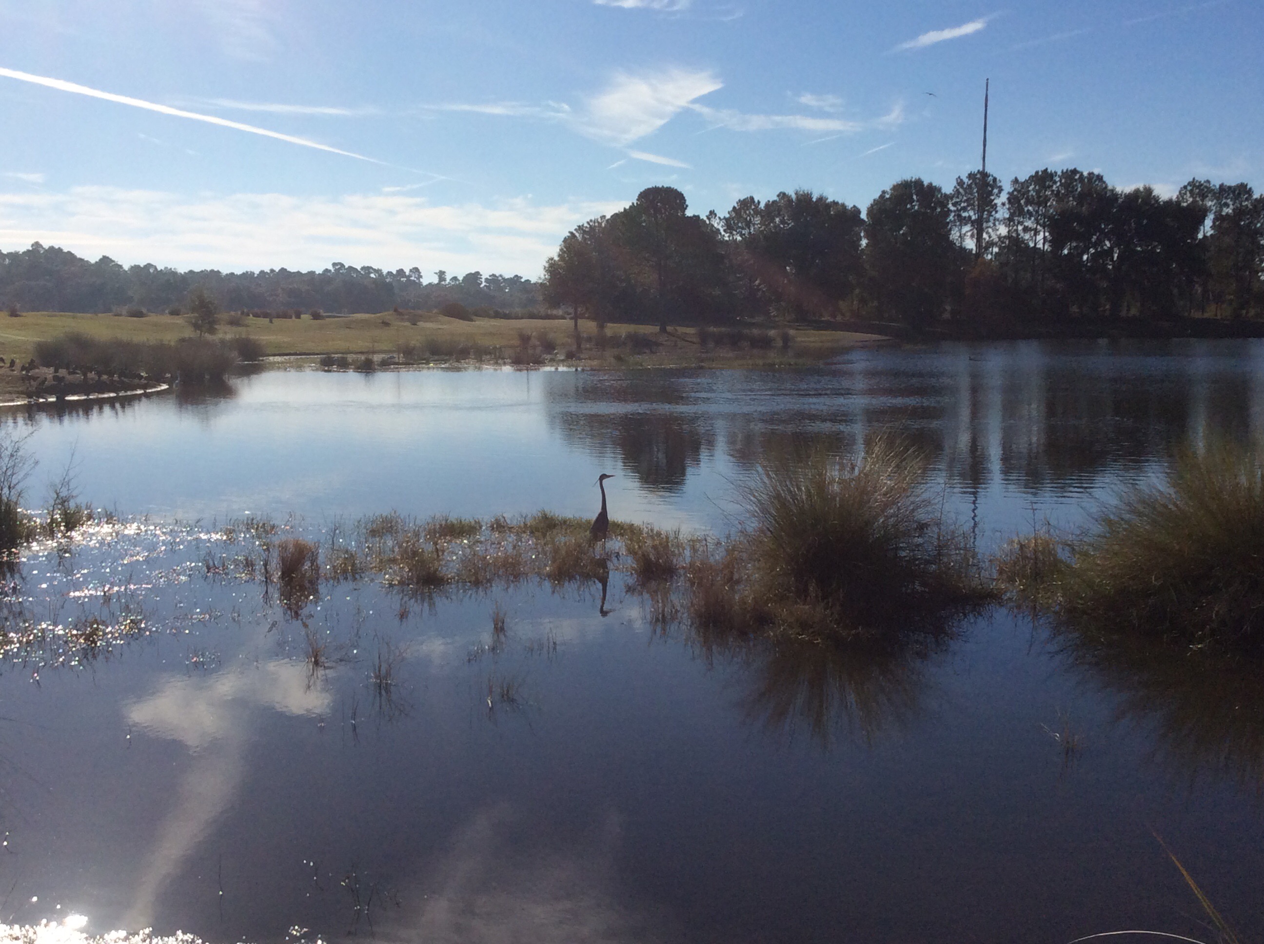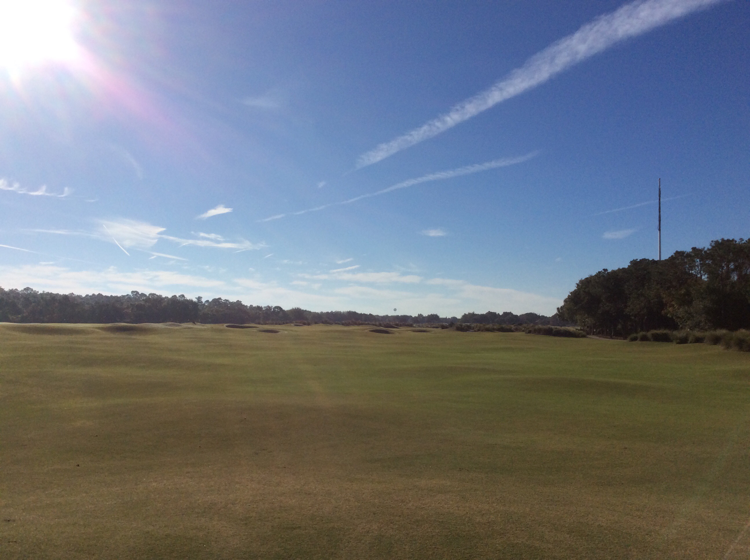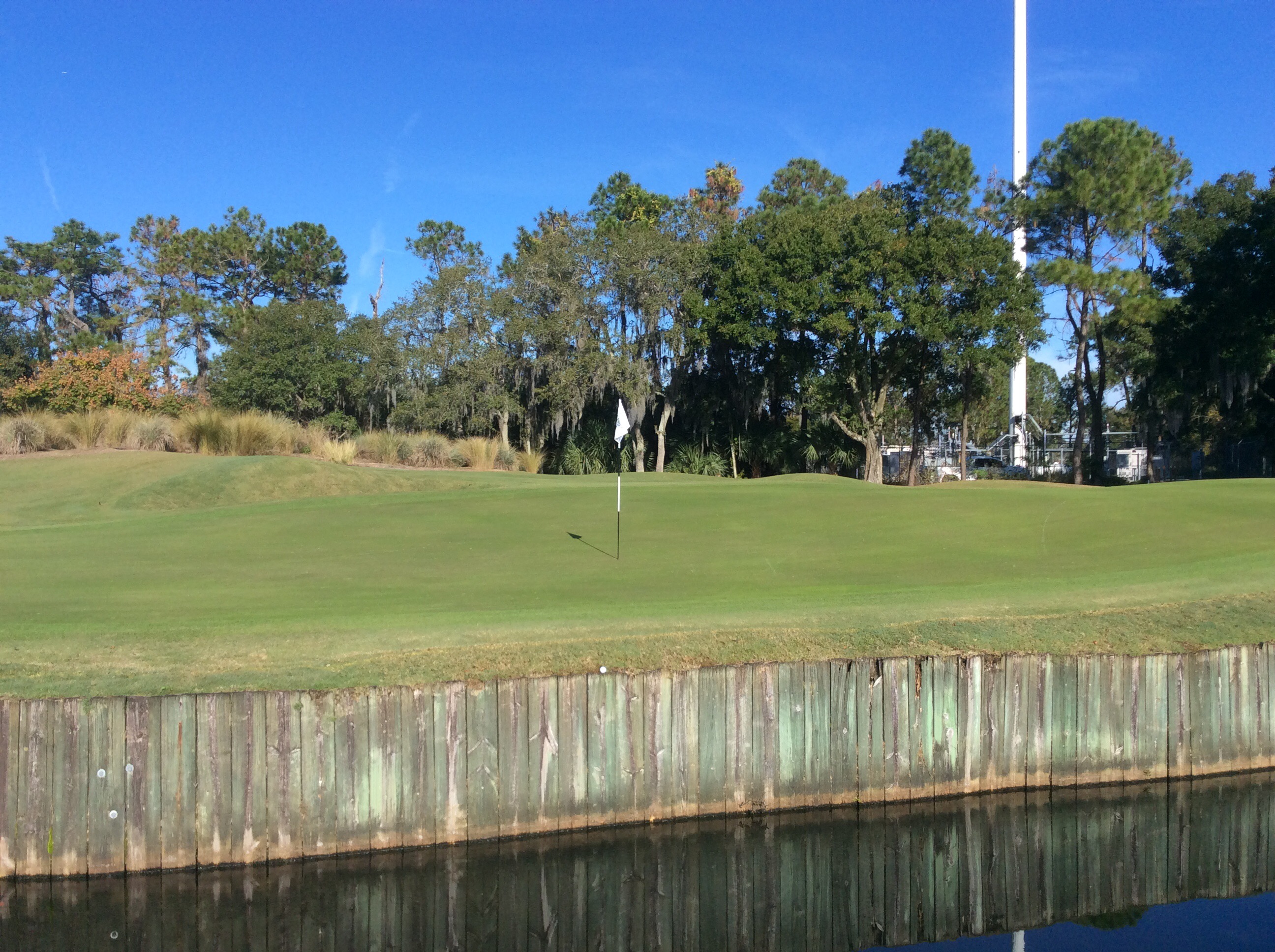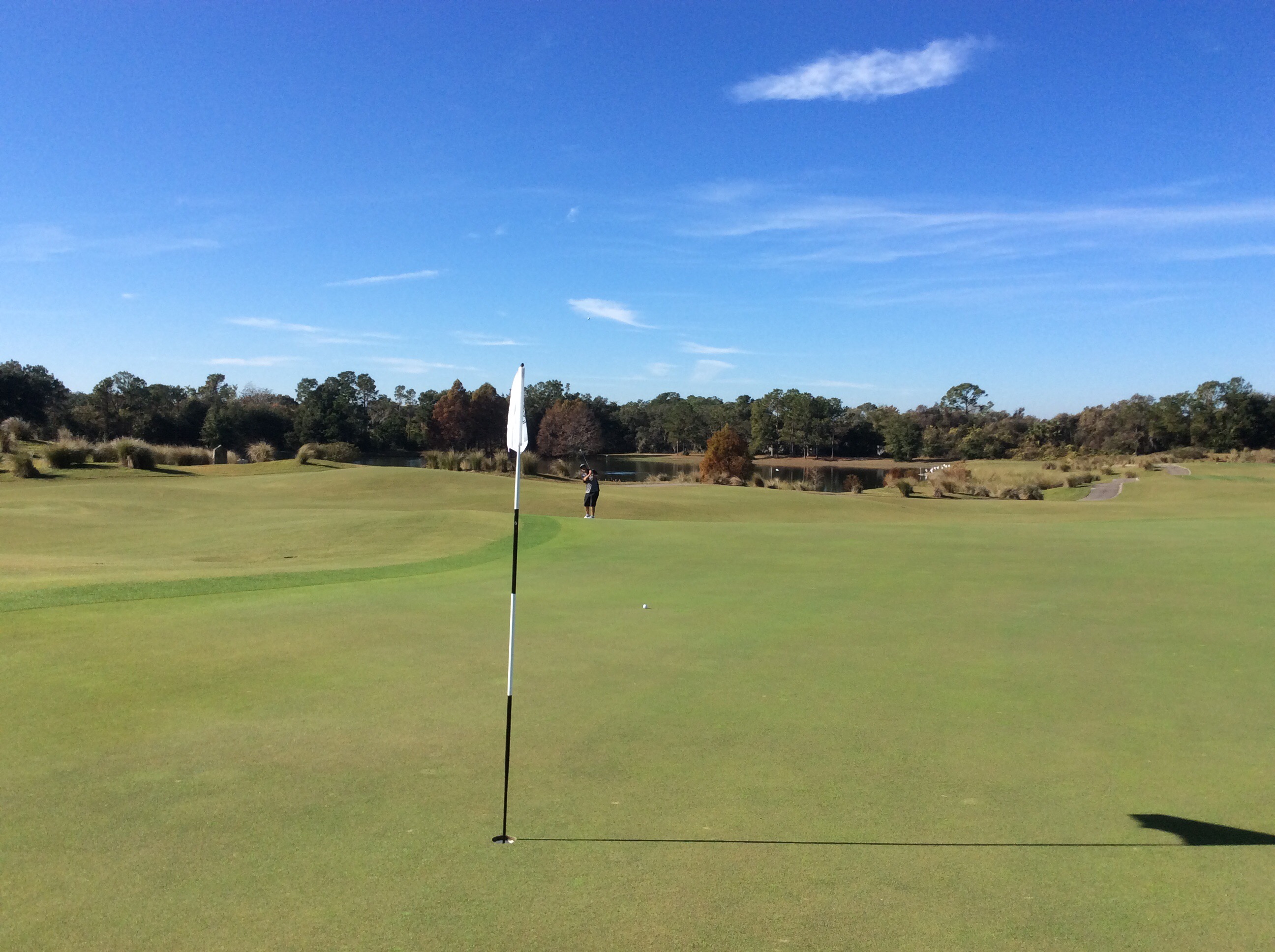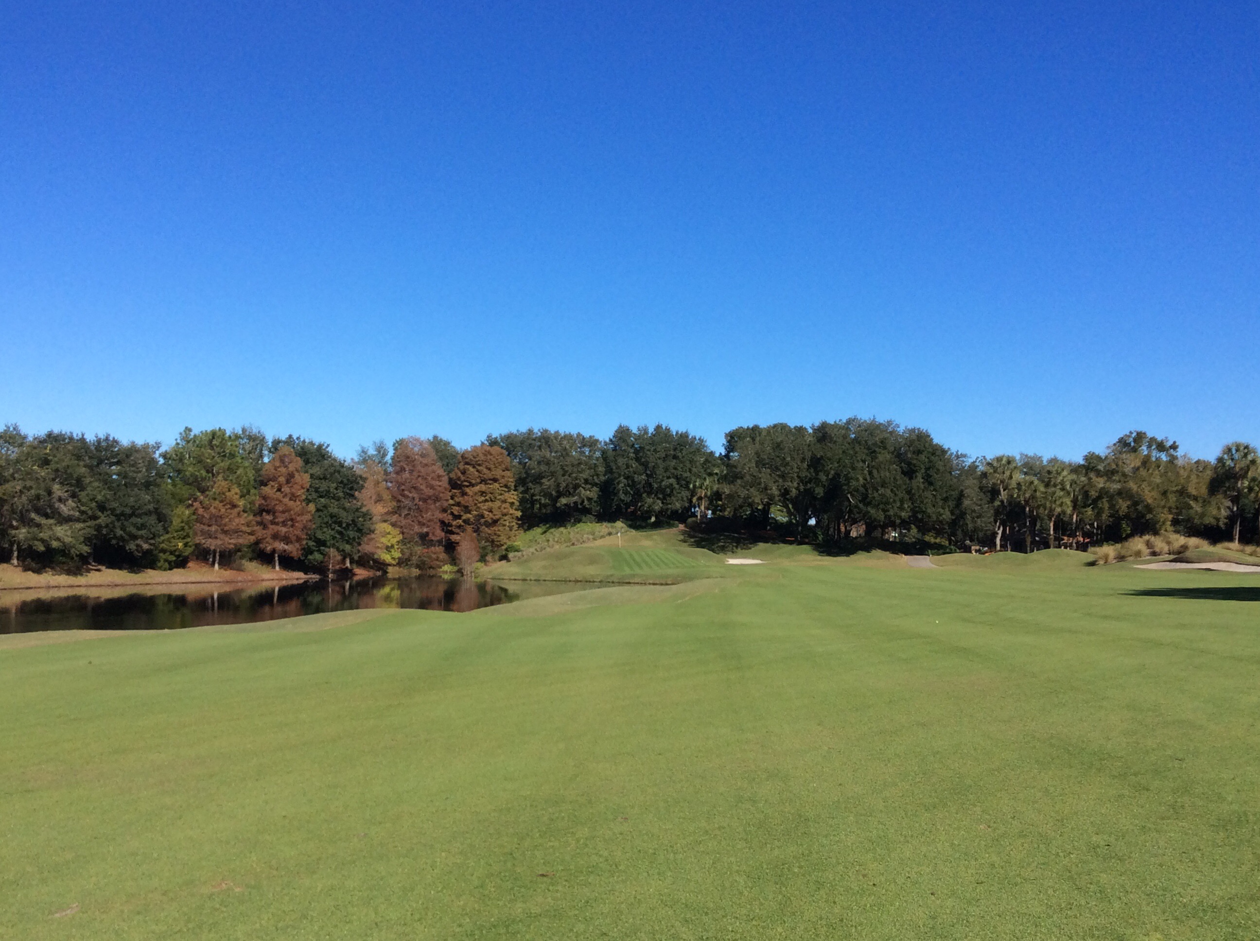 Today we played The New Course at the Grand Cypress Golf Resort. The New Course is Jack Nicklaus’ tribute and homage to the famed Old Course at St. Andrews, Scotland. This Scottish links masterpiece is complete with double greens, stone bridges and walls, gorse mounds, burns and pot bunkers as deep as 12 feet—all in the spirit of the true Scottish original. Very few trees are located within the interior of the course, creating generous landing areas. The course was completed in 1988.