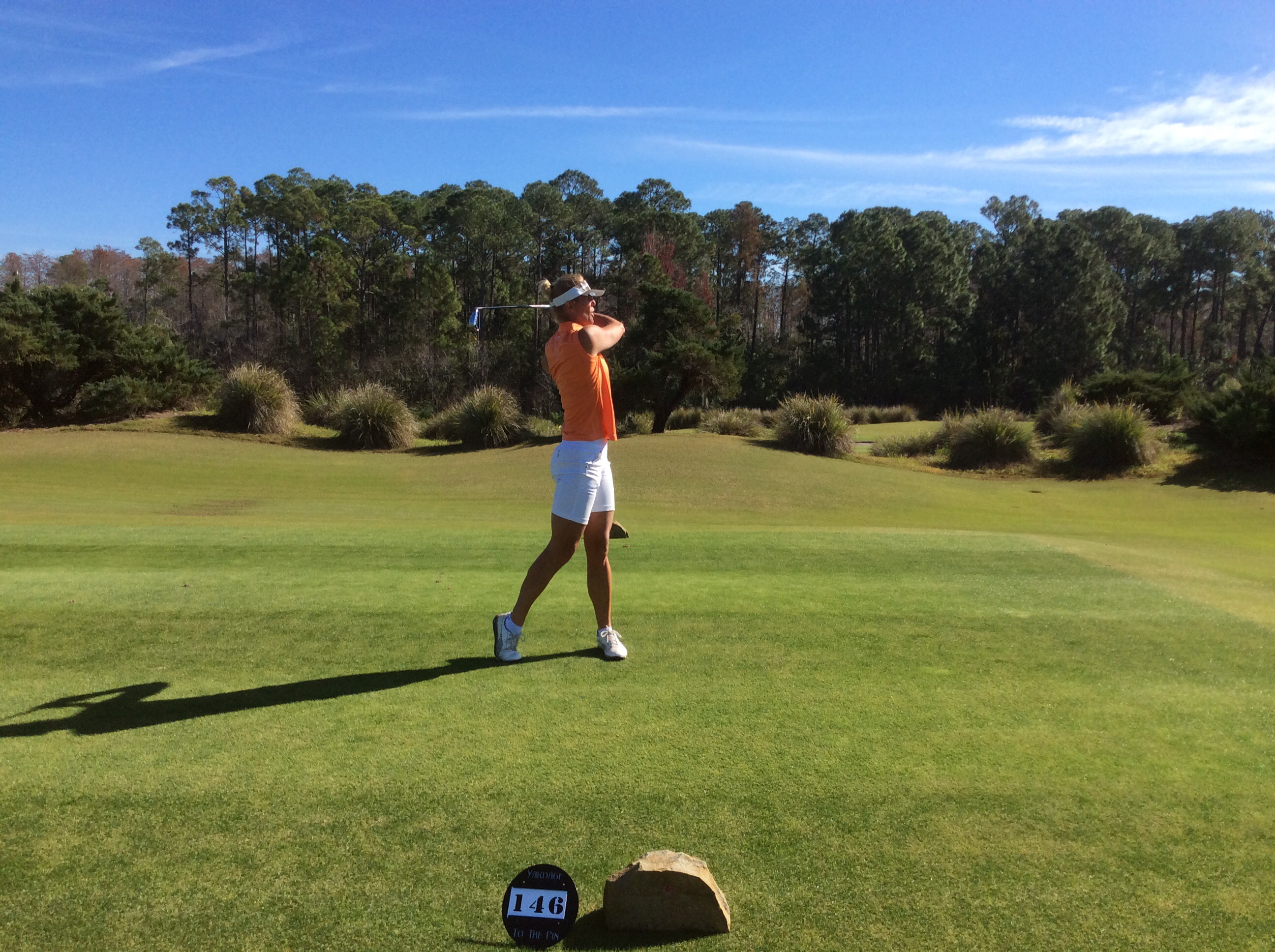 We were the first off at 8am with no one following us until about 9am so we had the whole course to ourselves for an hour and it was heaven. It was a little chilly to start off with and I didn’t take my sweatshirt off until the 15th hole. I had a few brain explosions with my short game today and found the greens like glass tables!