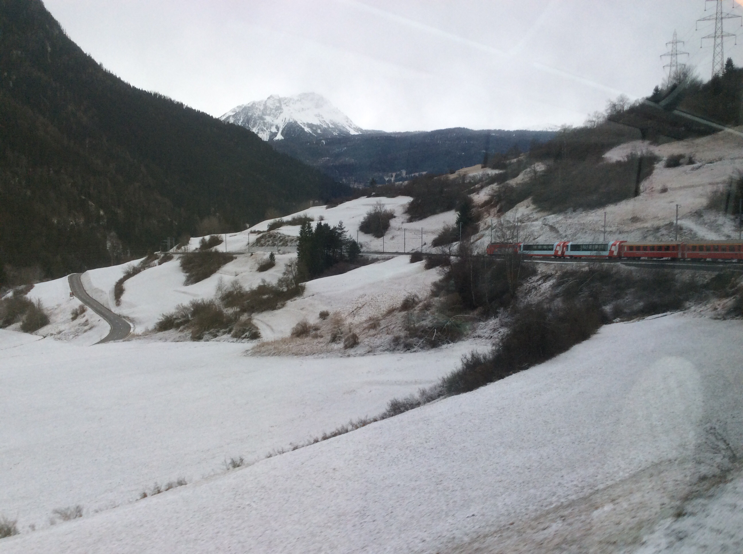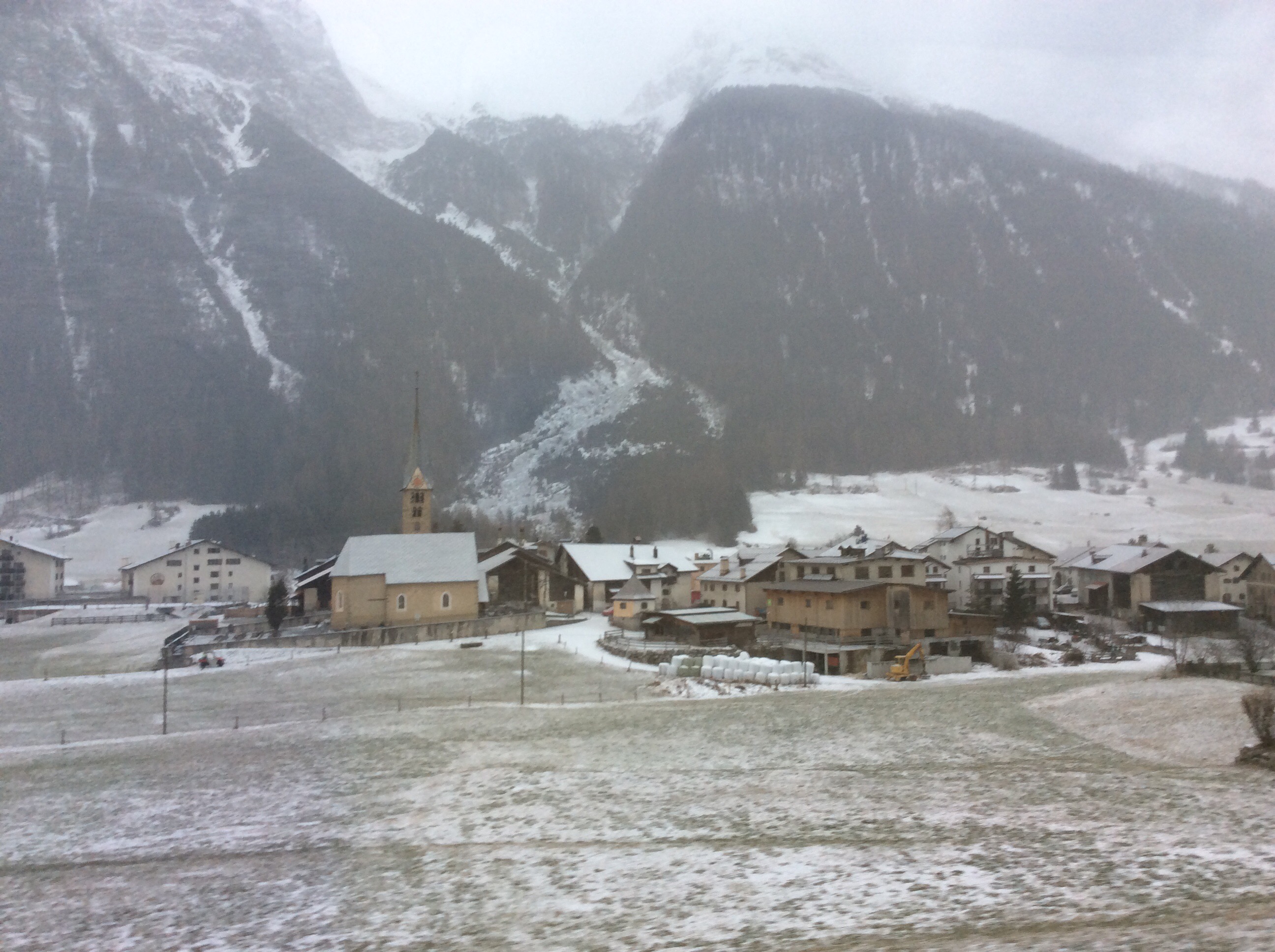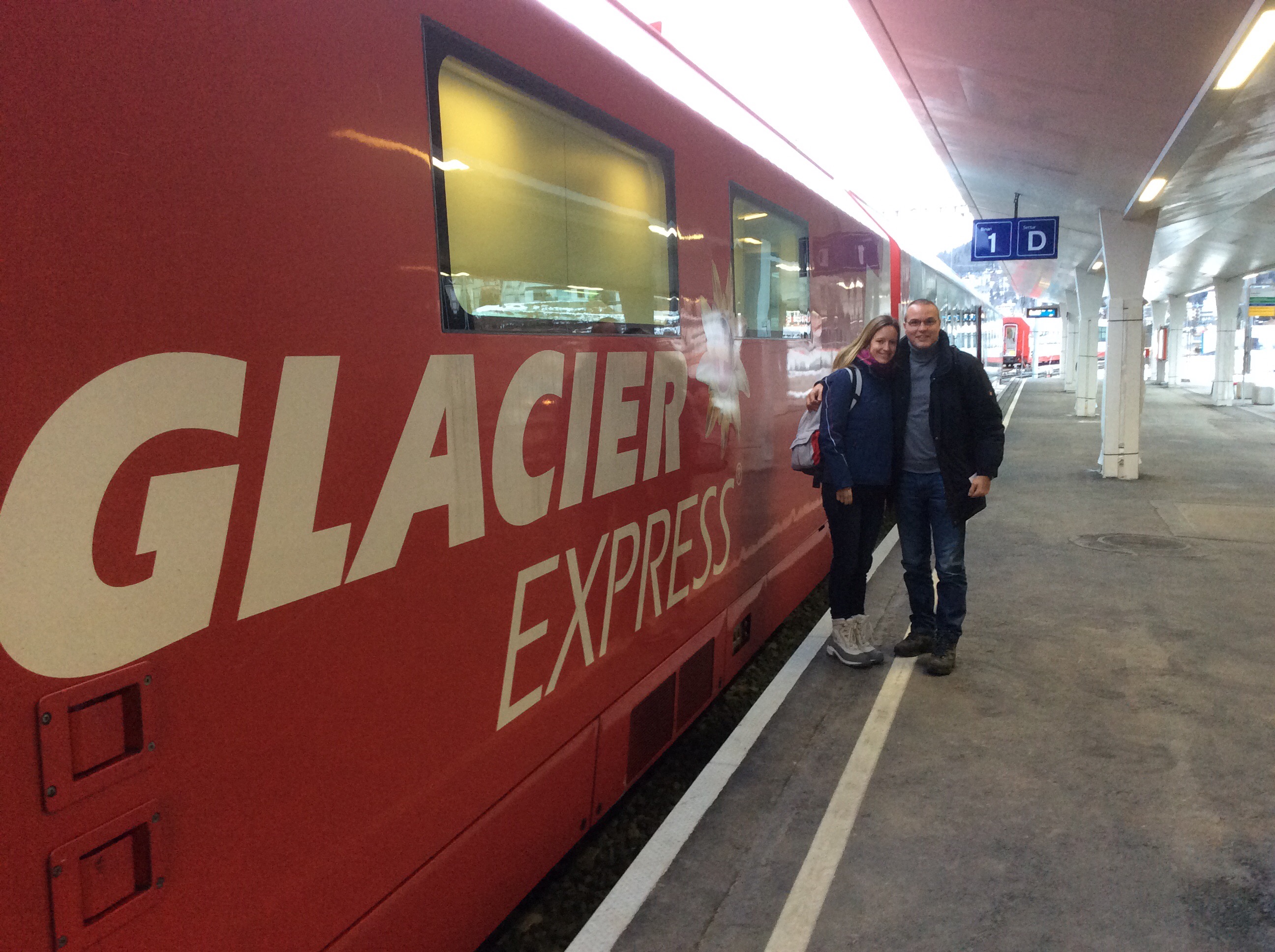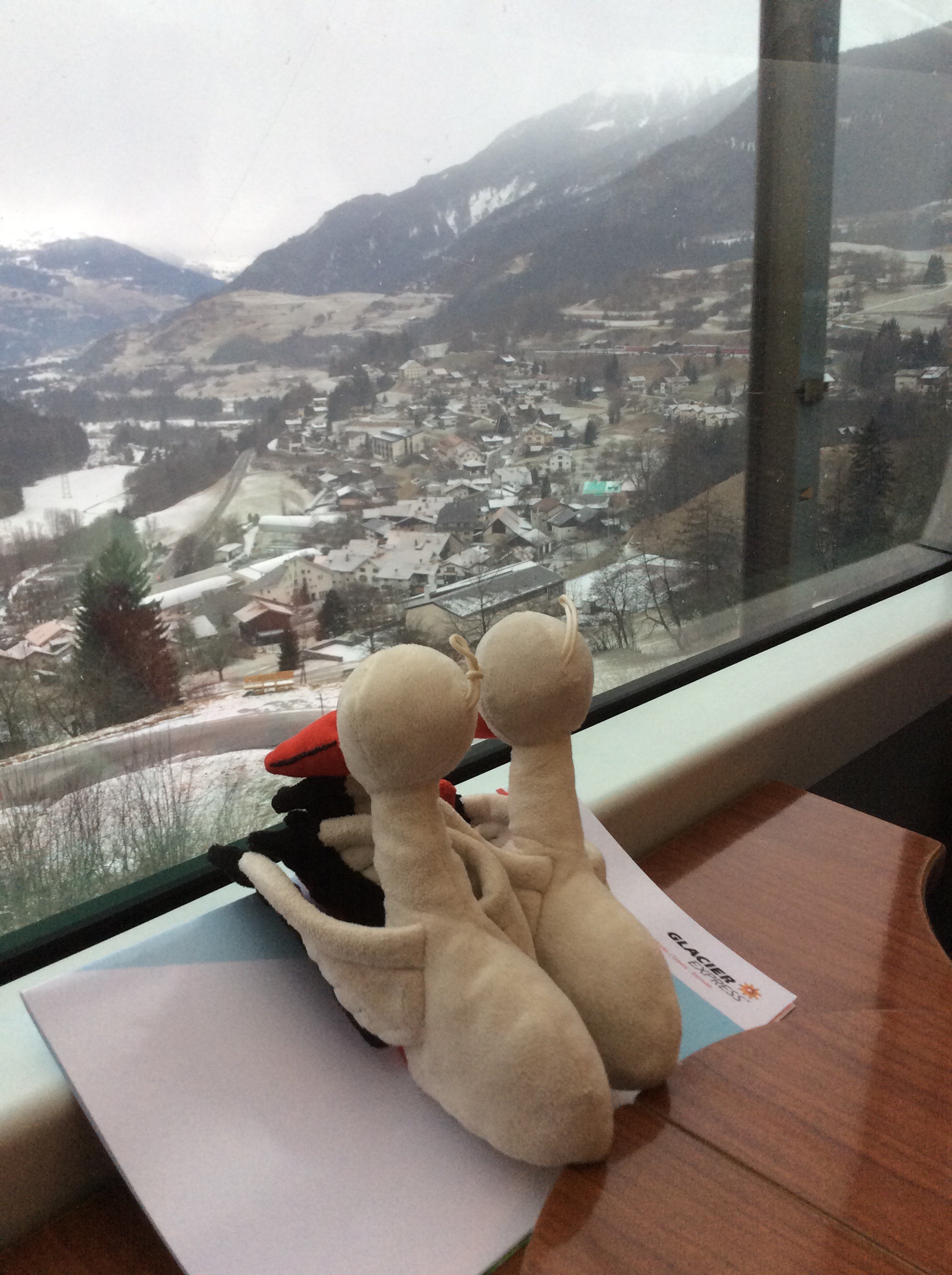 After exploring St. Moritz on Boxing Day we stayed in Zouz so we could get up early and catch the Glacier Express – it departed St. Moritz at 9.02am on Saturday the 27th December. There was a high level of excited anticipation. Karin & Elvis had never done the Glacier Express either so it was cool to be sharing this experience with them.