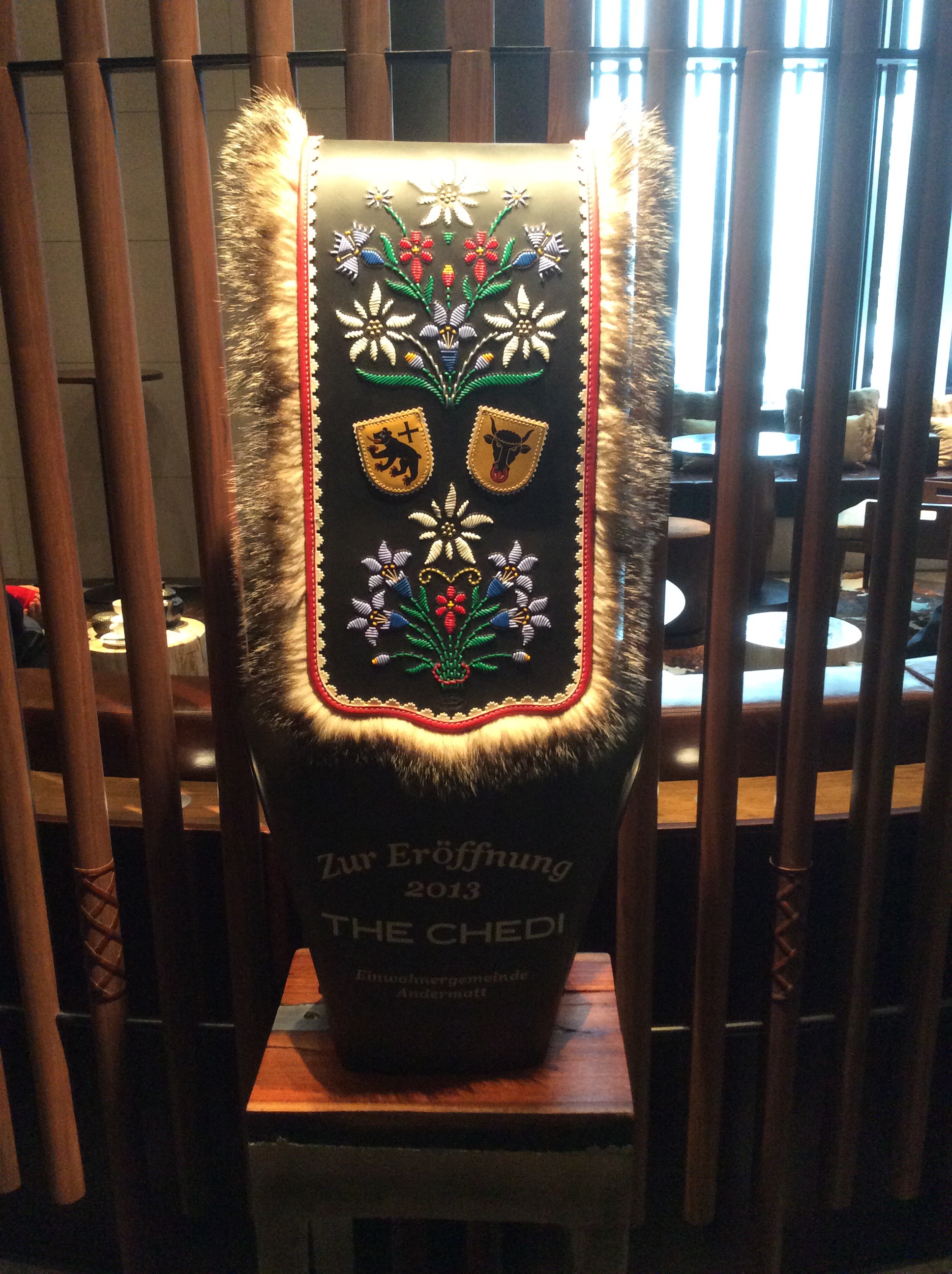 By the turn of the 21st century, as an alternative to the expensive skiing resorts in the Grisons (Graubünden) at St Moritz and Gstaad, Andermatt’s fortunes again revived and the town has seen considerable expansion and is currently undergoing much speculative building. We decided to have a drink at one of the newest hotels in Andermatt – The Chedi. It was very nice and had an indoor pool that people were lying around which seemed strange given it was snowing outside.