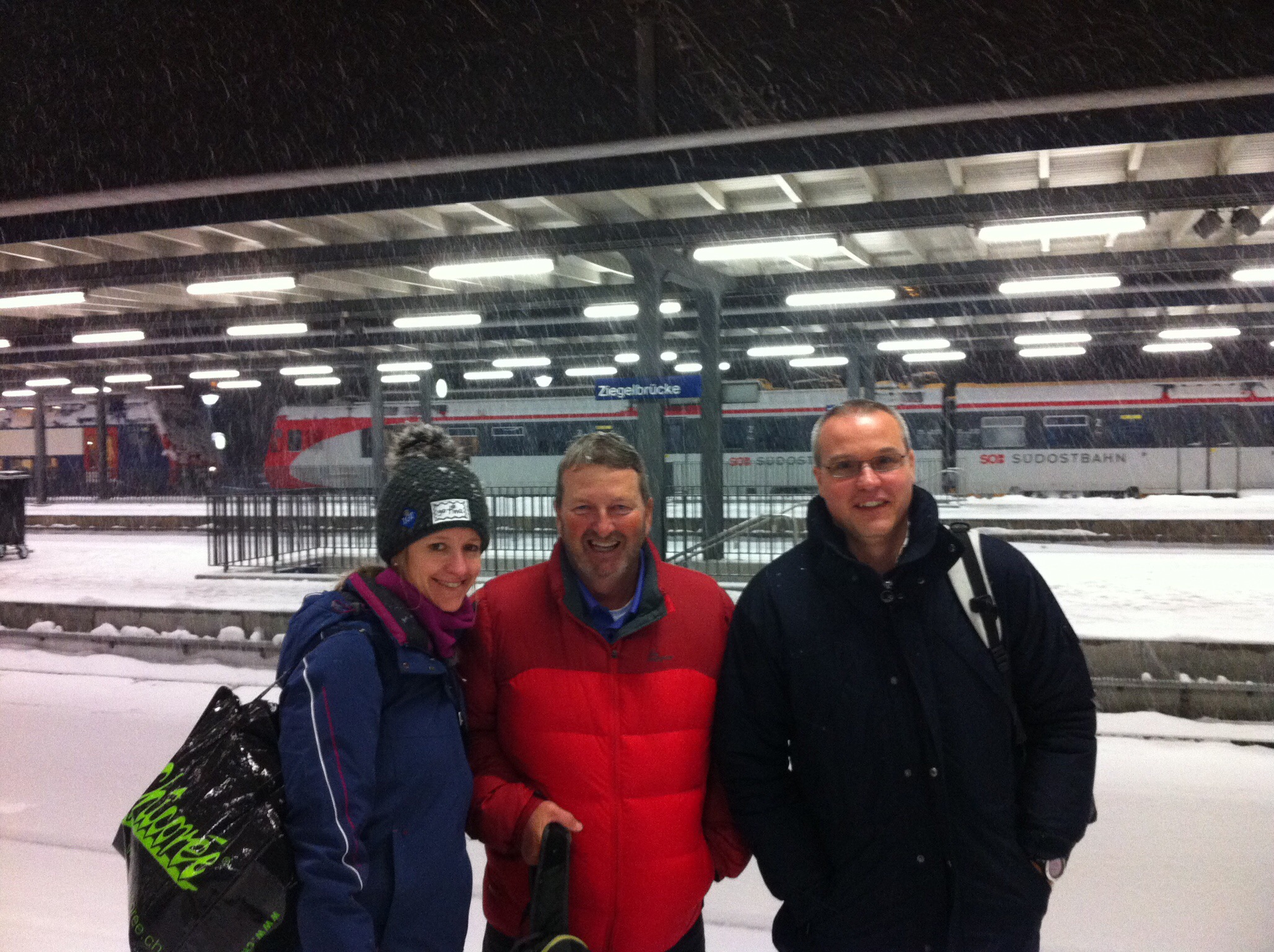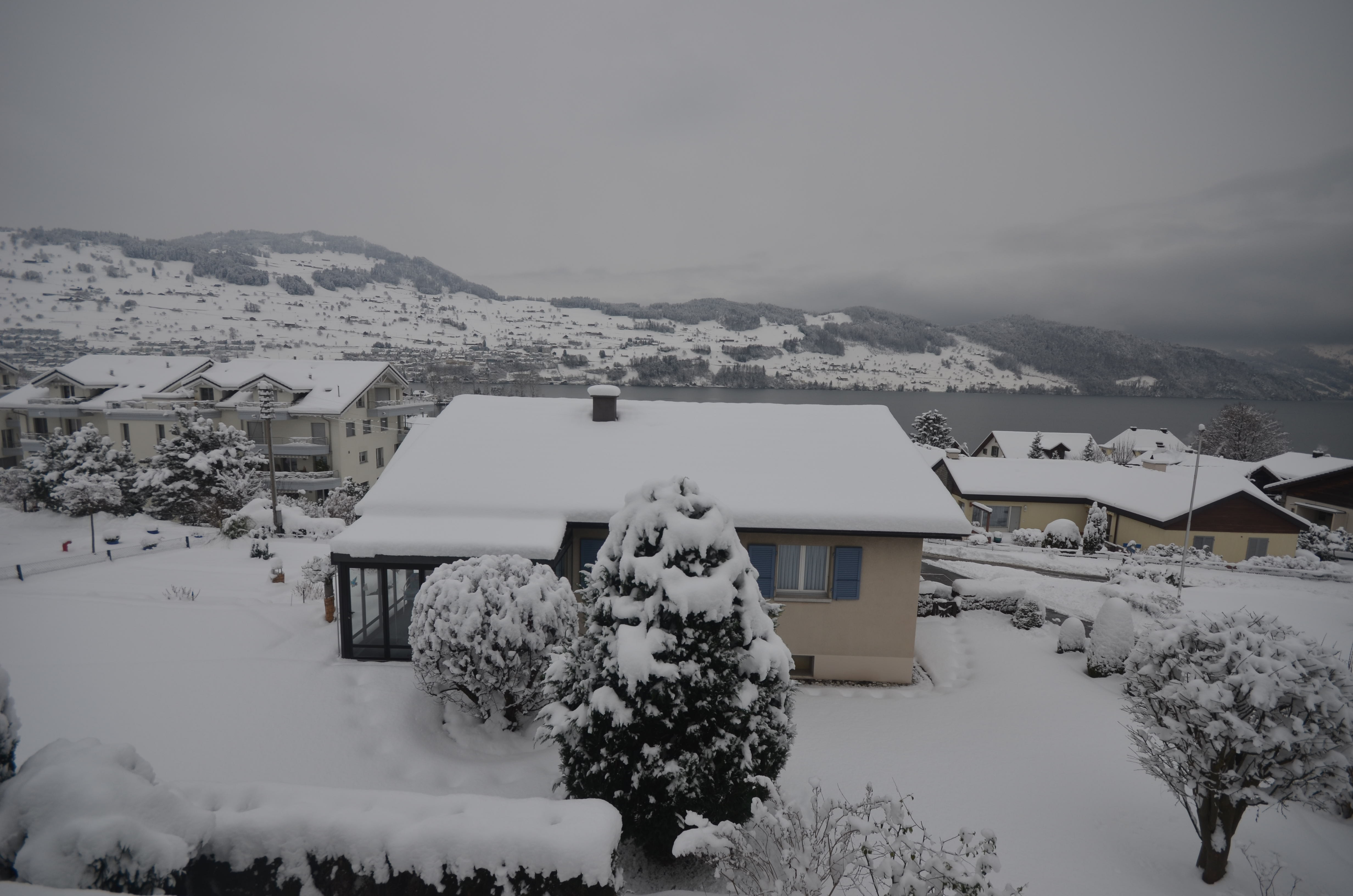 After breakfast we went to the Landerpark which is a shopping centre. While we were there it started snowing quite heavily. We were supposed to be driving to Karin’s brother’s place about an hour and a half away for dinner.We decided it would be safer to take the train – we had to change trains a few times so the journey took about two and a half hours but it was definitely the safer option. We walked from the train station to Michael & Aileen’s apartment along the river bank in the snow – it was a bit chilly but nice to be at one with nature. Aileen prepared Arrabbiata sauce and pasta for dinner which was perfect. We sat in their winter garden which is like a conservatory – luckily they had heating : ) It was very cool looking out at the snow covered lawn and when I say covered I mean by about half a metre of snow. As the evening progressed the snow covering continued to grow. Michael drove us to the train station at the end of the evening – the roads were covered with snow which made for fun driving. We got back to the train station in Fluelen just before 1am and had to de snow Elvis’s car so we could drive home. We couldn’t get up the driveway when we got home so Elvis parked the car at the lake.