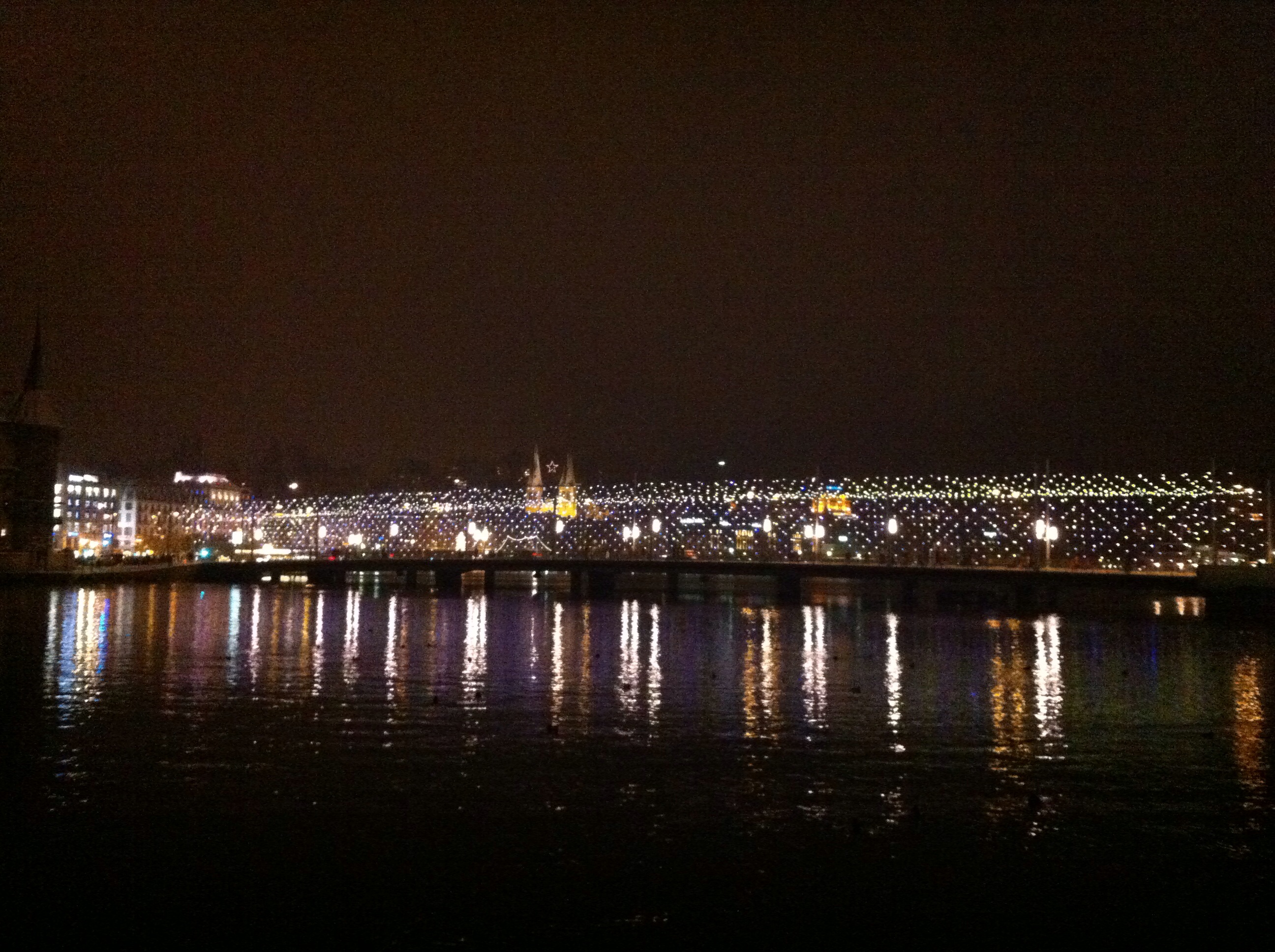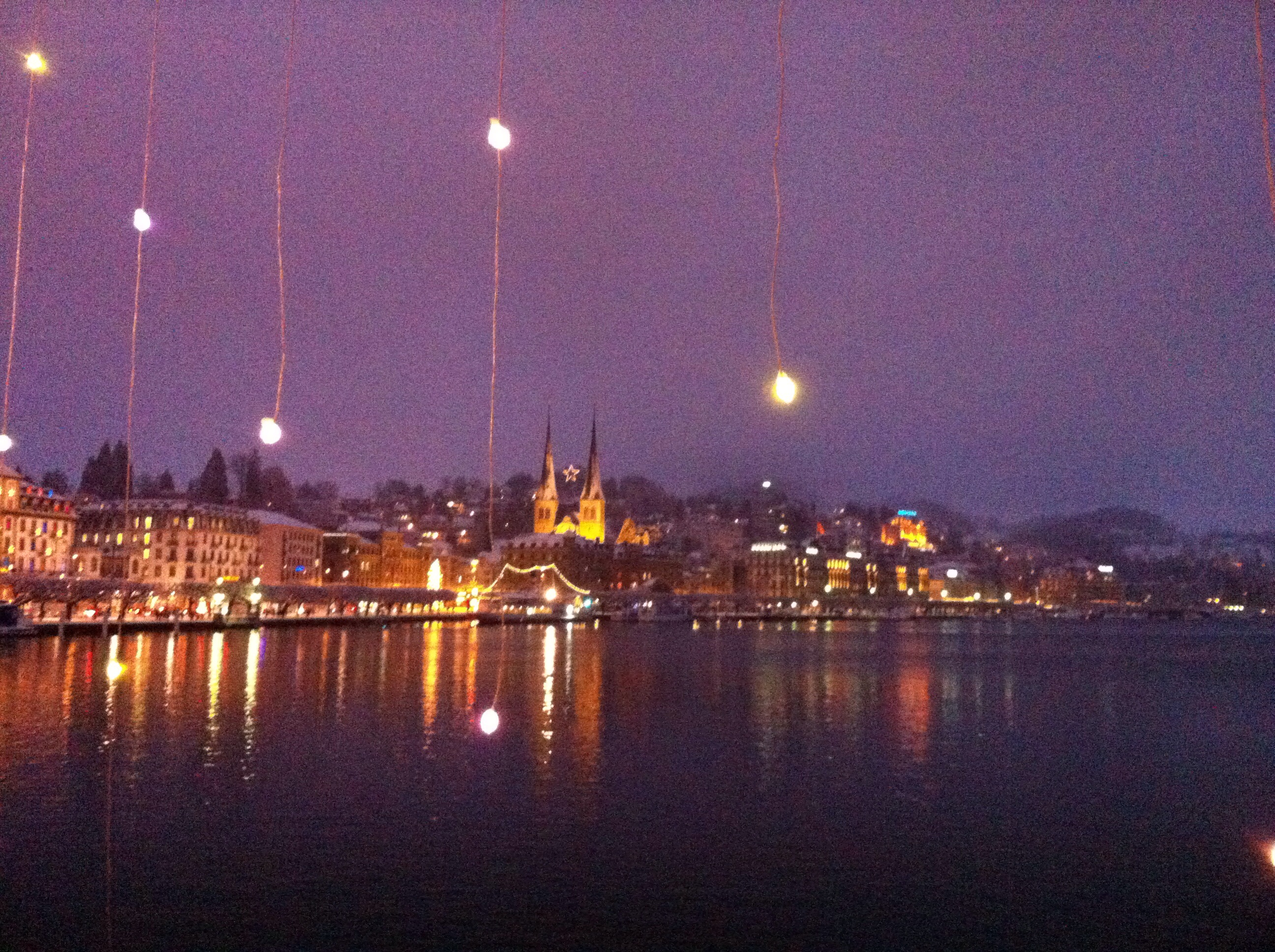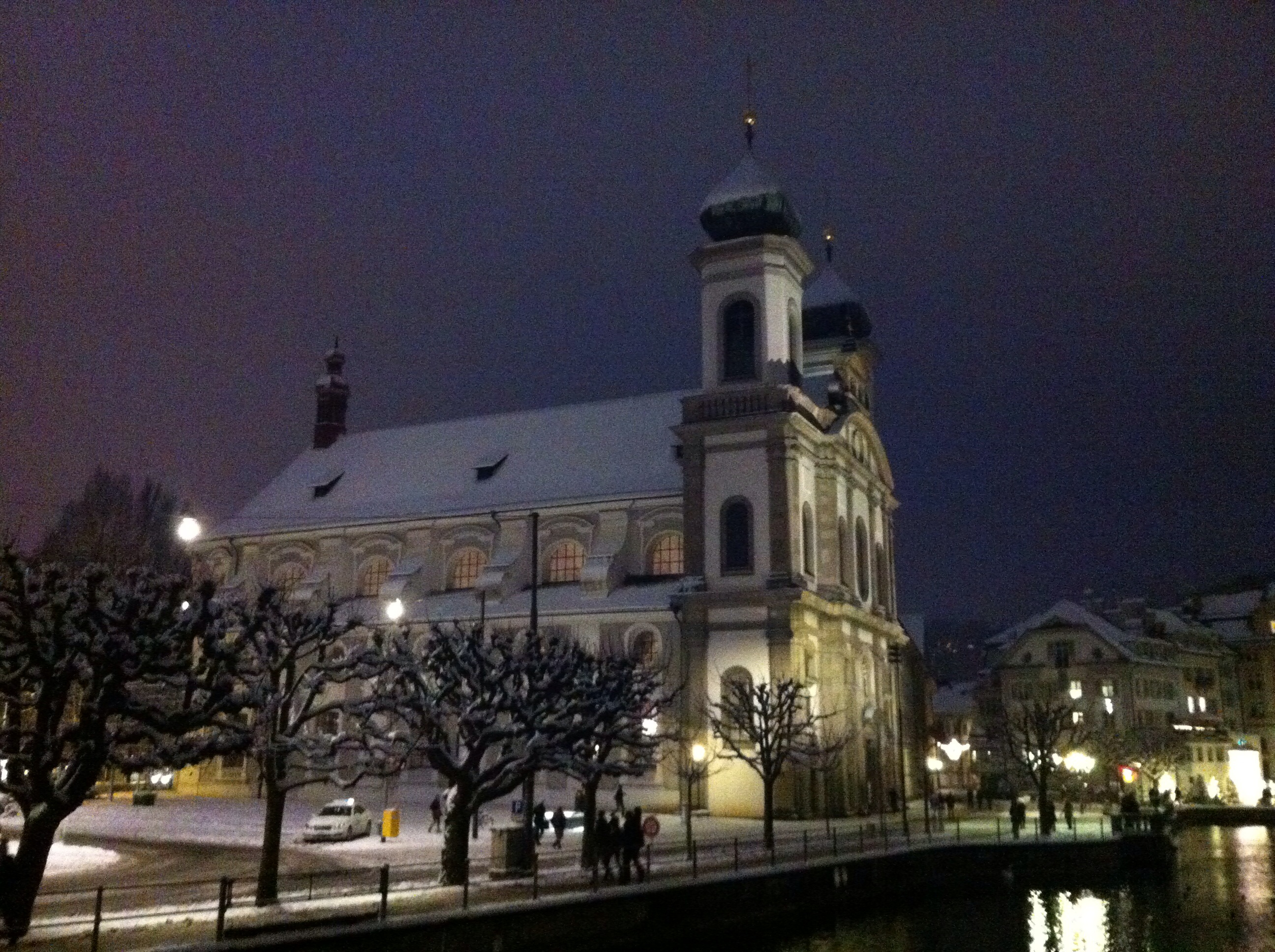 That evening Karin & Elvis had a surprise planned for us in Lucerne. By this stage it was snowing again so we had to take it slowly in the car. We had a wander around Lucerne before going for some dinner. Lucerne is a pretty place anyway but with the snow and the lights it was quite magical. The surprise that they had planned was going to see Pirates of the Caribbean On Stranger Tides in the Culture and Congress Centre. What made this special was that the movie was accompanied by The 21st Century Symphony Orchestra which is a 90 piece orchestra and a choir. You hear the actors speaking but all the music and singing is performed by the orchestra and the choir. The movie was in English with German subtitles. It was a unique experience and to start with you didn’t know where to look. The live music and singing were fantastic.
