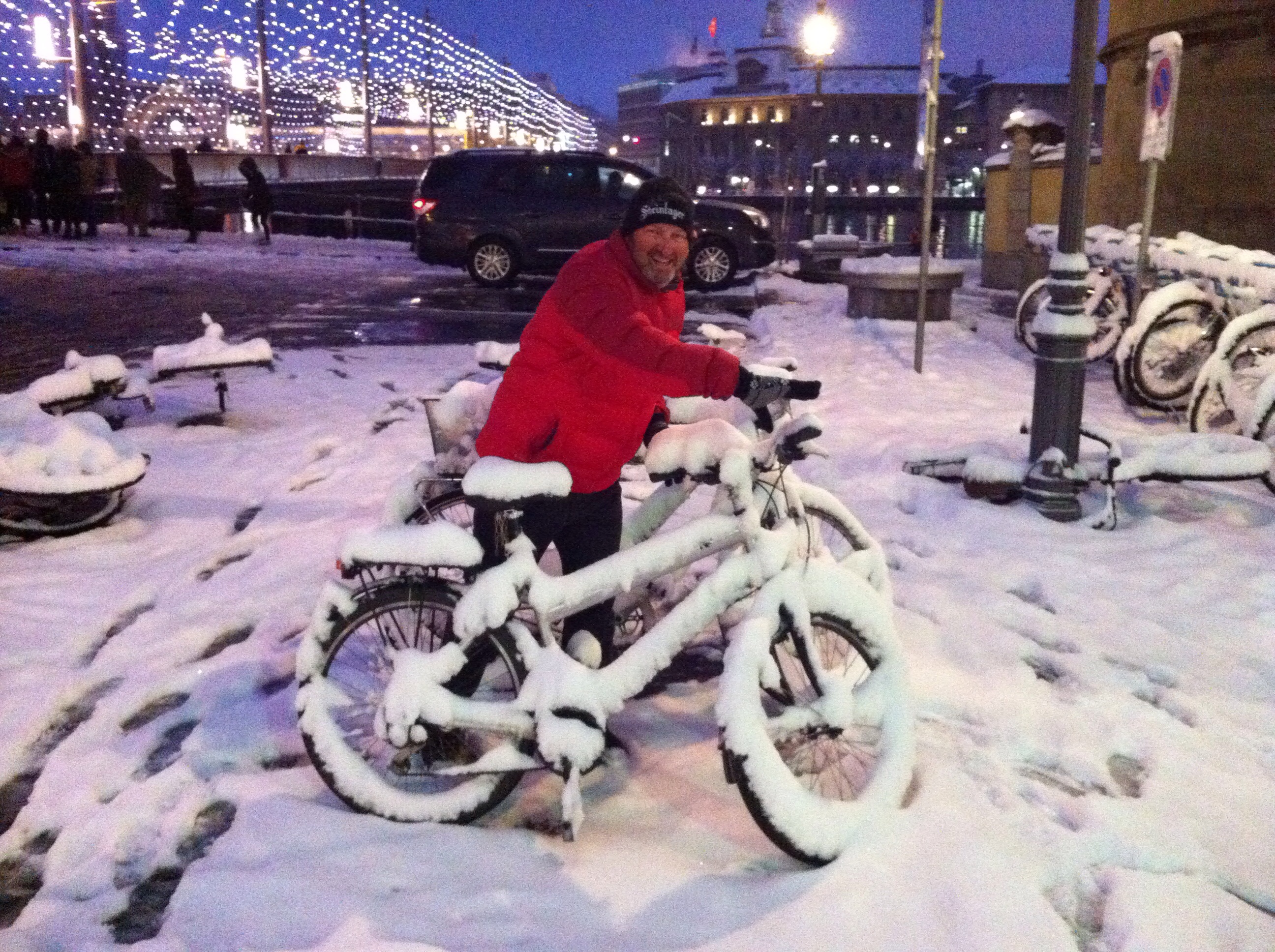The next day we woke to quite a good snow covering. Being a snow virgin the first thing that Steve wanted to test out was how long it took to get beer and wine cold in the snow.