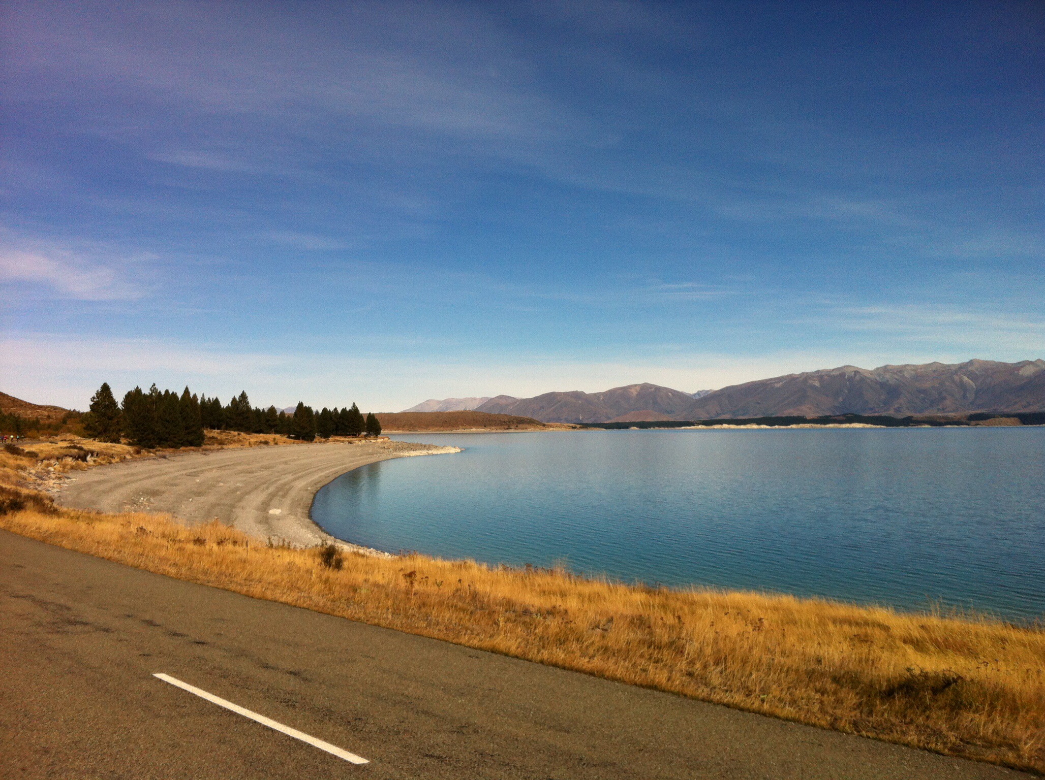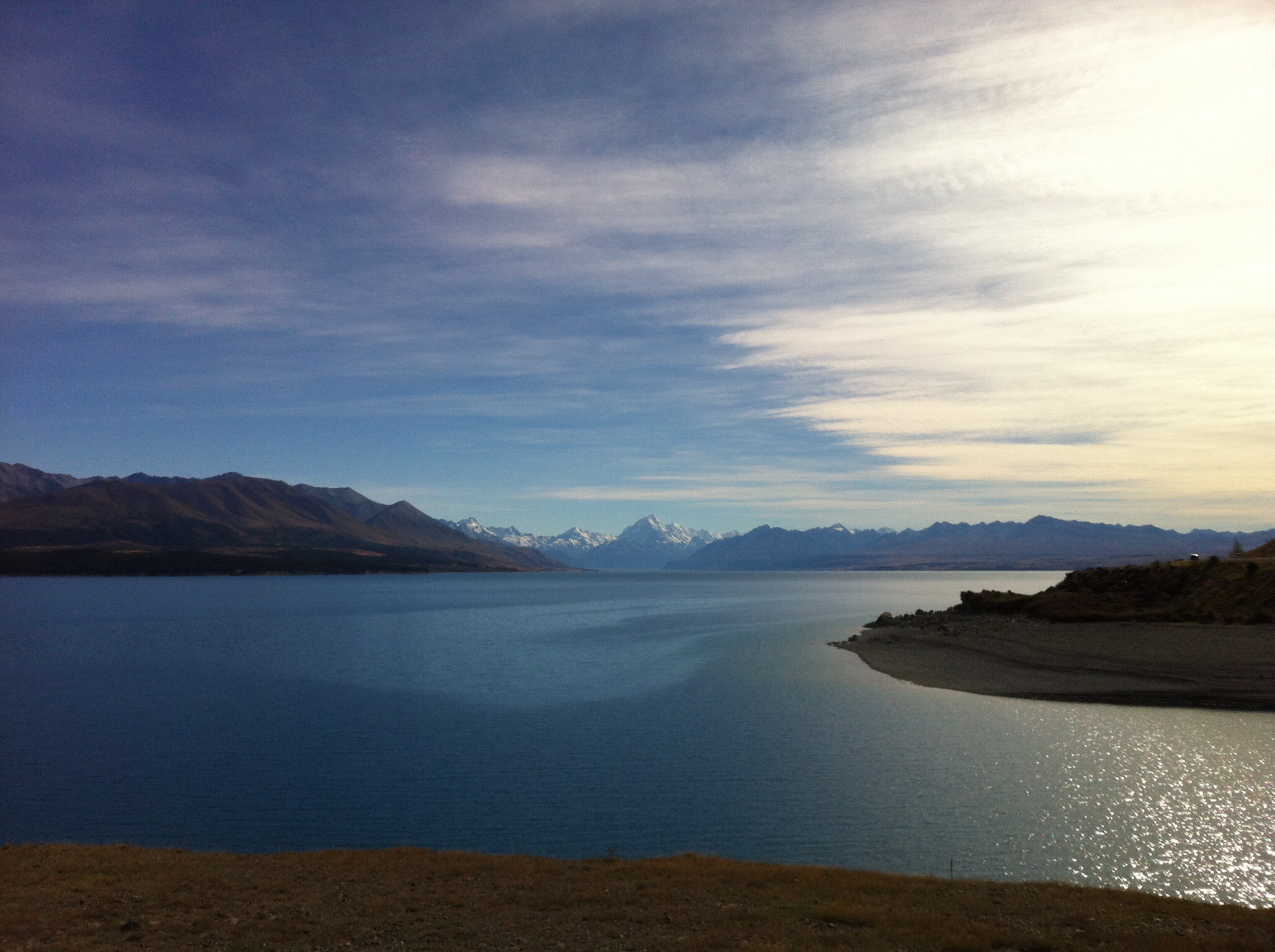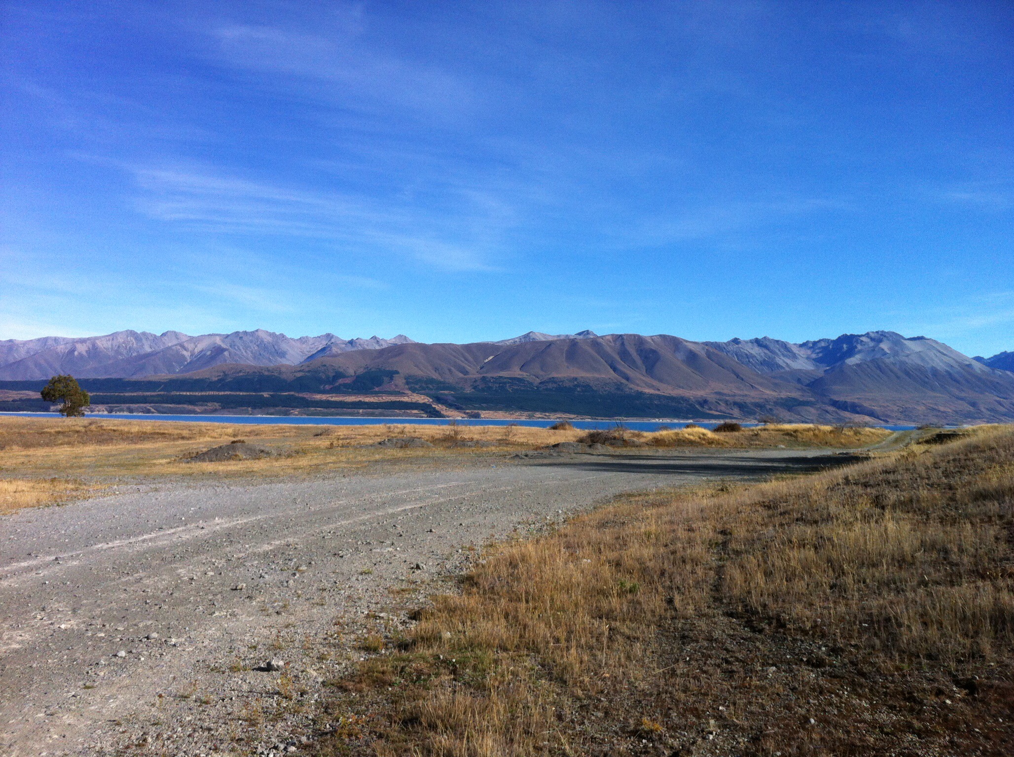 After breakfast and a quick look around the very impressive Aoraki Mt Cook Visitor Information Centre we drove back to where we finished our cycle the day before. We cycled along the shores of Lake Pukaki. It was a stunning day and the vistas were magical. We then crossed the highway to cycle the Pukaki Flats which is an expansive area of dry grasslands that are characteristic of the Mackenzie landscape.