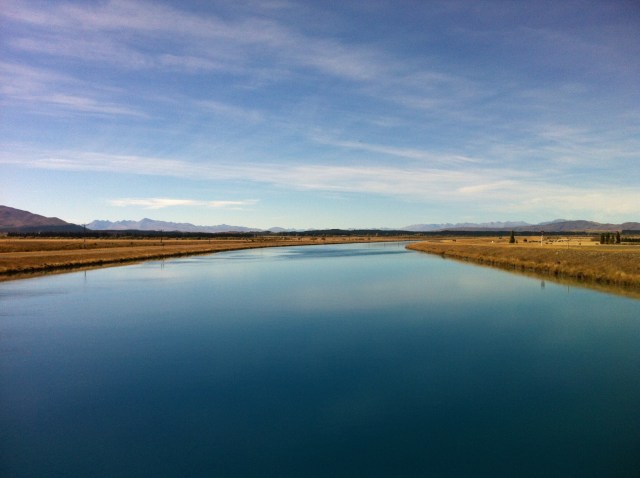 Next stop was Twizel where we had lunch at Poppies Cafe which was very nice. The sun was out in full force so we were in for a hot afternoon. We headed out of Twizel towards the Ohau Canal which meets up with Lake Ohau. We then went off road again on a trail that skirts the foreshore of the lake. It was a lovely track and much nicer cycling than on the road like we did the first time we did the ride in 2012.