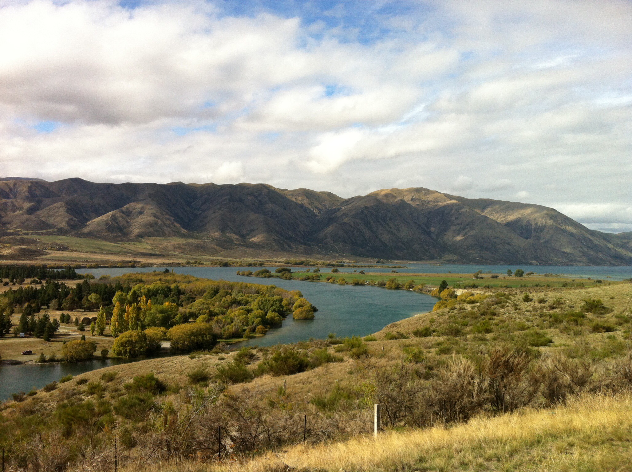 The Waitaki River is a large river in the South Island of New Zealand, some 110 km long. It is the major river of the Mackenzie Basin. It is a braided river which flows through Lake Benmore, Lake Aviemore and Lake Waitaki. These are ultimately fed by three large glacial lakes, Pukaki, Tekapo, and Ohau. Lake Benmore and Lake Aviemore are contained by hydroelectric dams, Benmore Dam and Aviemore Dam.