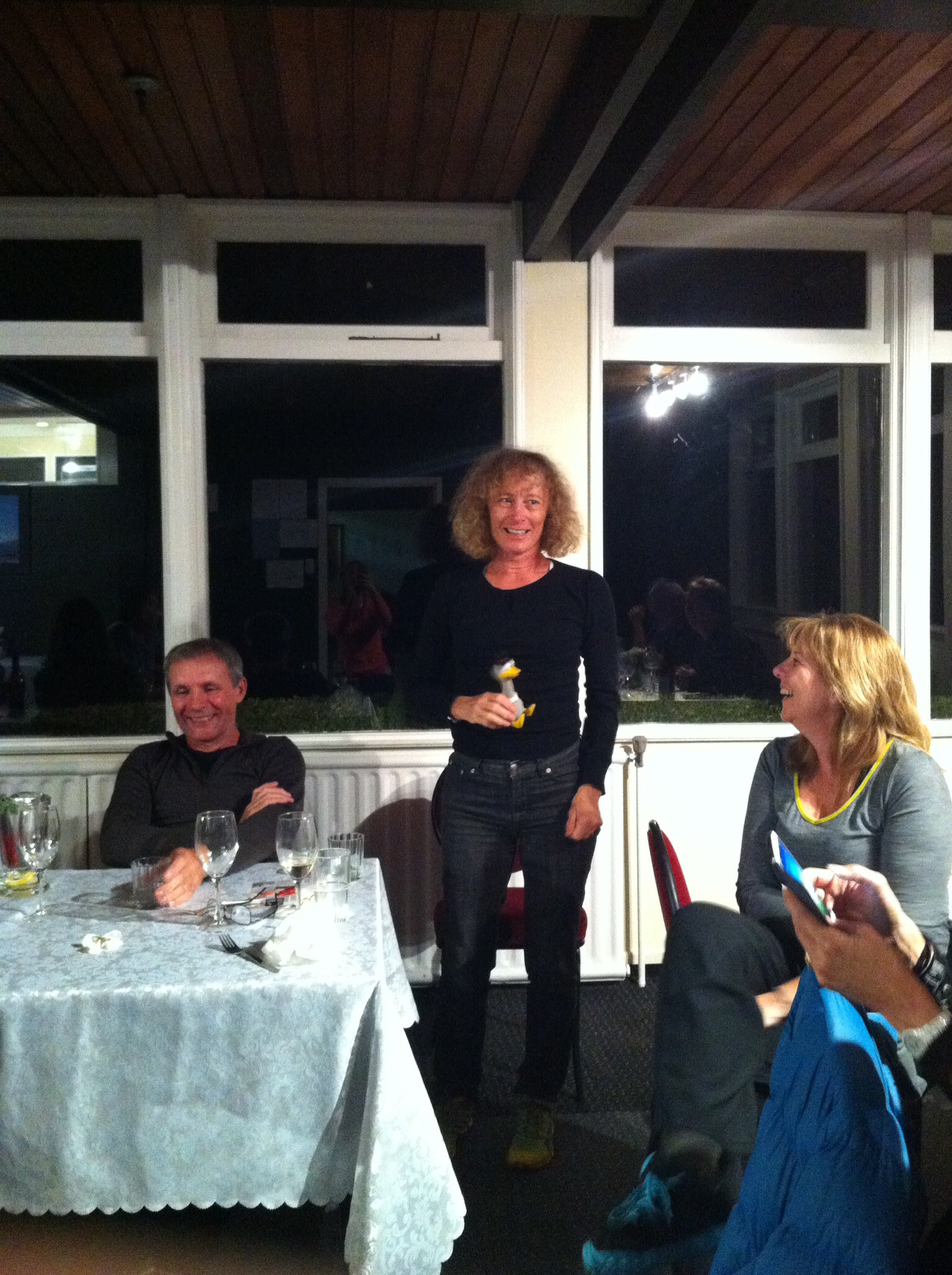 After our tour we headed for the old dining hall to have dinner. An outside caterer called Gumboots and Pearls had prepared the food and Leona put the finishing touches on it. The food was wonderful and again we had a lot of laughs over the evening. Kaye was awarded Duckhead tonight to give her some comfort after Tony had forgotten their 33rd wedding anniversary!