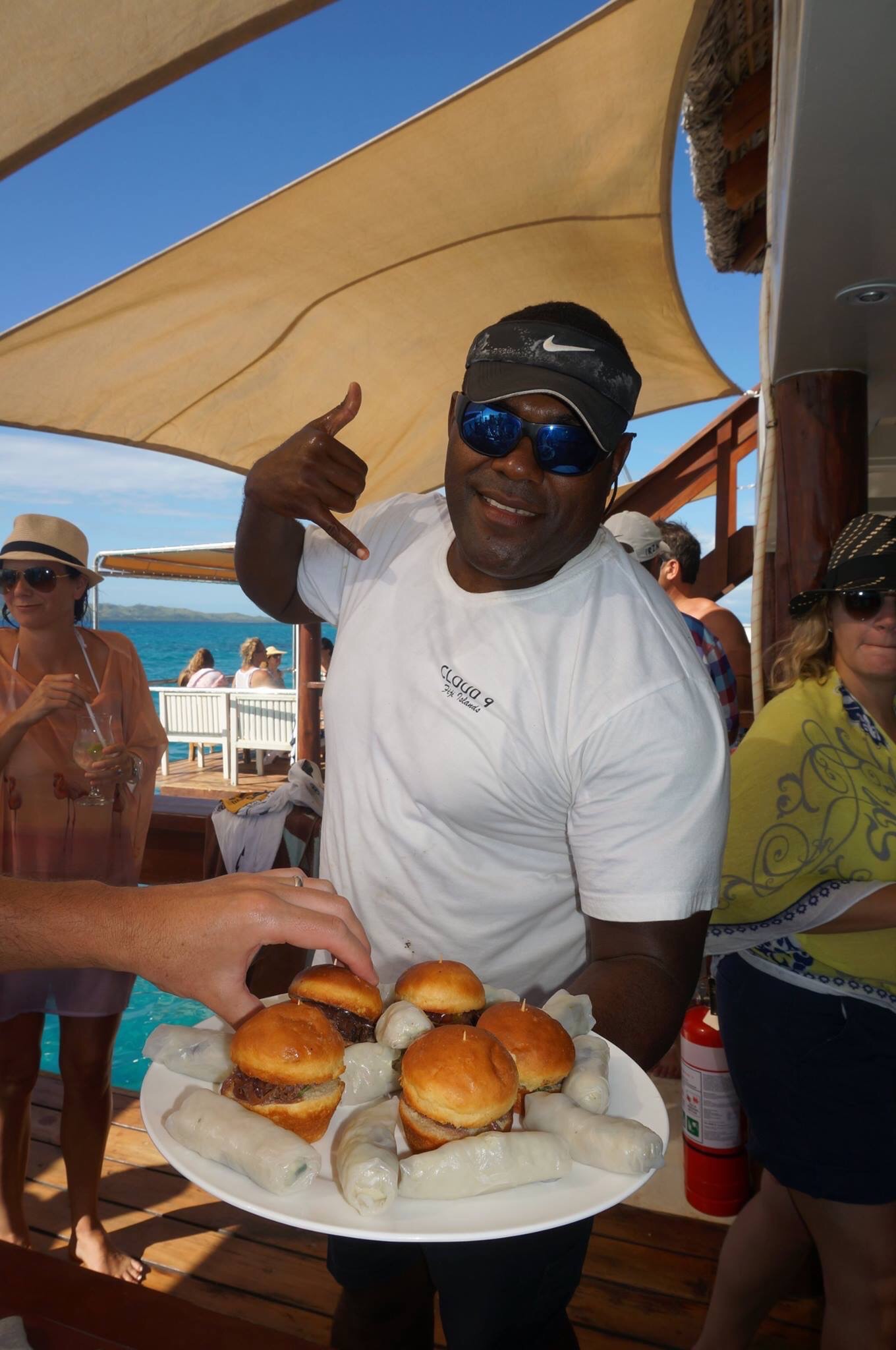 Cloud 9 has a bar and a pizza oven on it. The drinks were flowing and everyone had a great time. You could jump off into the water which was lovely. There was a bit of a current so they had some buoys and ropes for you to hang onto. Not a bad idea given alcohol was involved! After a few great hours in the sun it was back to Denerau by jet boat – we had such a good time no one really wanted to go back to the mainland.