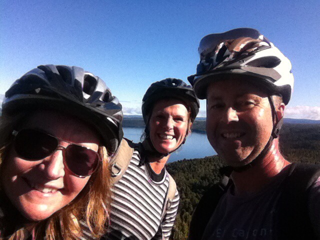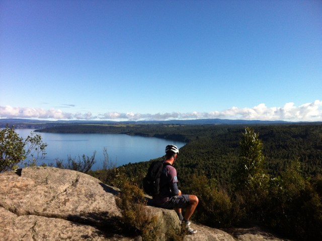 When we did The Timber Trail ride back in February, Ted from Tread Routes said we may also like The Great Lake Trail near Taupo. I had the opportunity to ride the first 20km last Friday and Kinloch turned on a stunner. We met Sheree & Matthew in Taupo on the Thursday night and had a lovely meal at The Brantry. After a hearty breakfast in Taupo on Friday morning Steve headed for the golf course at Wairakei and Sheree, Matthew & I went to Kinloch to meet Ted. Ted was providing the bikes and a shuttle from Kinloch to the start of the trail at Orakau.