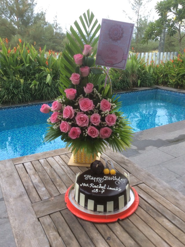 When we arrived back at our apartment the staff here had also organised some flowers and another birthday cake – Steve was of course trying to take credit for it but no one was beleiving him.