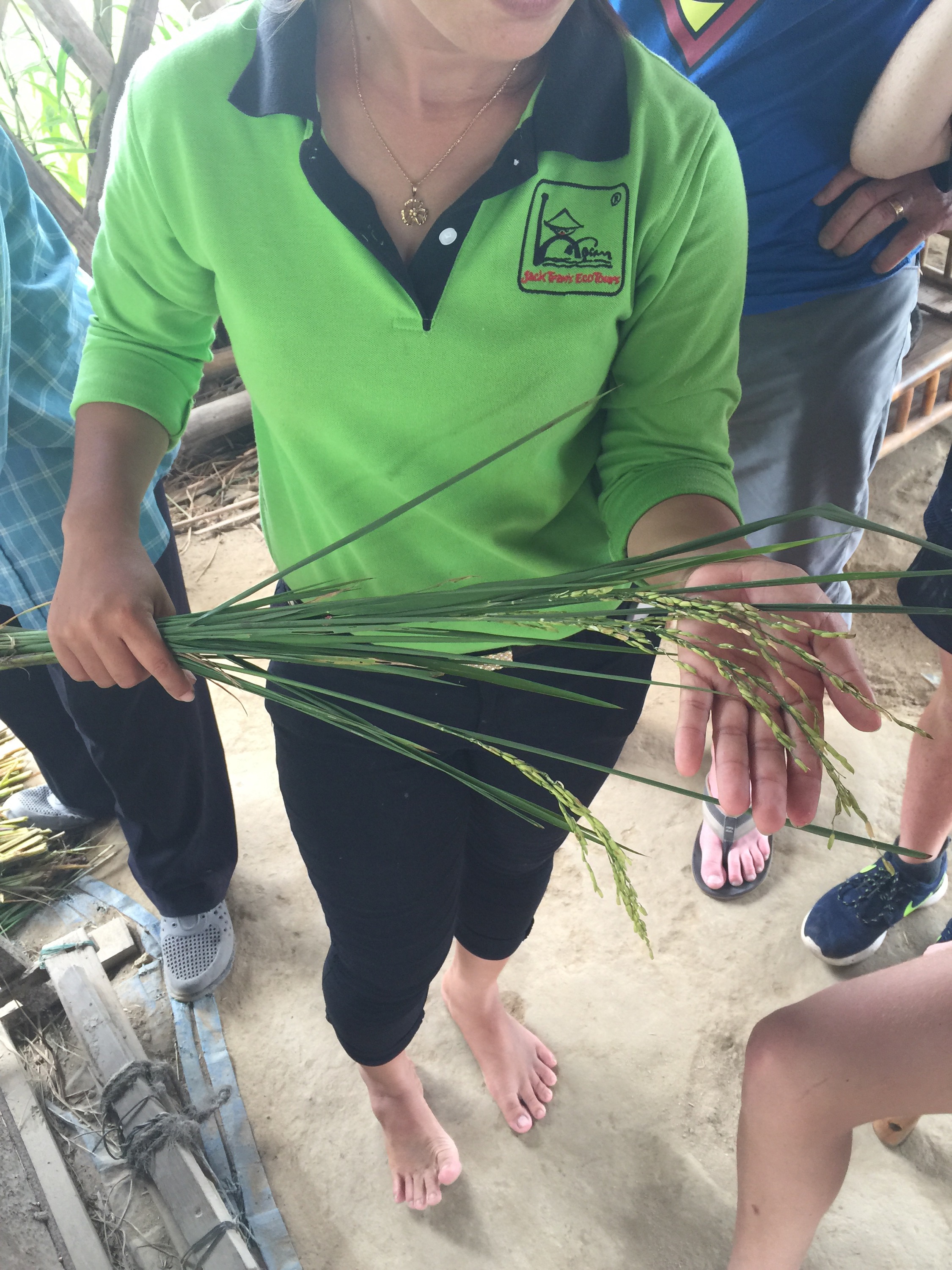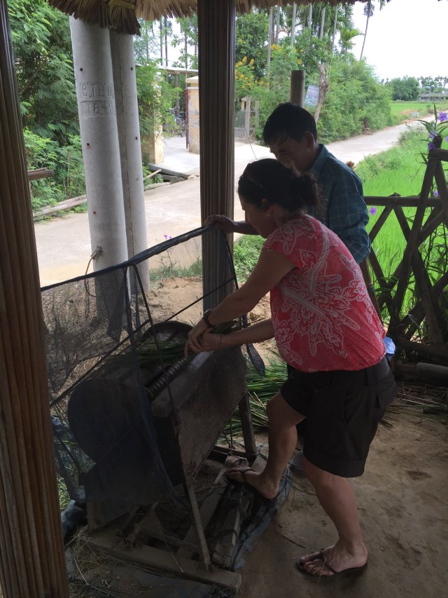 Lilli explained that most of the rice paddy fields in Hoi An are family plots where the rice is grown purely for the family’s consumption. Each family has a plot of about 500 square metres – you can see the divisions between plots where there is no rice growing. There are two harvests per annum – January to April and then May to September. October to December is the wet season so no rice is grown then. If the families sold the rice they would get about USD143 (NZD217) per harvest – USD286 (NZD434) per annum. Not a great deal of money for eight months work, hence why it is mainly used to feed the family. The tourism industry in Vietnam has now allowed work outside the home so this money is used to pay for other necessities as well as education for the children beyond primary school.