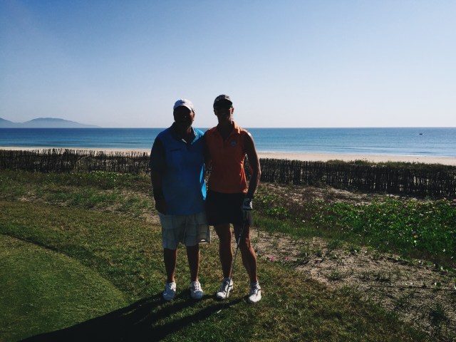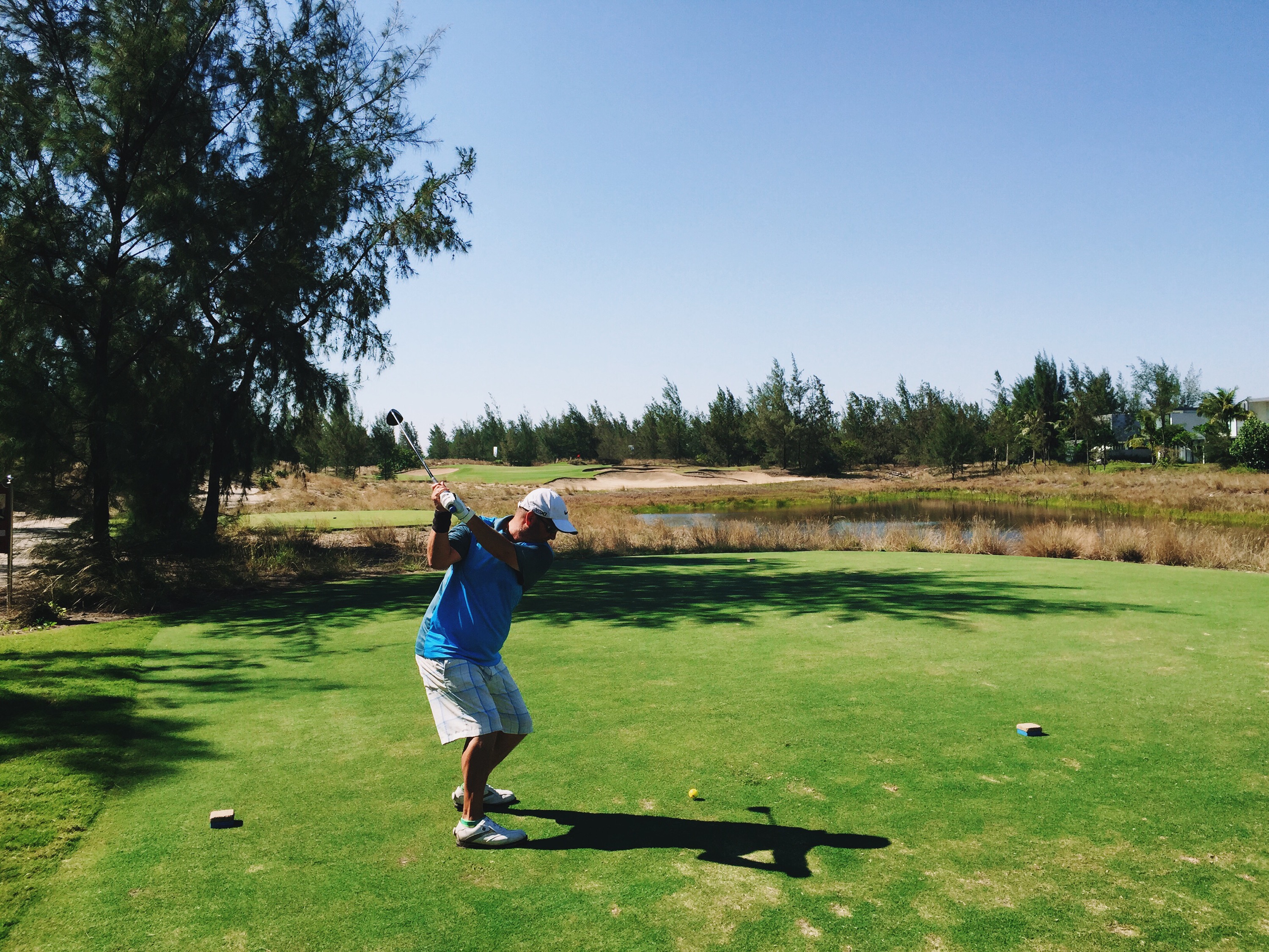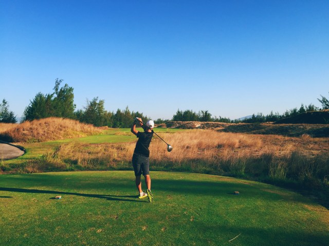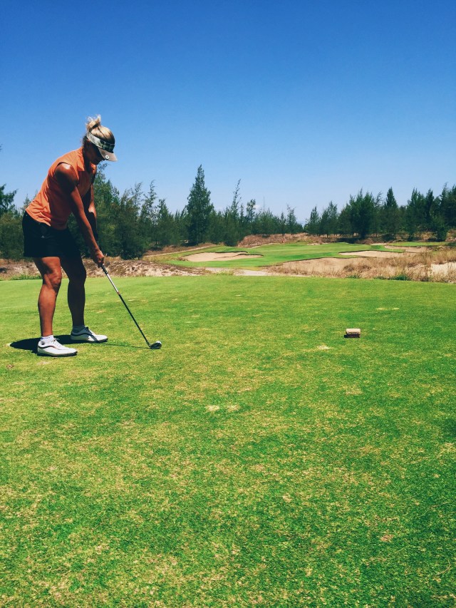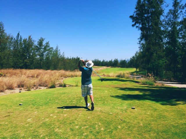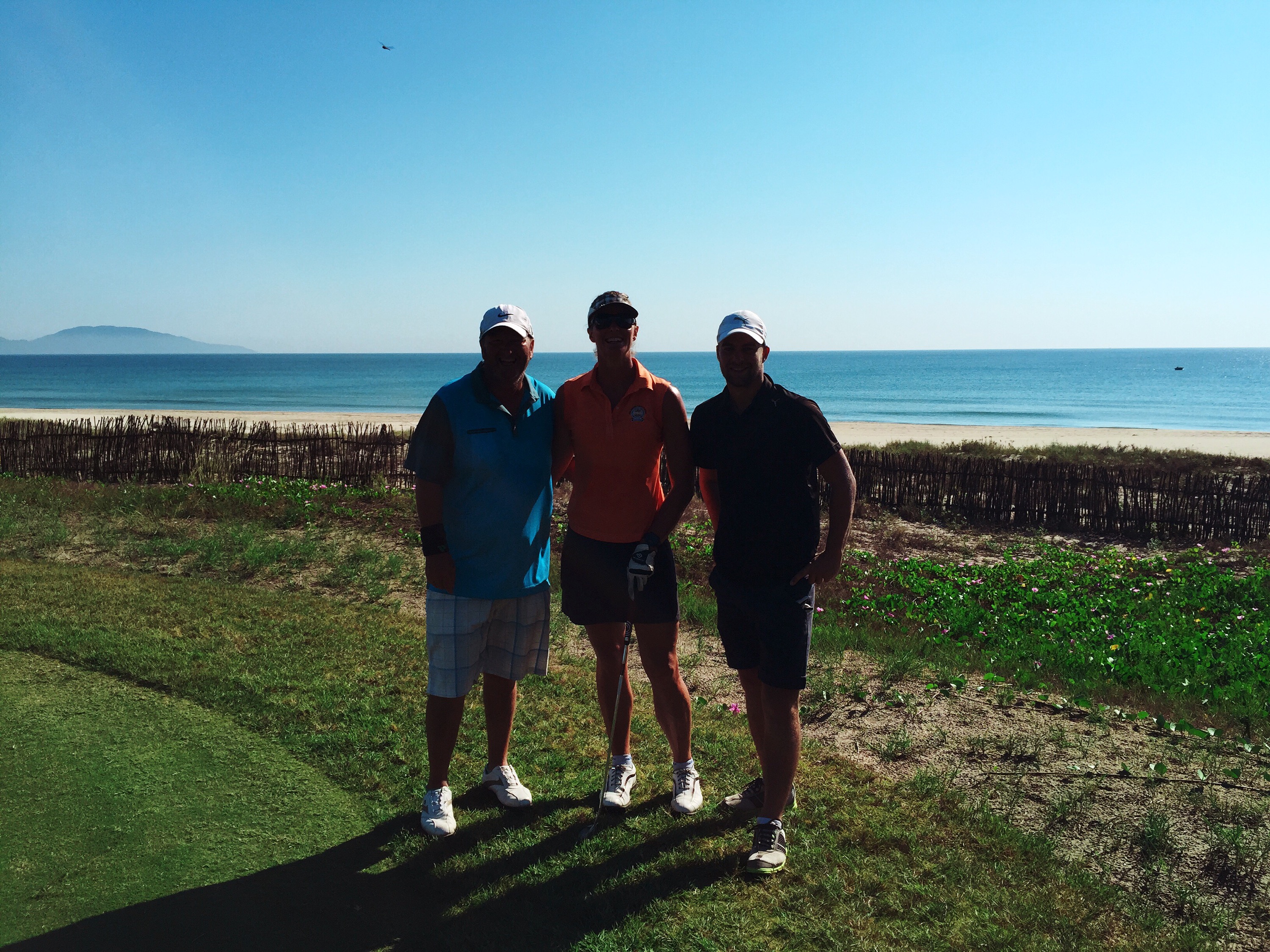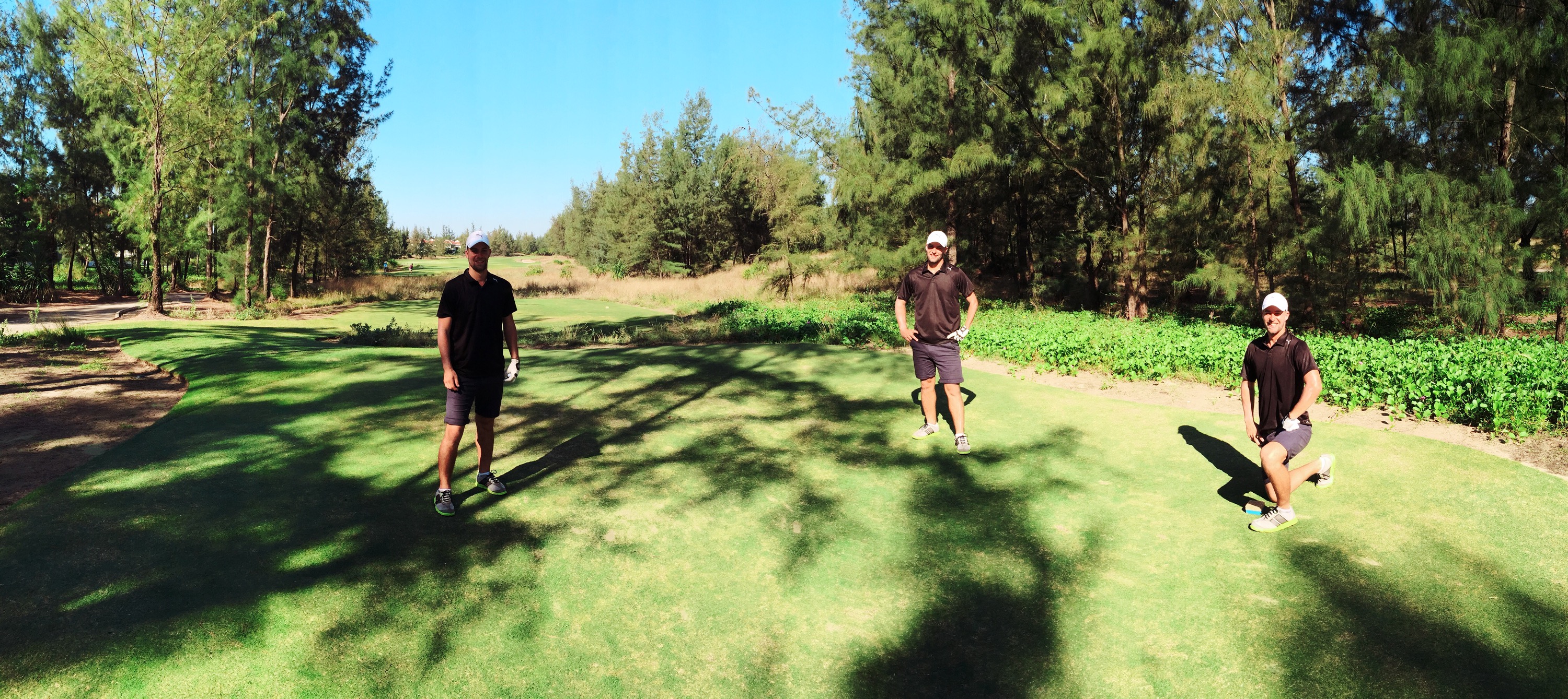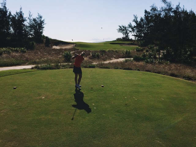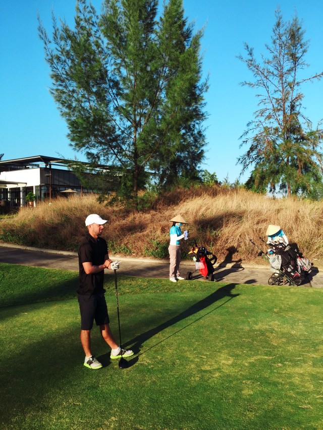 On Tuesday the 18th August we went next door to play golf at the Da Nang Golf Club. It is situated on the fledgling central coast of Vietnam amid 150 hectares of dunescape similar to what the world’s first golf courses were carved from. It’s chief feature is a 7,160-yard, 18-hole, links-style layout that was designed in the true spirit of the game — blown-out bunkers, firm and fast fairways that bleed gently into wild seaside vegetation, rugged waste areas, swales and hollows — by Australian golf legend and former world No. 1 Greg Norman.