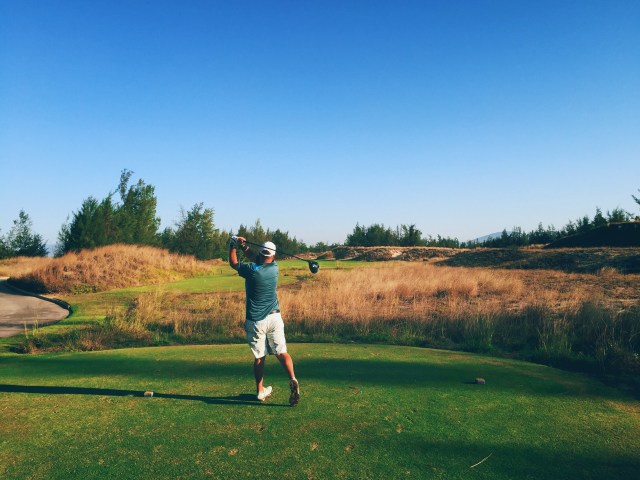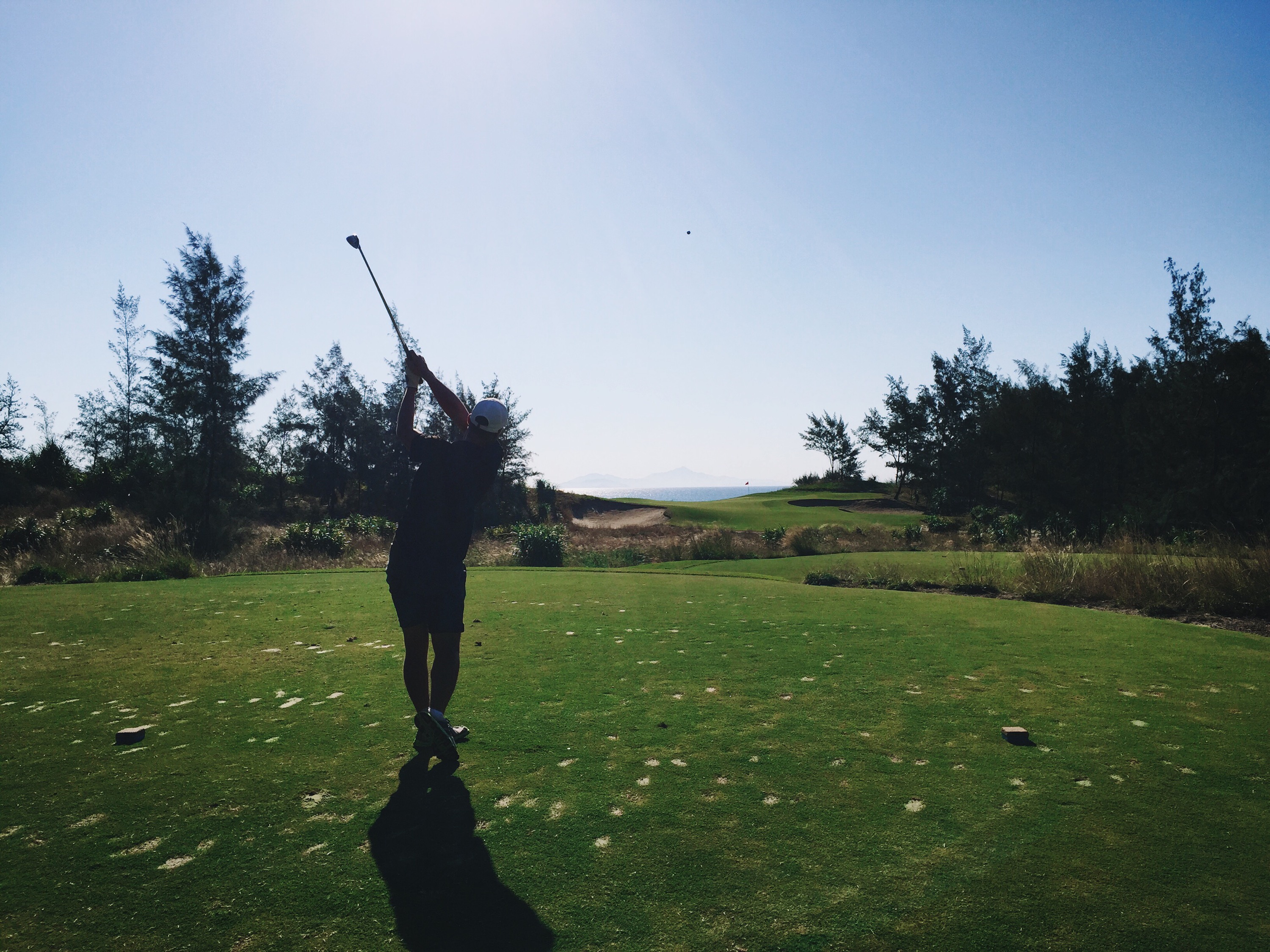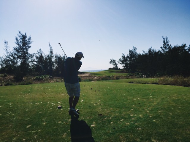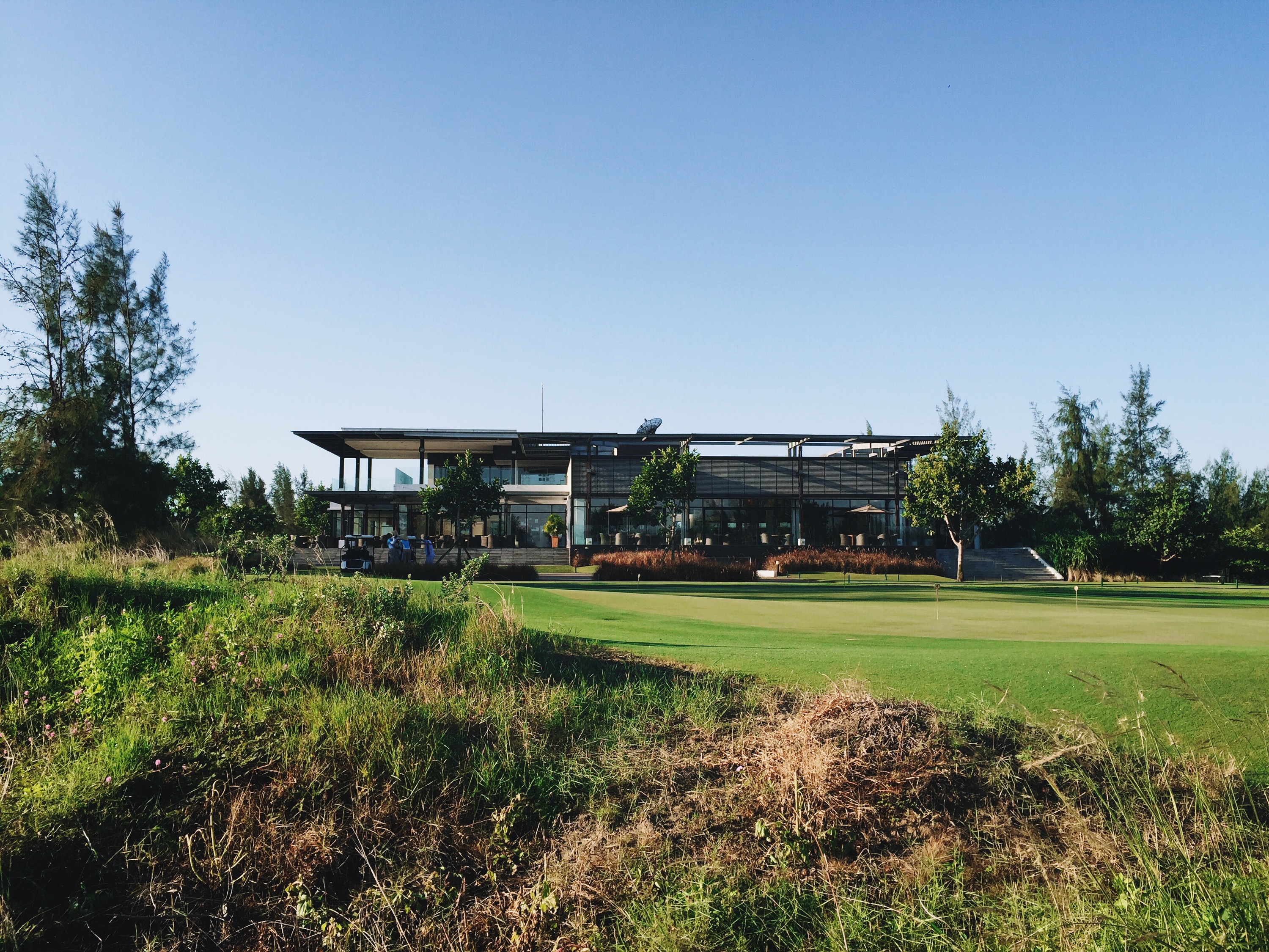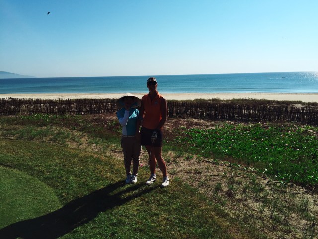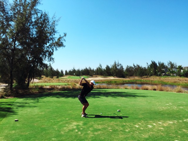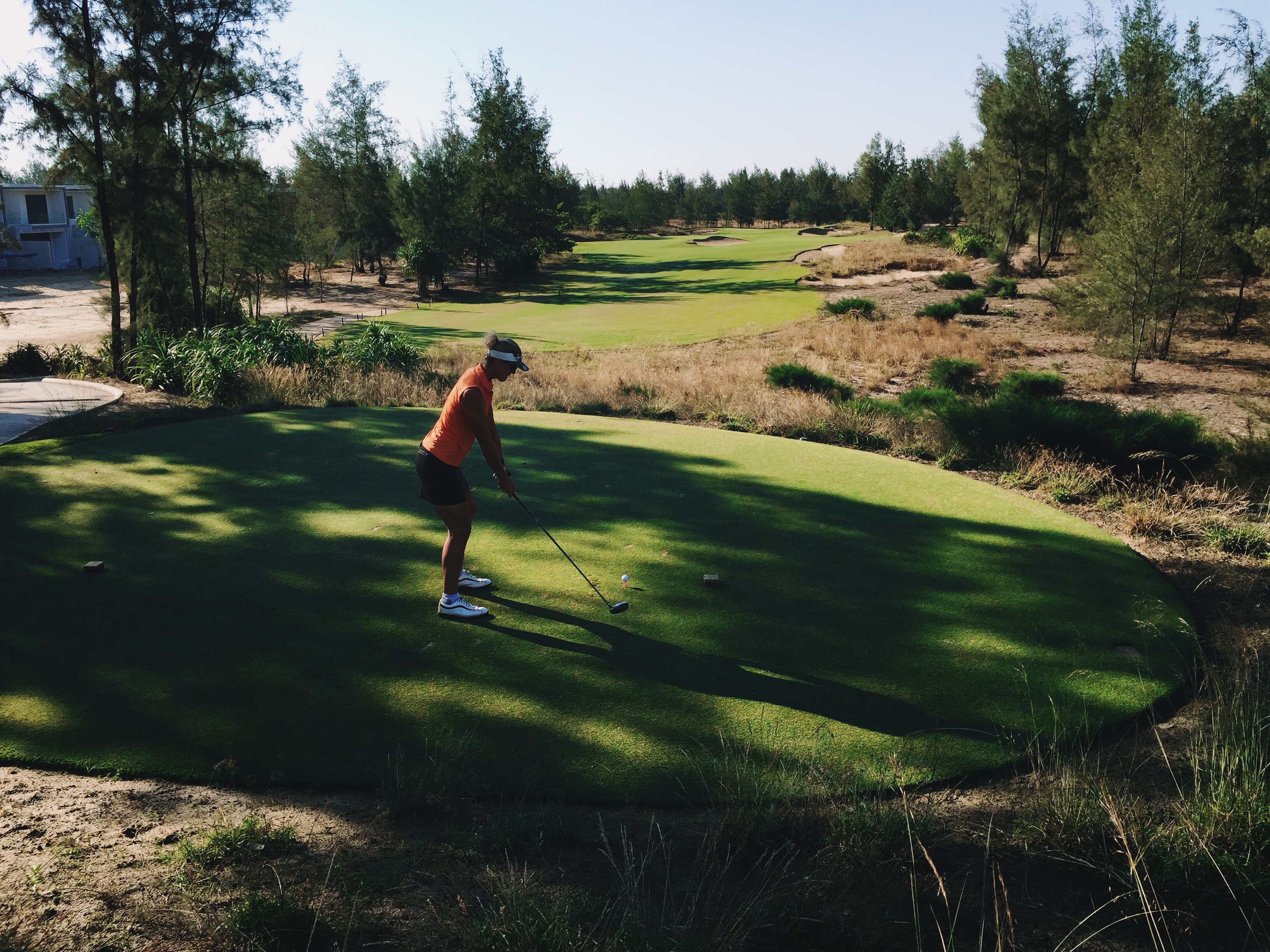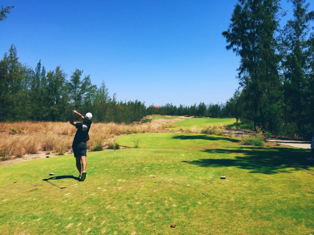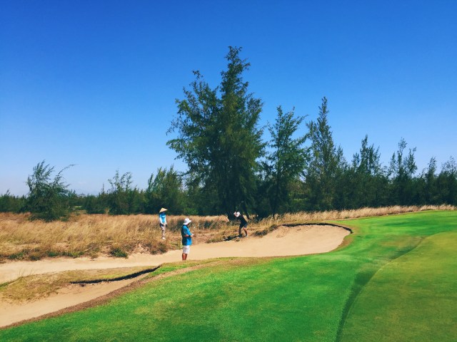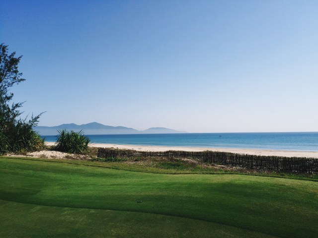 The fifteenth, sixteenth and seventeenth holes are on the ocean side of the road which are reached by an under road tunnel. The par three sixteenth is the course’s signature hole – you hit towards the ocean and a back drop of the Cham Islands.
