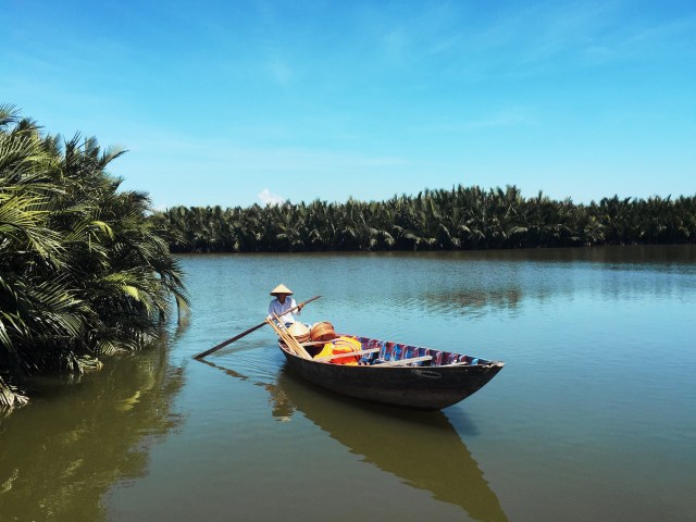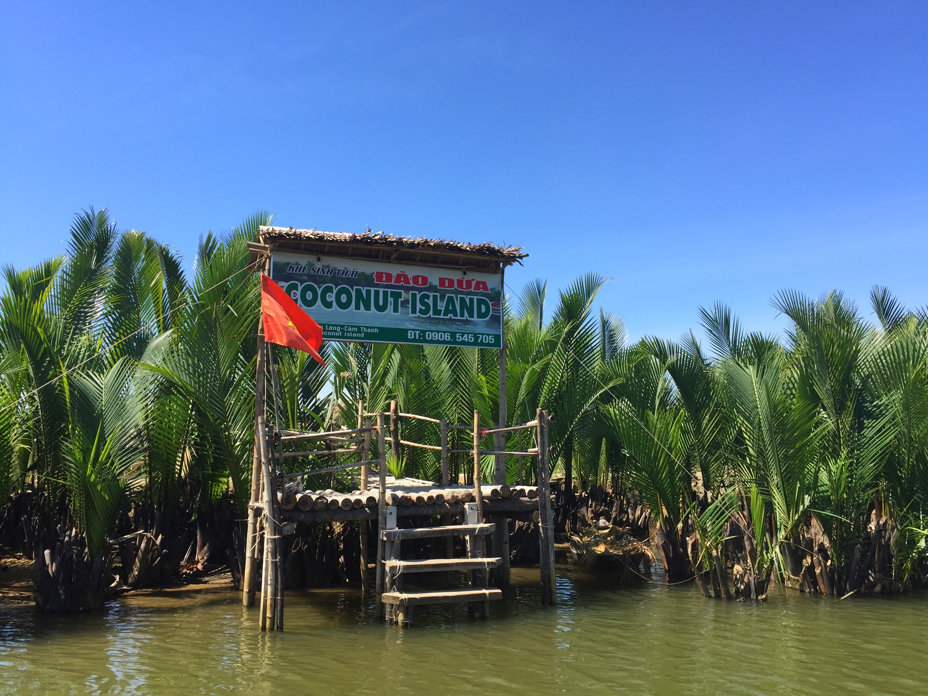 We passed by Coconut Island where they grow these water coconut trees that produce the leaves they use to thatch the roof of a house or as a cover on a fishing boat. We had to switch to a row boat for the last five minutes of our journey and we had to row! Thuan Tinh Island is recognized by Hoi An as an official ecological zone.