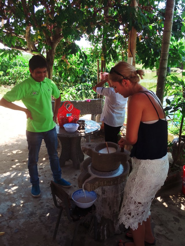 First stop on Thuan Tinh Island was the local farmer’s house to make rice milk for our Banh Xeo.