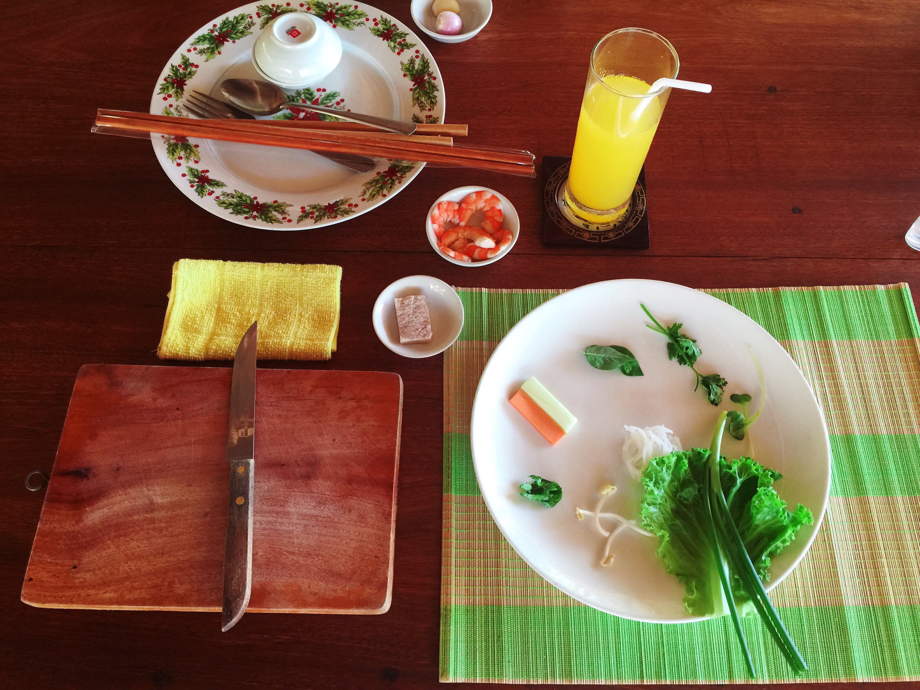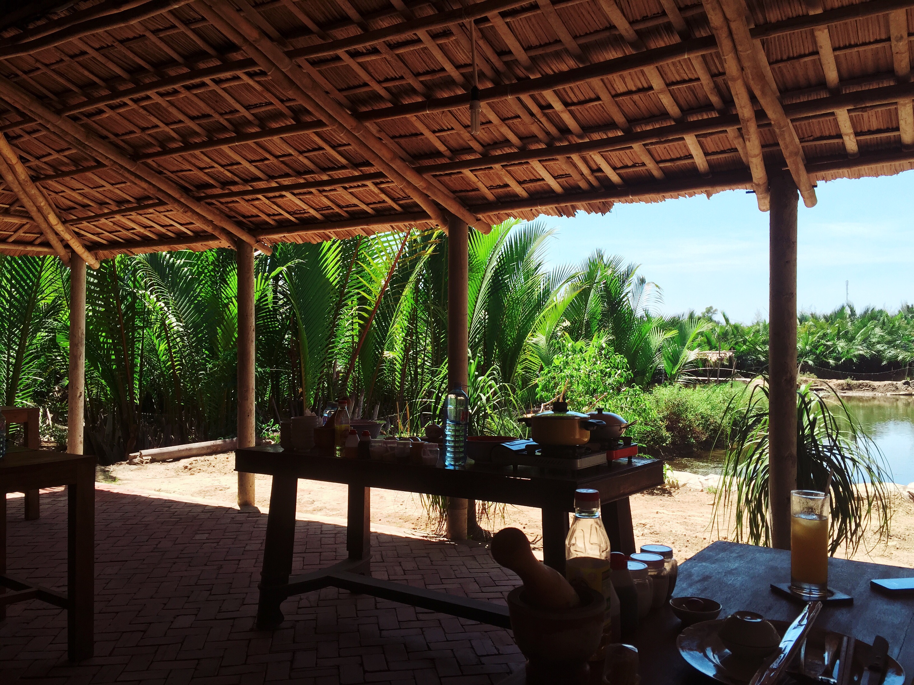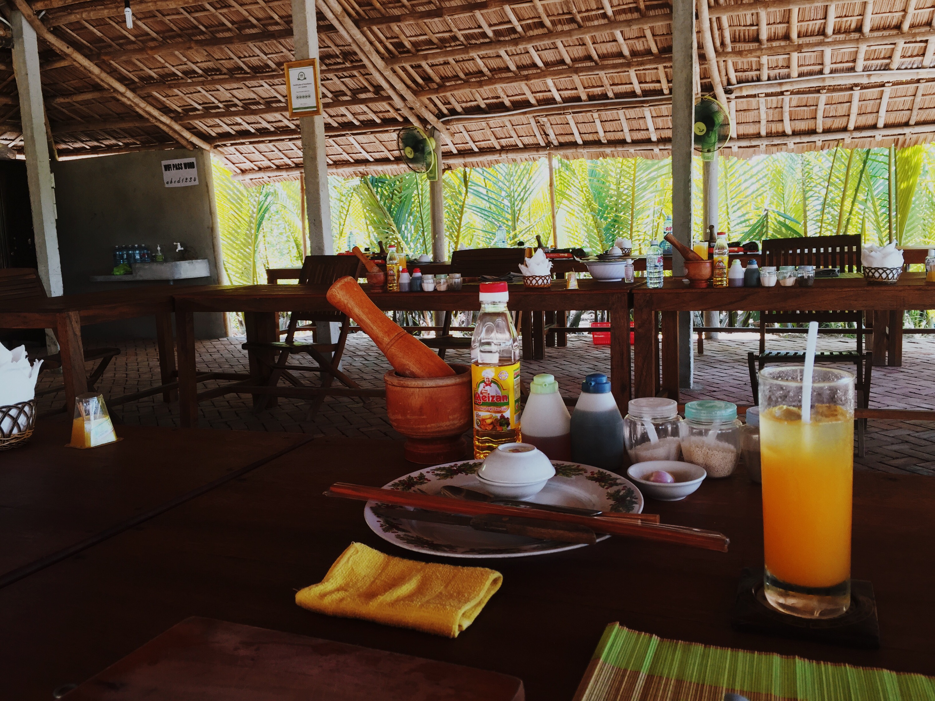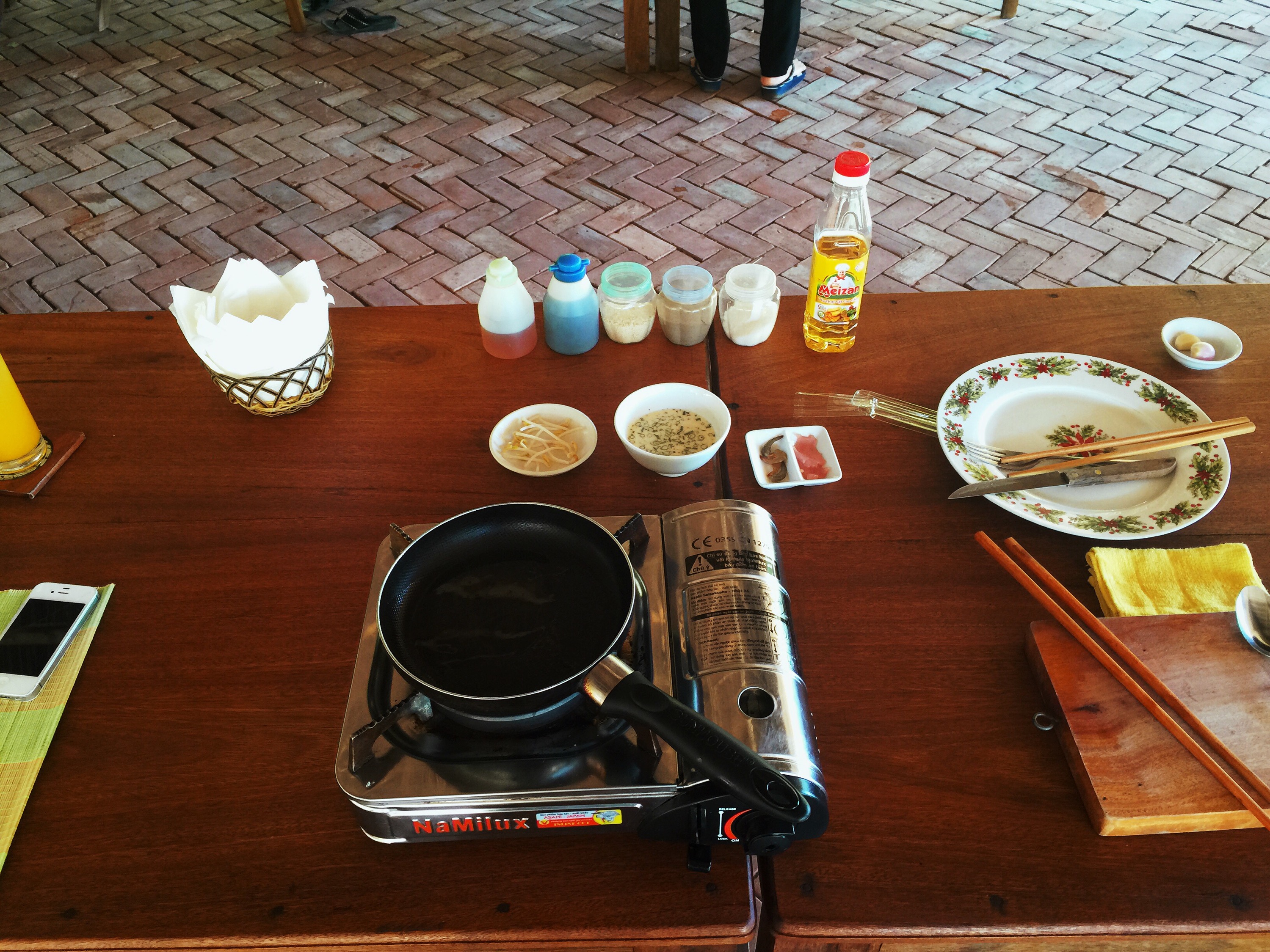 We then made our way back to our classroom for the morning which is effectively a bamboo building with no sides overlooking the water. The last cooking class I did was inside so it was nice to have the airflow and it is definitely a cooler scenario once all the little cookers are fired up.