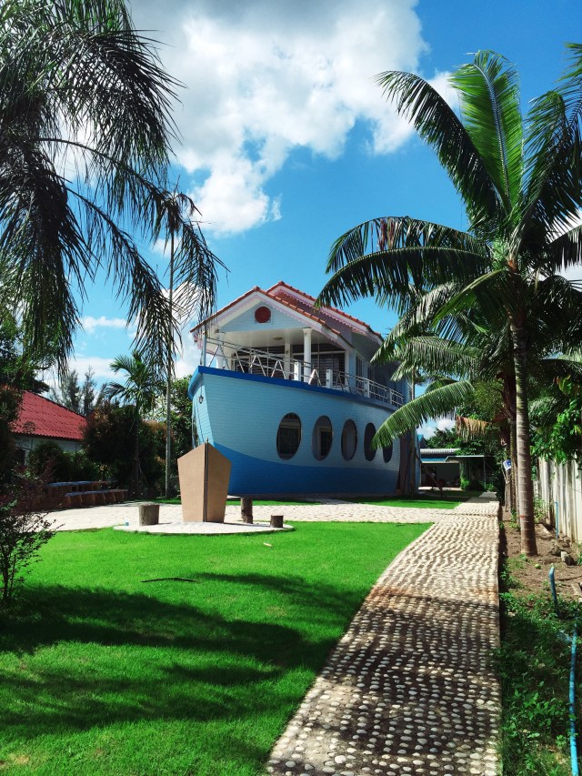 A House being pulled along by a Boat. This house doubled as a restaurant and bar where we heard some pretty bad karaoke some nights!