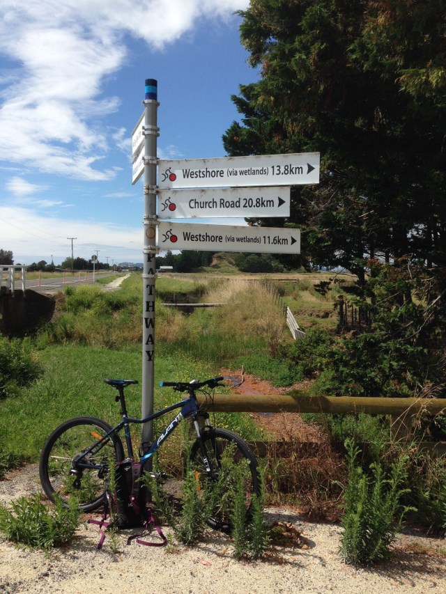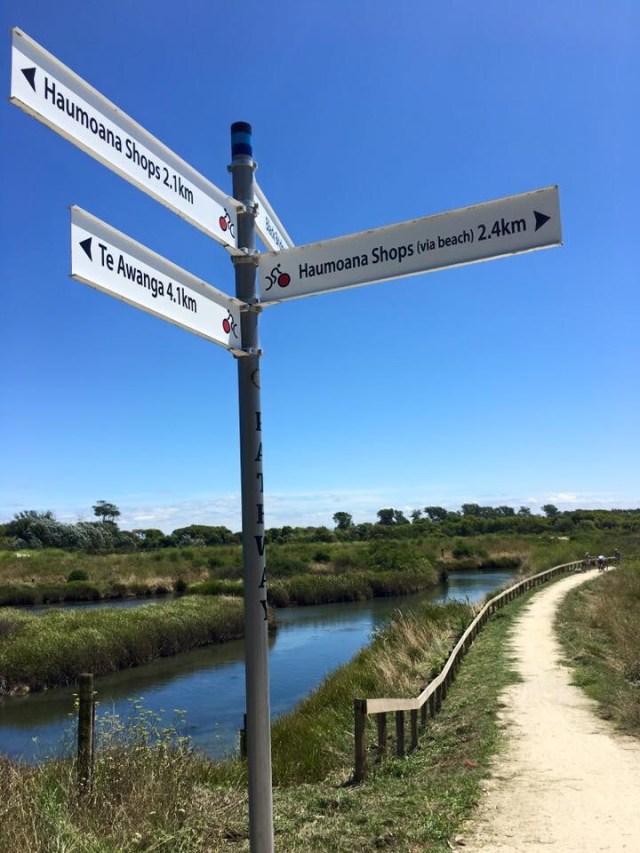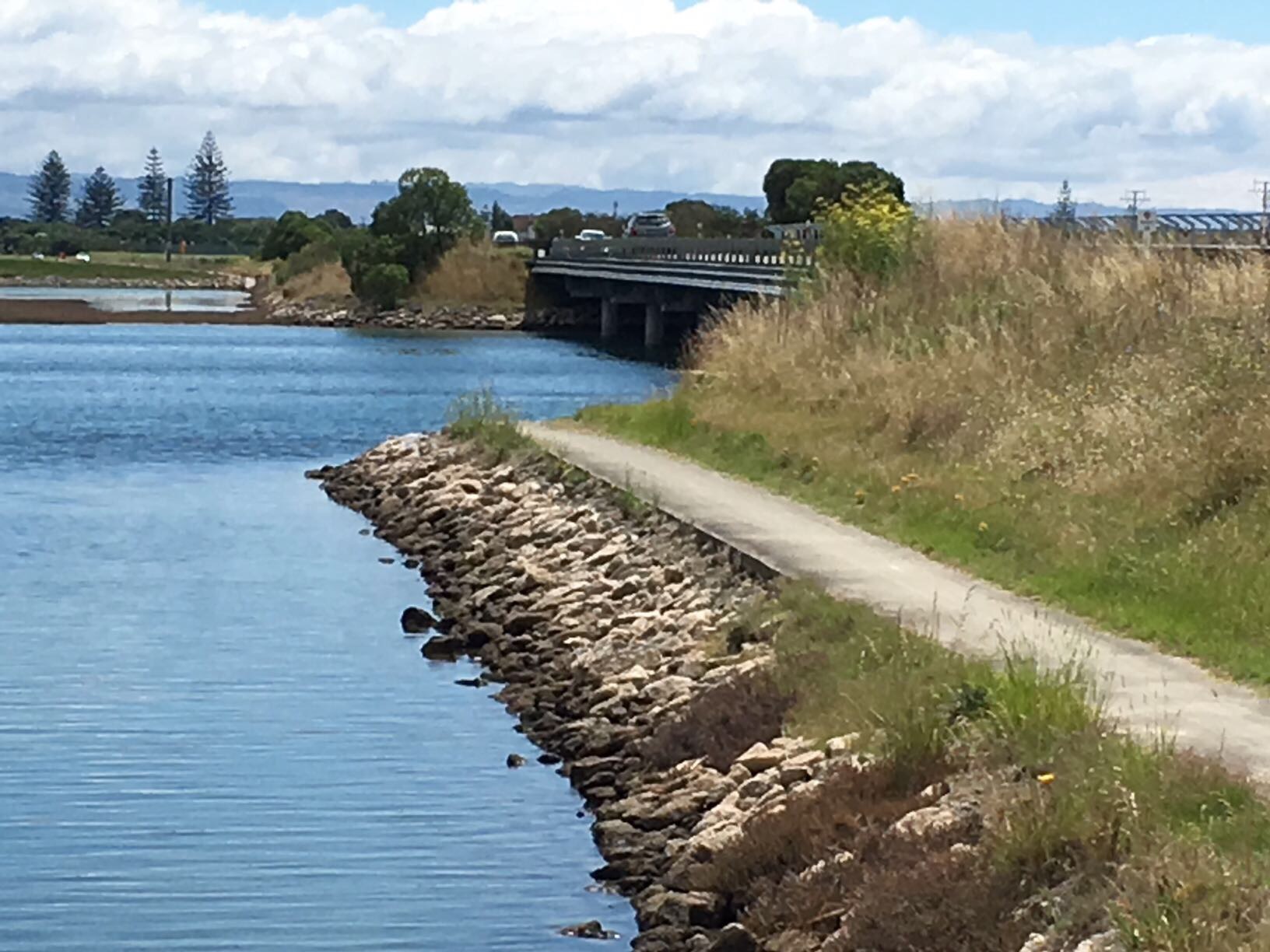 There are some wetlands along this part of the trail which various birds call home. We then cycled past the Hawke’s Bay Airport and alongside the Estuary which provides a valuable habitat for migrating birds like the Royal Spoonbill and various summer waders like the Bar-tailed Godwit who don’t breed here but migrate each year from Arctic Alaska. We then crossed the old road and railway bridge that was replaced in 2003 by the Hawke’s Bay Expressway.